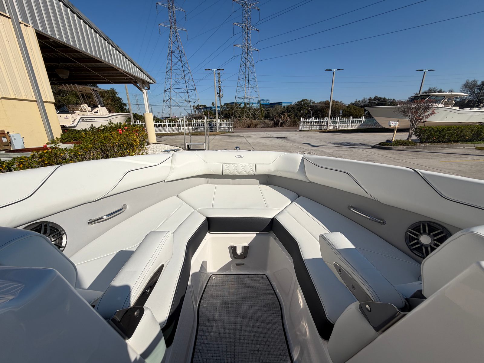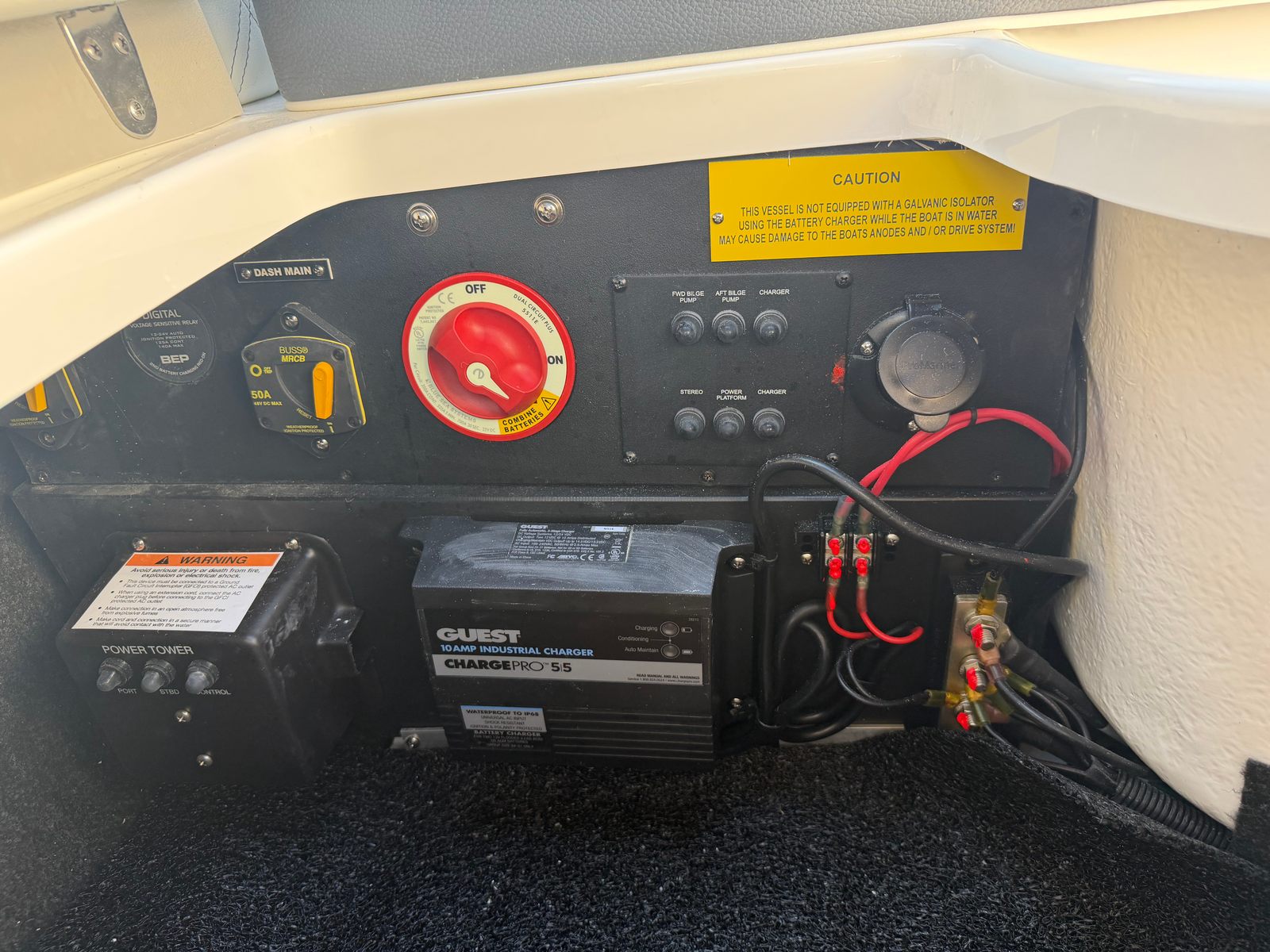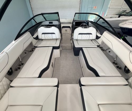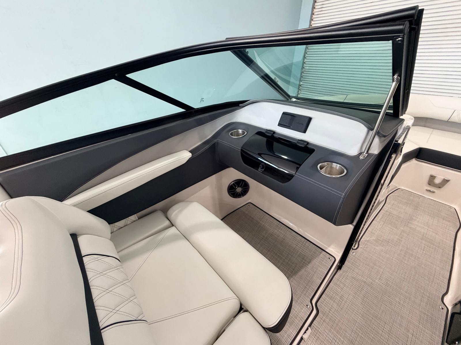 The Regal LX2 Bowrider is loaded with features designed to enhance your boating experience. The Bow & Cockpit Covers provide essential protection from the elements, keeping your boat in pristine condition when not in use. Step onto the Cockpit Seagrass Mat and enjoy the comfort and style it brings to the interior, creating a welcoming space for relaxation and socializing. The Dual Battery Switch with Tray and Cables ensures reliable power management, giving you peace of mind during extended outings. The included Battery Charger keeps your systems ready to go, so you can focus on making memories instead of worrying about maintenance.The LX2’s thoughtful design extends to every detail, from the spacious seating arrangements to the intuitive layout that maximizes both comfort and functionality. The Titanium accents and premium materials elevate the onboard atmosphere, making every journey feel like a special occasion.