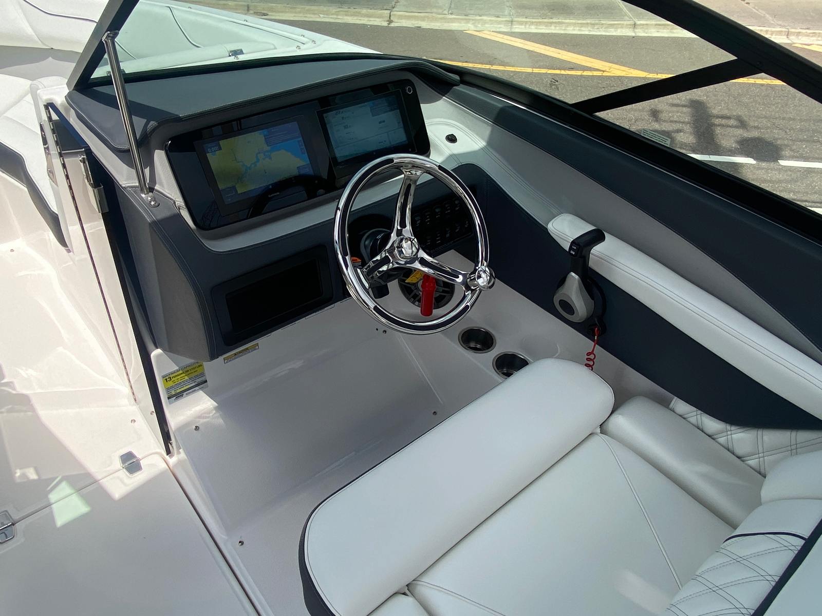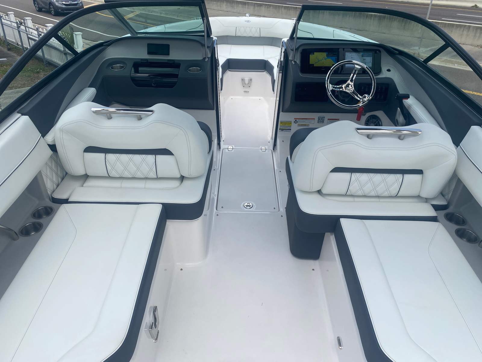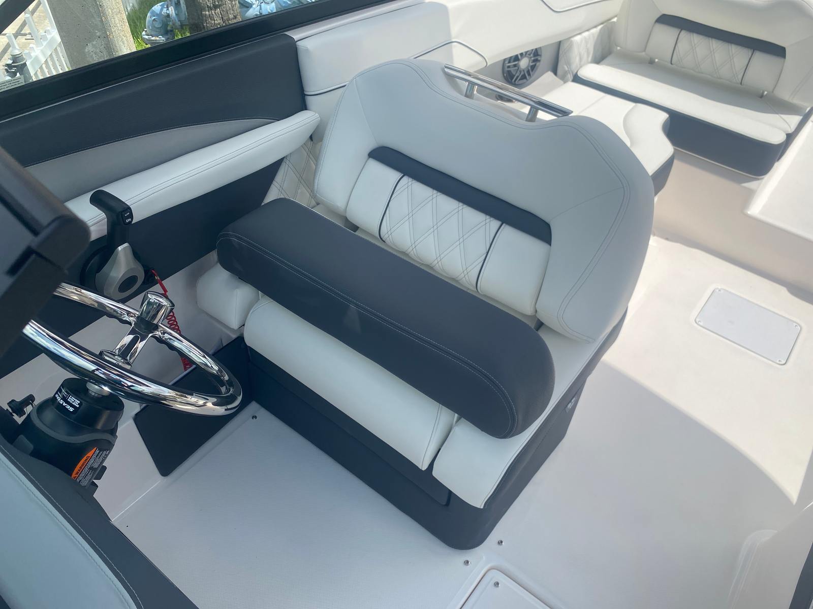 Practicality meets pleasure in the Regal LX2. The boat’s design makes docking and storage straightforward, so you can spend less time worrying and more time enjoying the water. The power assisted hydraulic steering simplifies navigation, even in crowded marinas or tight docking spaces. The pressure water package and transom shower make it easy to clean up after a day of swimming or fishing, keeping your boat fresh and inviting.The bow walk-thru doors provide safe and easy access to the bow, reducing the risk of slips or falls. The PowerTower S2 offers versatility for water sports enthusiasts, supporting wakeboarding, tubing, and more. The Mediterranean Blue canvas not only protects you from the sun but also adds a layer of style and sophistication to your boating experience.