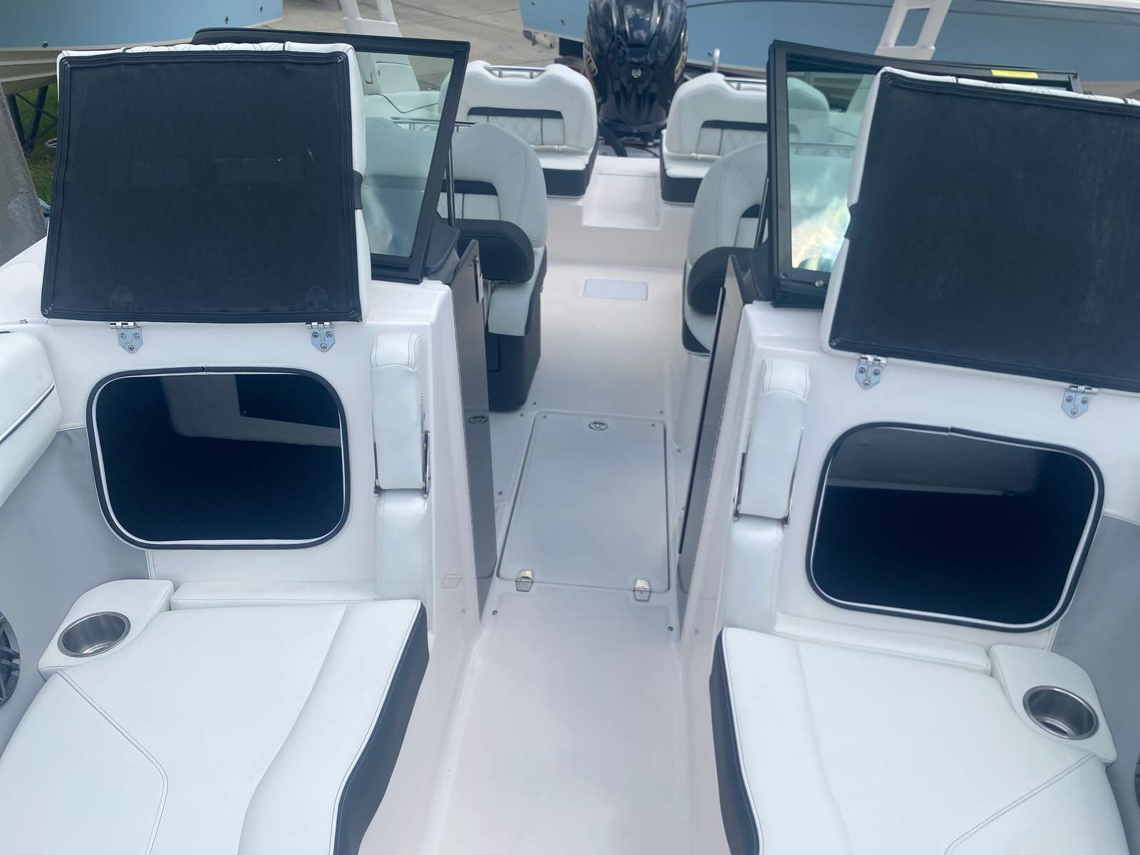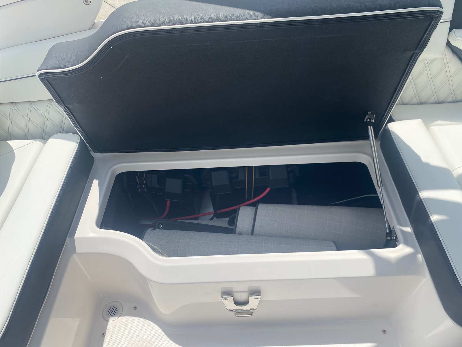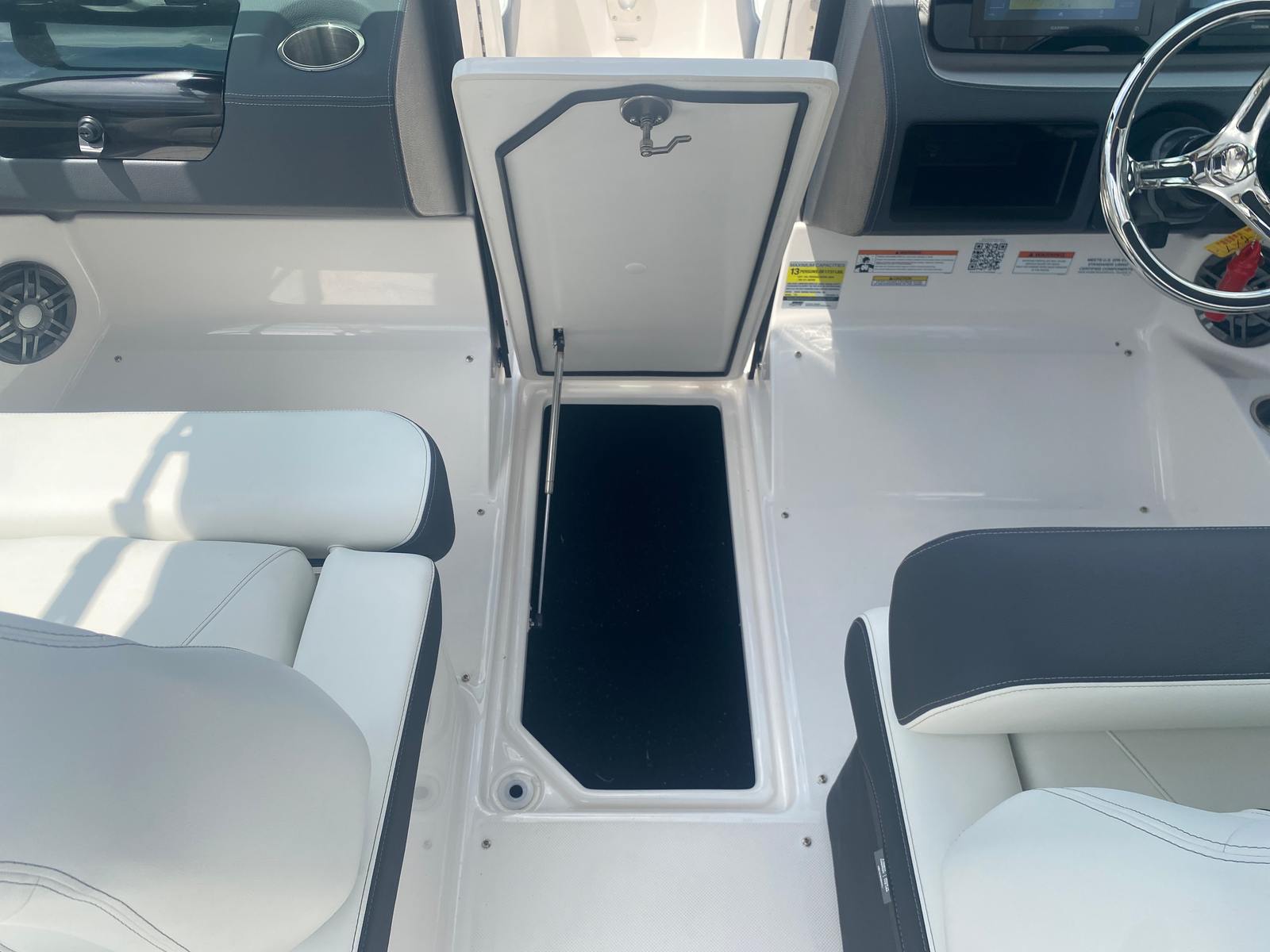 Practicality meets pleasure in the Regal LX2. The boat’s design makes docking and storage straightforward, so you can spend less time worrying and more time enjoying the water. The power assisted hydraulic steering simplifies navigation, even in crowded marinas or tight docking spaces. The pressure water package and transom shower make it easy to clean up after a day of swimming or fishing, keeping your boat fresh and inviting.The bow walk-thru doors provide safe and easy access to the bow, reducing the risk of slips or falls. The PowerTower S2 offers versatility for water sports enthusiasts, supporting wakeboarding, tubing, and more. The Mediterranean Blue canvas not only protects you from the sun but also adds a layer of style and sophistication to your boating experience.