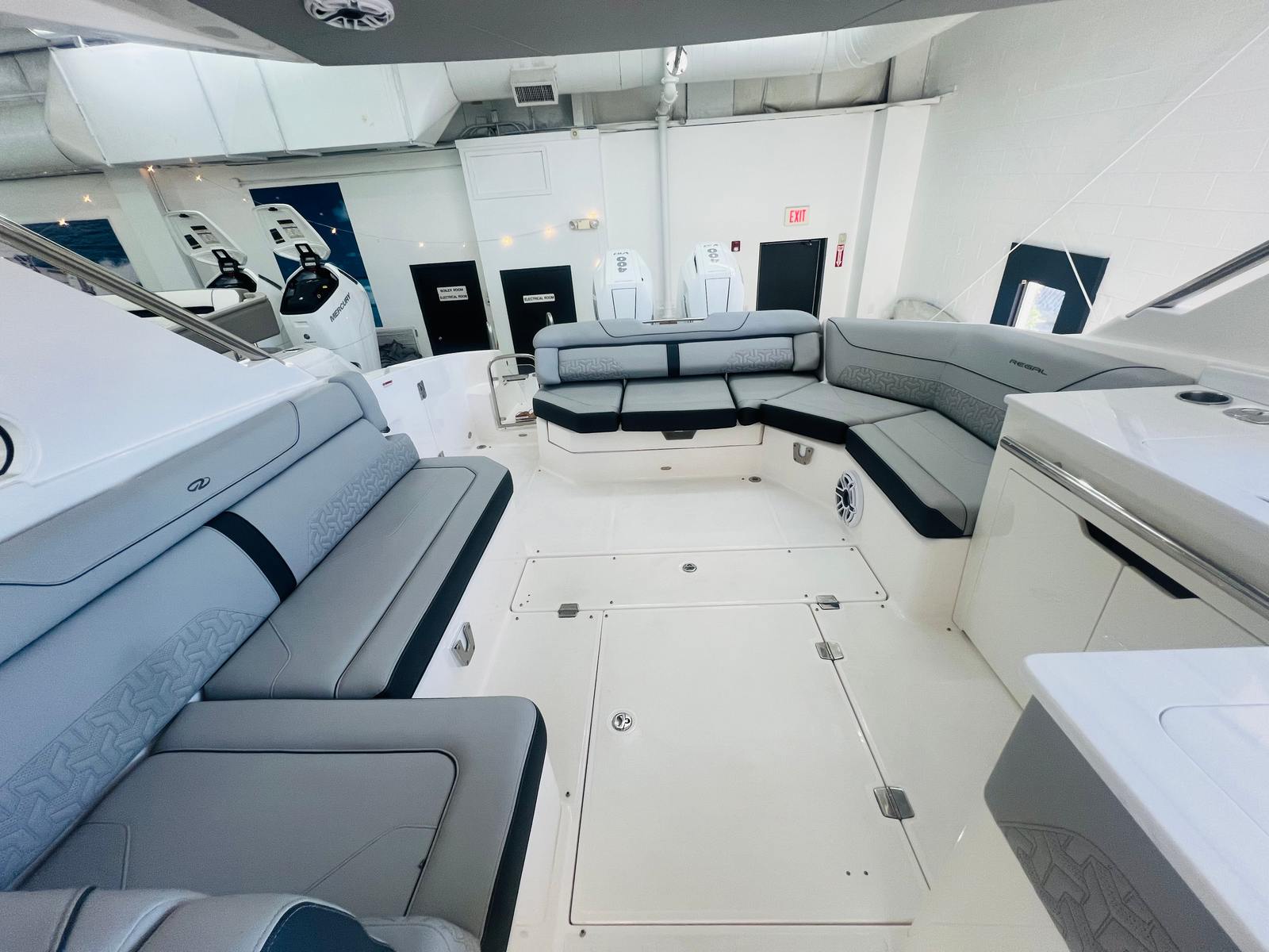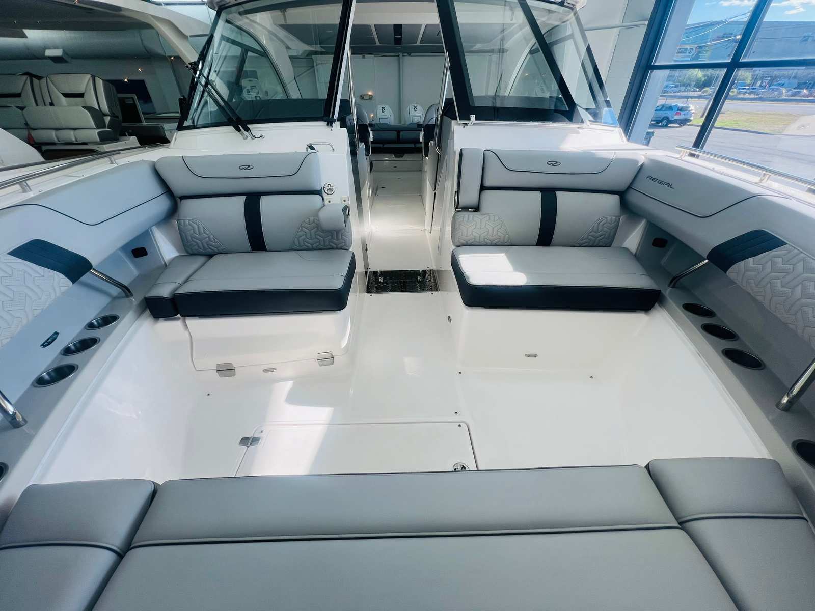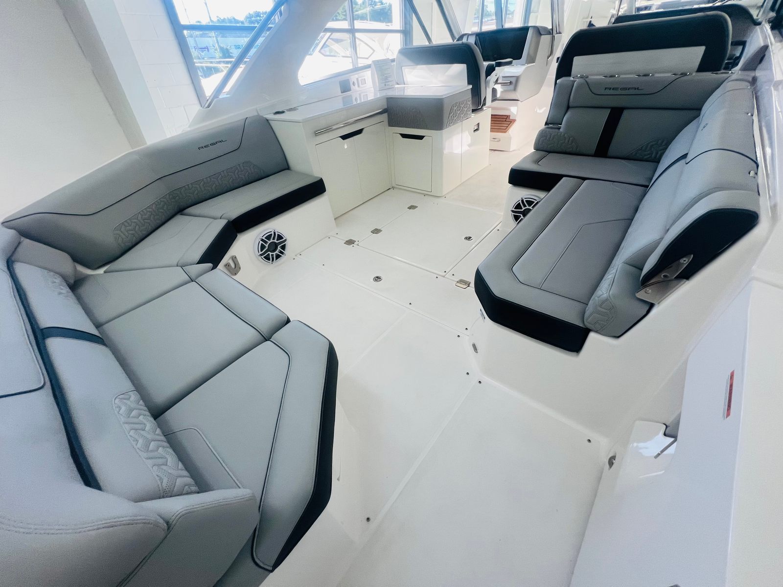 The versatility of the Regal LX36 makes it ideal for a wide range of activities and occasions. For families, it’s the perfect platform for weekend getaways, water sports, and exploring new coves and beaches. The spacious bow and cockpit areas provide plenty of room for children to play and adults to relax, while the advanced navigation systems ensure safe and easy travel.For those who love to entertain, the LX36 transforms into a luxurious venue for gatherings, parties, and celebrations. The electric grill and teak table set the stage for delicious meals and lively conversation, while the comfortable seating and sun protection features keep everyone happy and relaxed.Anglers will appreciate the advanced Garmin electronics, which make it easy to locate the best fishing spots and monitor conditions. The ample storage ensures you have room for all your gear, and the powerful engines provide the speed and agility needed to chase the catch of the day.