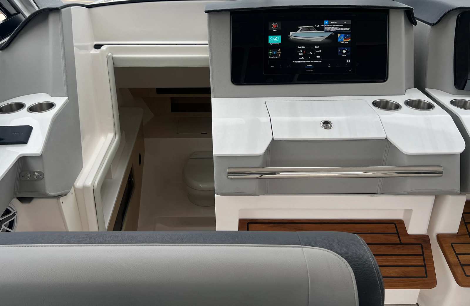 The 2025 Regal LX36 comes loaded with a host of special features designed to enhance your time on the water. Navigation and situational awareness are made effortless with the dual Garmin GPS8616XSV units paired with a B60 transducer, ensuring you always know your position and surroundings. The companion Garmin 8616 adds another layer of convenience and safety, allowing both captain and co-captain to stay informed and in control.For those who love to entertain, the electric grill and teak cockpit table transform the LX36 into a floating social hub, perfect for preparing and sharing meals with friends and family. The bow sunshade system, operated manually, provides welcome relief from the sun, while the PowerShade and Palm Beach-style aft cockpit canvas enclosure offer additional protection and comfort, no matter the weather. The white Stamoid bow cover keeps the forward seating area pristine when not in use, and the absence of bottom paint ensures a sleek, low-maintenance hull.