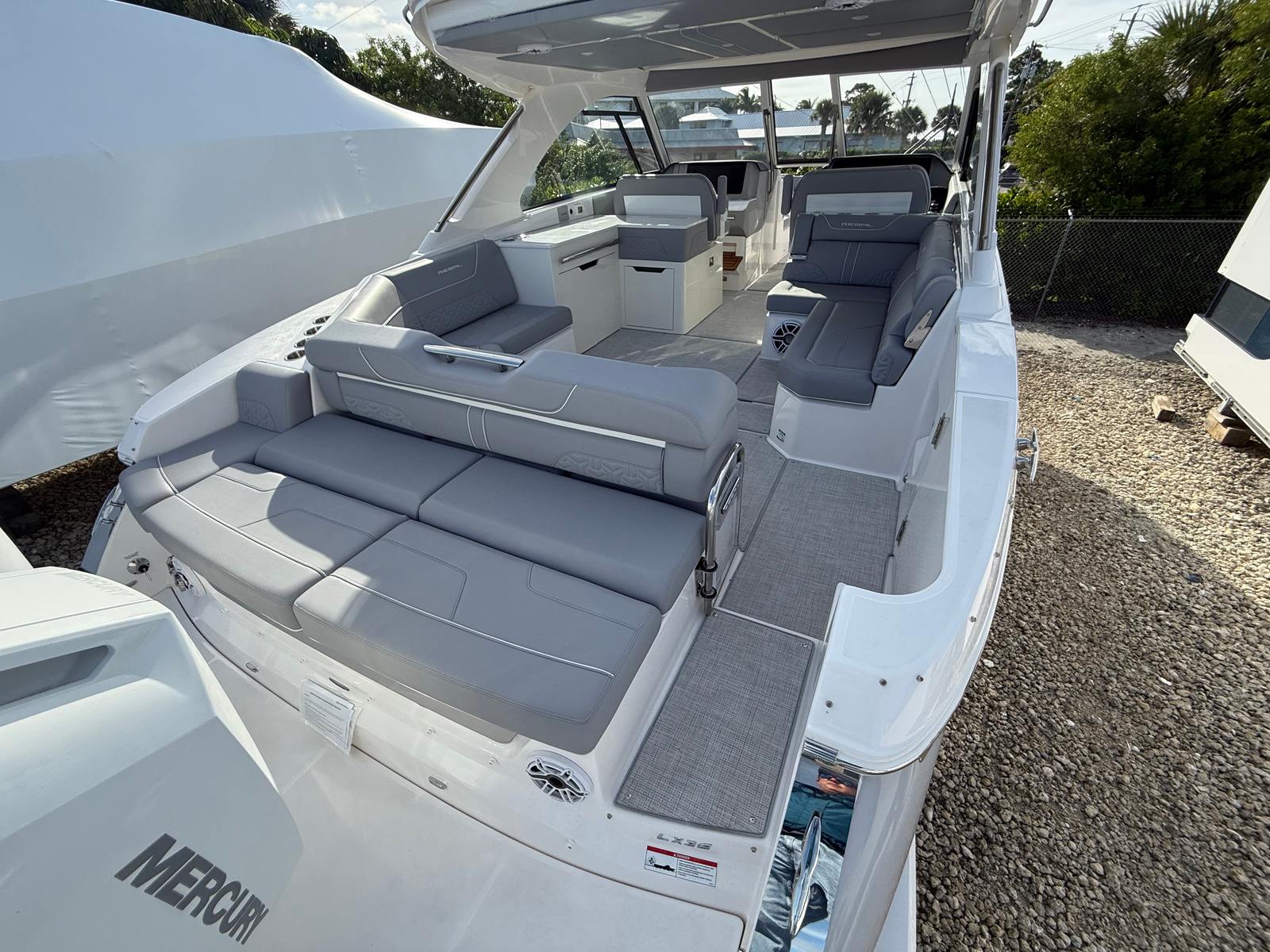 Owning the Regal LX36 bowrider means embracing a lifestyle of fun, relaxation, and social connection. The spacious layout and luxurious seating make it easy to host family outings, celebrate special occasions, or simply unwind with friends. The advanced audio and entertainment systems transform every trip into a memorable event, while the premium upholstery and flooring ensure comfort and style at every turn. With features like the PowerShade and cockpit refrigerator, you can enjoy long days on the water without sacrificing convenience or comfort.The LX36’s impressive horsepower and dual engines mean you’ll never be short on excitement, whether you’re zipping across the waves or enjoying a leisurely cruise. The boat’s thoughtful design encourages socializing, with plenty of seating and open spaces for conversation, dining, or sunbathing. The RGBW lighting adds a vibrant touch to evening gatherings, creating an inviting ambiance that’s perfect for entertaining.