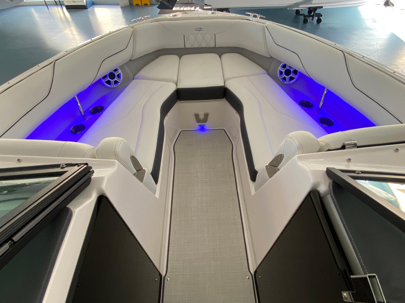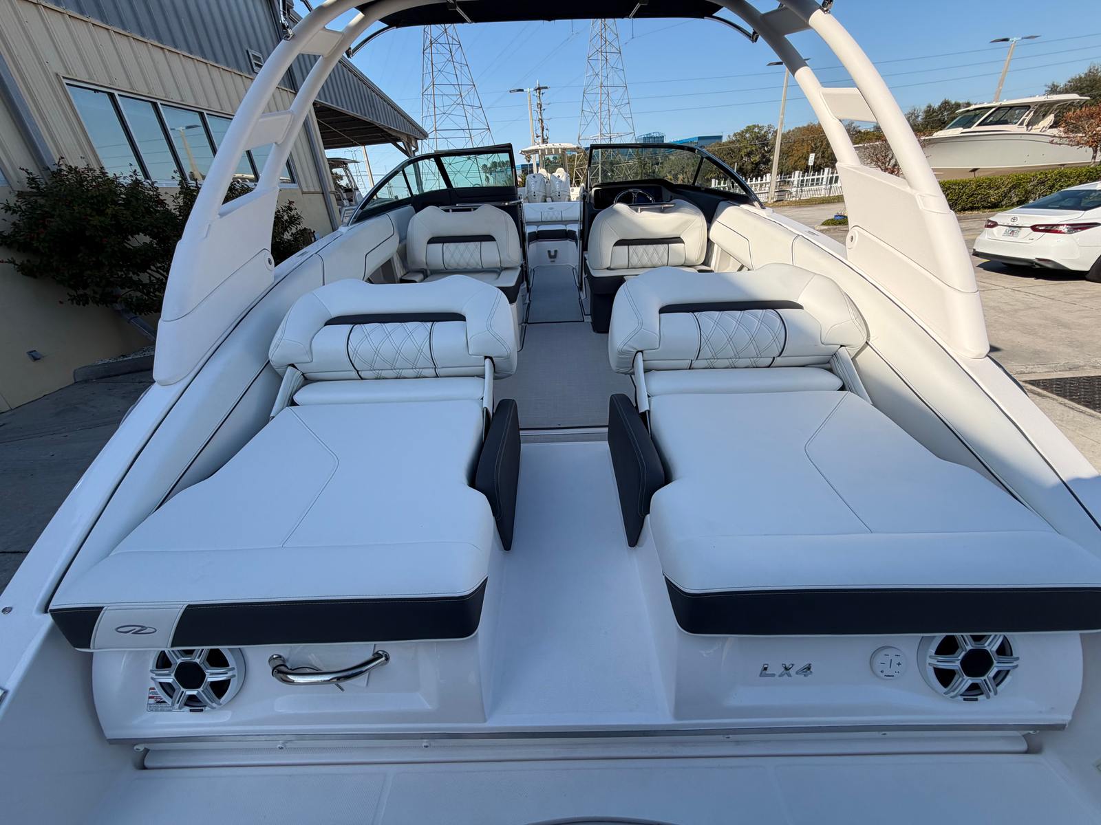The Regal LX4 is packed with special features that set it apart from other Bowrider boats for sale. The bow thruster provides superior control, allowing you to navigate with confidence in crowded marinas or challenging conditions. Underwater lighting in vibrant blue adds a touch of elegance and creates a captivating ambiance for evening cruises. The port light—half moon design—brings natural light into the cabin, enhancing the overall atmosphere and comfort.A dedicated head compartment offers convenience for longer outings, ensuring that you and your guests can enjoy extended time on the water without sacrificing comfort. The dual battery switch with tray and cables ensures reliable power management, so you can focus on fun without worrying about electrical issues. The stainless steel upgrade package adds durability and a polished look to key hardware and fittings, while the Mediterranean Blue hull color turns heads wherever you go.Bow walk-thru doors make moving between the cockpit and bow safe and easy, while fender clips simplify docking and protect your investment. The cockpit seagrass mat provides a soft, stylish surface underfoot, enhancing both comfort and aesthetics.