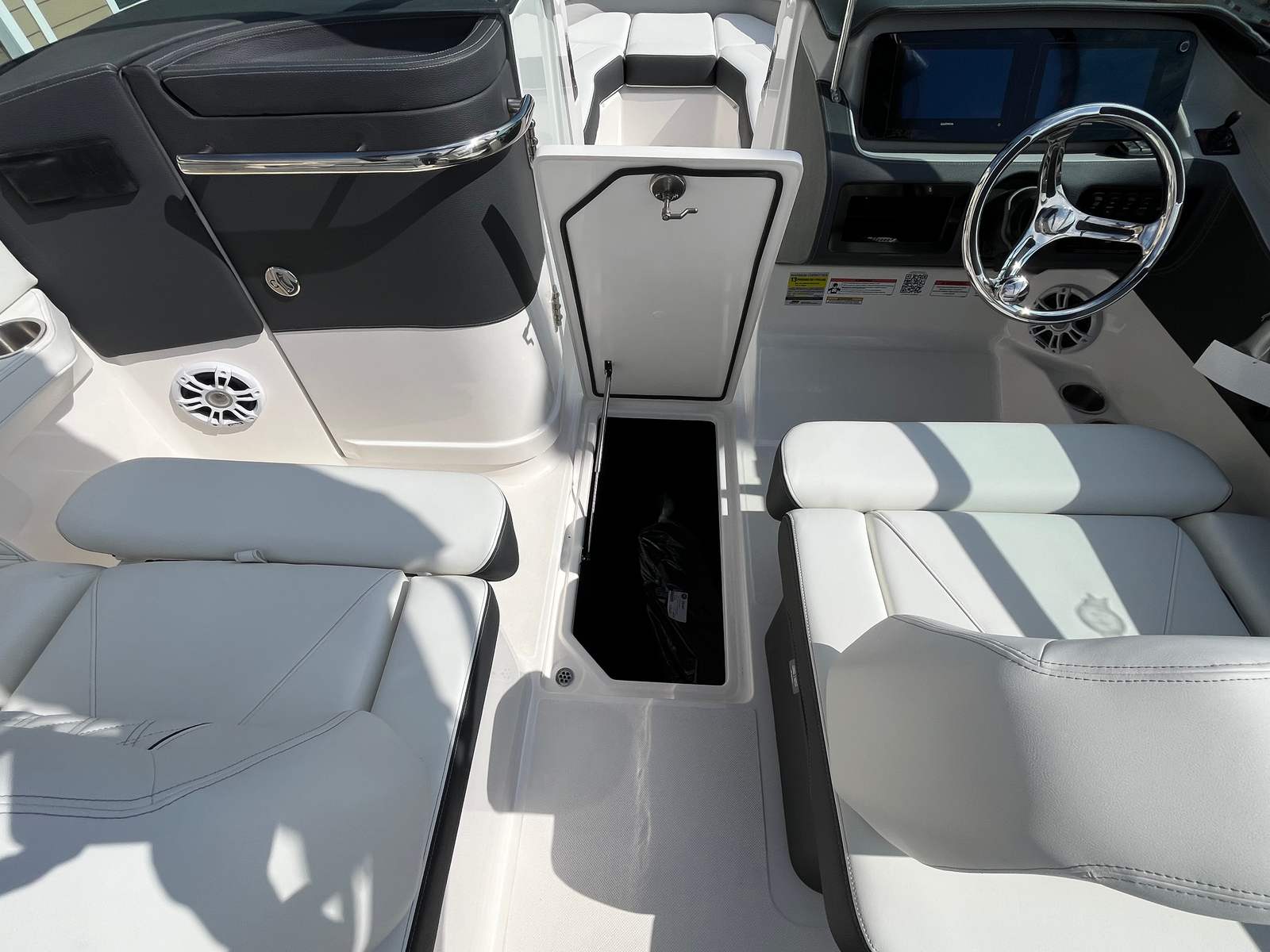 Practicality meets luxury in the 2025 Regal LX4. The dual battery system and onboard charger provide reliable power for all your electronics and accessories, so you can focus on having fun without worrying about running out of juice. The bow thruster makes docking and close-quarters maneuvering a breeze, reducing stress and making every outing more enjoyable.The bow and cockpit covers protect your investment from the elements, ensuring your boat stays clean and ready for your next adventure. The transom shower and pressure water package add convenience for swimmers and sunbathers, making it easy to rinse off and stay comfortable throughout the day.With its thoughtful design and user-friendly features, the LX4 is as practical as it is stylish, offering a seamless boating experience from start to finish.