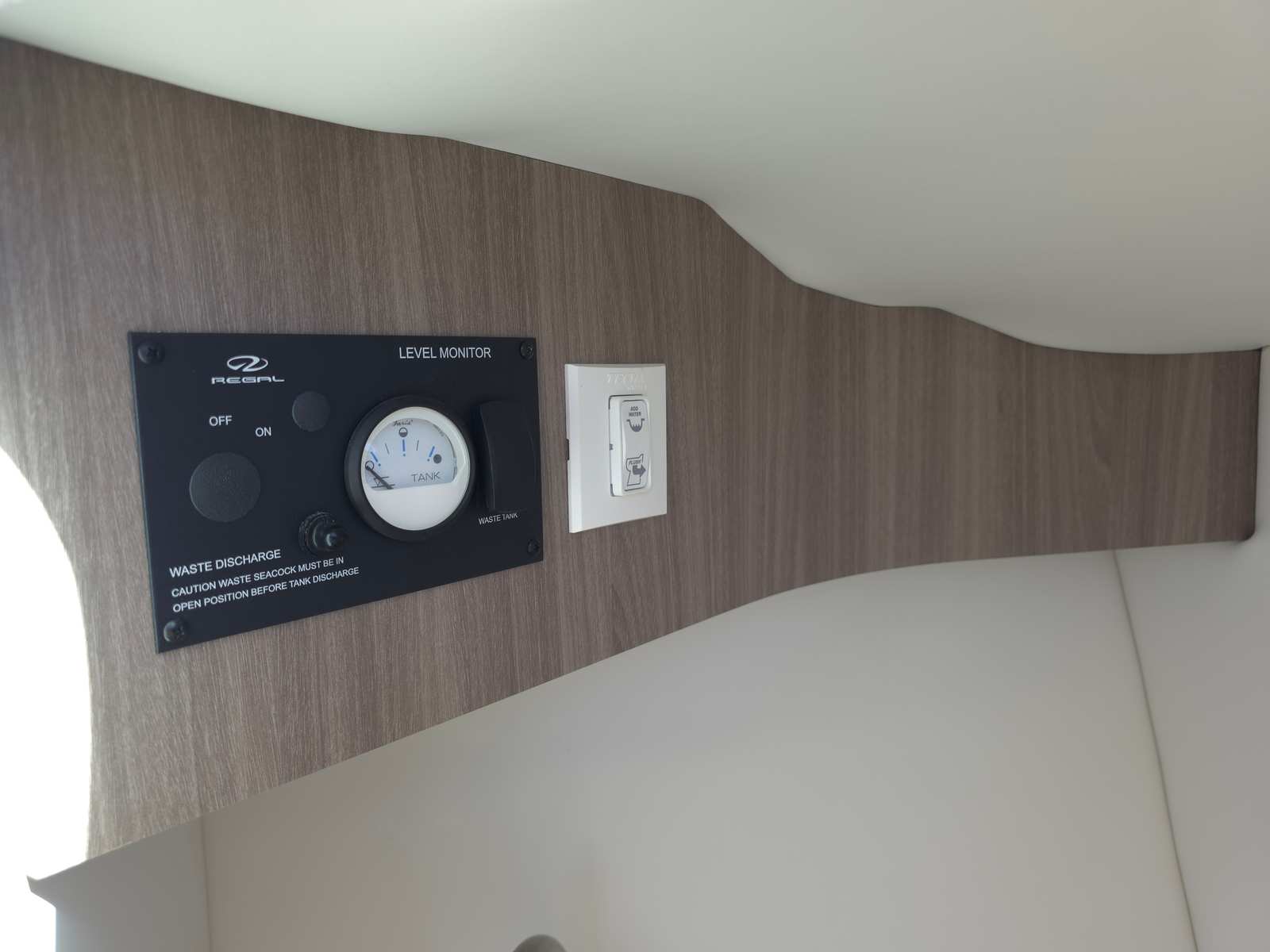 Dual Garmin 12" Displays, Aftermarket Anchor windlass, Bow walkthrough doors, Cockpit table, Cockpit and bow cover, Bow shade, Bow thruster, Trim tabs, Fusion stereo system, Full head porcelain, Stainless sink, Retractable aft seat, Power Hard Top retractable.