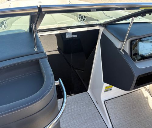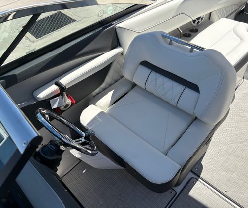 The Regal LX4 Bowrider is packed with features designed to enhance your boating experience. The boat’s Mediterranean Blue canvas adds a touch of elegance and protection, while the Bow Sunshade System—manual in operation—provides welcome relief from the midday sun, allowing you and your guests to relax in comfort. Bow and cockpit covers help keep your boat looking pristine, protecting it from the elements when not in use.Step into the cockpit and you’ll find a luxurious Seagrass Mat underfoot, offering both style and comfort. The dual battery switch with tray and cables ensures reliable power management, giving you peace of mind during extended outings. Every detail, from the color-coordinated accents to the ergonomic seating, has been carefully considered to create a welcoming and functional environment.