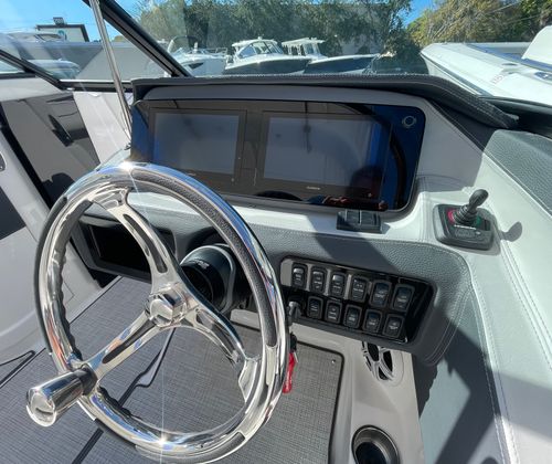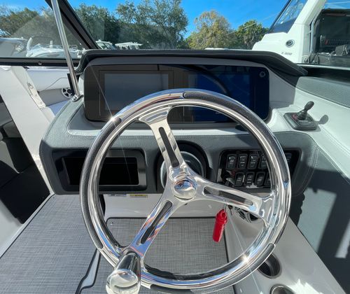Step aboard the Regal LX4 and discover a host of premium features designed to enhance your boating experience. The Bow & Cockpit Covers provide protection from the elements, keeping your boat looking pristine and ready for action. The White Stamoid Upgrade Bimini Top offers shade and shelter, perfect for sunny days or unexpected showers. The Steel Grey canvas adds a modern touch, while the Cockpit Seagrass Mat delivers comfort and style underfoot. The dual battery switch with tray and cables ensures reliable power management, so you can enjoy longer days on the water without worry.Every detail of the Regal LX4 has been thoughtfully crafted to maximize comfort and convenience. The spacious bow area invites relaxation, while the open cockpit layout encourages socializing and fun. The Titanium interior color scheme creates a contemporary atmosphere, making every moment onboard feel special.