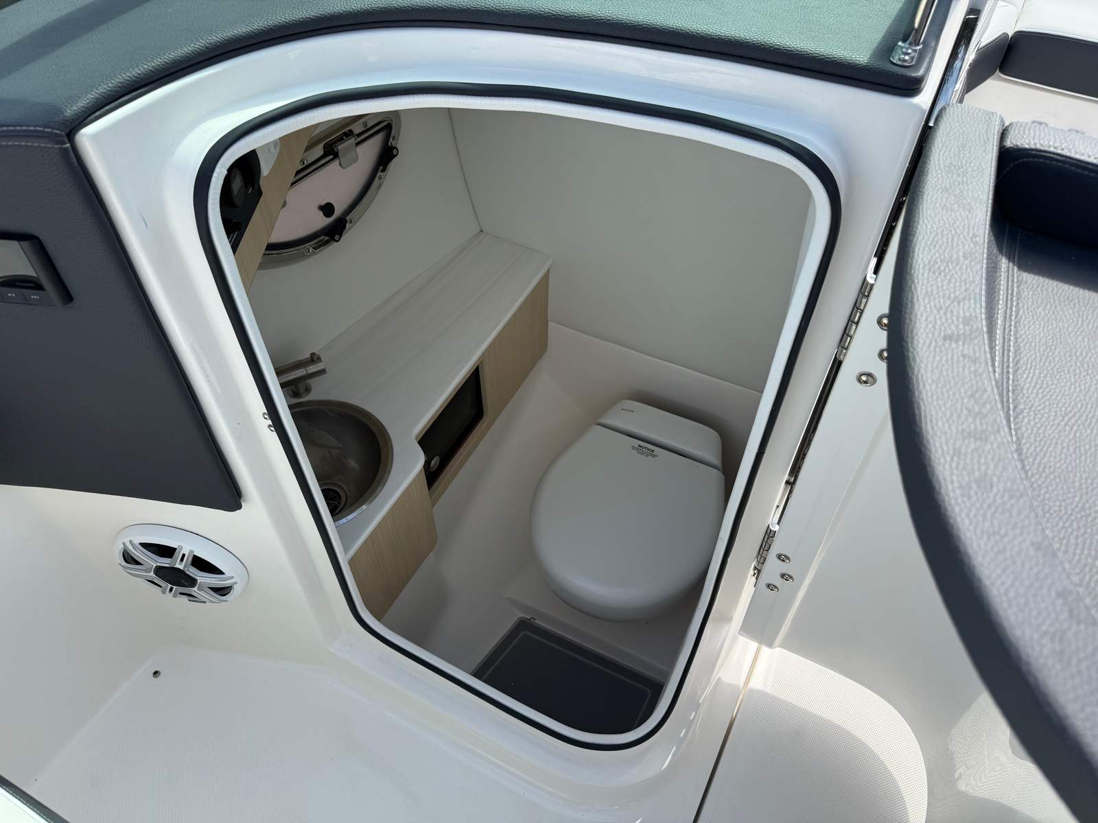 The 2026 Regal LX6 Bowrider is equipped with a range of special features designed to enhance your time on the water. The Titanium interior provides a sophisticated and comfortable environment, while the Bow & Cockpit Covers and Steel Grey canvas offer protection from the elements and keep your boat looking pristine. The Cockpit Seagrass Mat adds a touch of elegance and comfort underfoot, making every moment onboard enjoyable. The dual battery switch with tray and cables, along with the battery charger, ensures reliable power management for all your onboard electronics and accessories.The thoughtful color palette, including the Steel Grey hull, Mediterranean Blue bootstripe, and Tahiti Beach White bottom, gives the LX6 a distinctive and modern look that stands out at the marina or on open water. Every detail is crafted to provide both aesthetic appeal and functional benefits, making this Bowrider boat for sale a true head-turner.