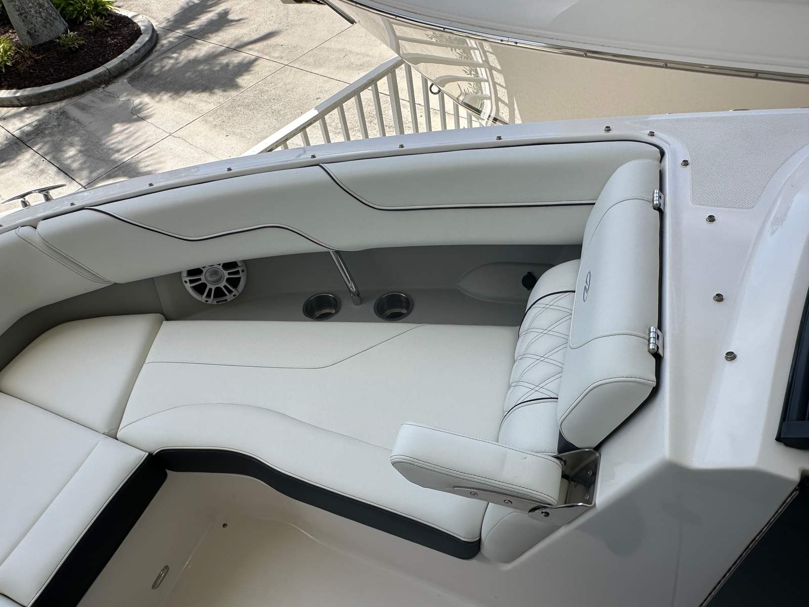 The Regal LX6 Bowrider is designed with practicality in mind, making ownership a breeze. Its 26.25-foot length strikes the perfect balance between spaciousness and maneuverability, allowing you to explore a variety of waterways with confidence. The Bow Walk-Thru Doors and Port Light - Half Moon enhance accessibility and comfort, while the Cockpit Seagrass Mat ensures easy cleanup after a day of fun.Fuel efficiency is a hallmark of the Yamaha F300NCB2 engine, so you can enjoy longer trips without worrying about frequent refueling. Fender Clips and docking lights streamline the process of mooring your boat, saving you time and effort. The Transom Shower & Pressure Water Package provides added convenience for rinsing off gear, pets, or sandy feet, making every adventure more enjoyable.