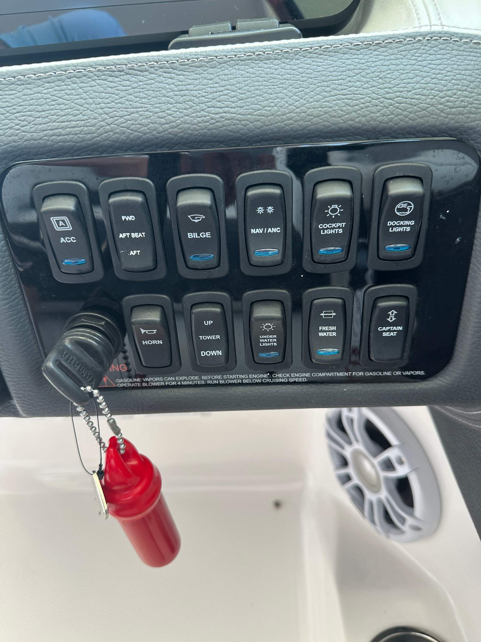 At the heart of the Regal LX6 is a powerful Yamaha F300NCB2 engine, delivering an exhilarating 300 horsepower. This single-engine setup offers smooth acceleration and responsive handling, making it easy to navigate tight turns or open up for thrilling speed runs. The advanced engineering ensures efficient fuel consumption, so you can spend more time enjoying the water and less time at the pump. Whether you’re towing water toys, exploring new coves, or simply cruising at sunset, the LX6’s performance capabilities are sure to impress.