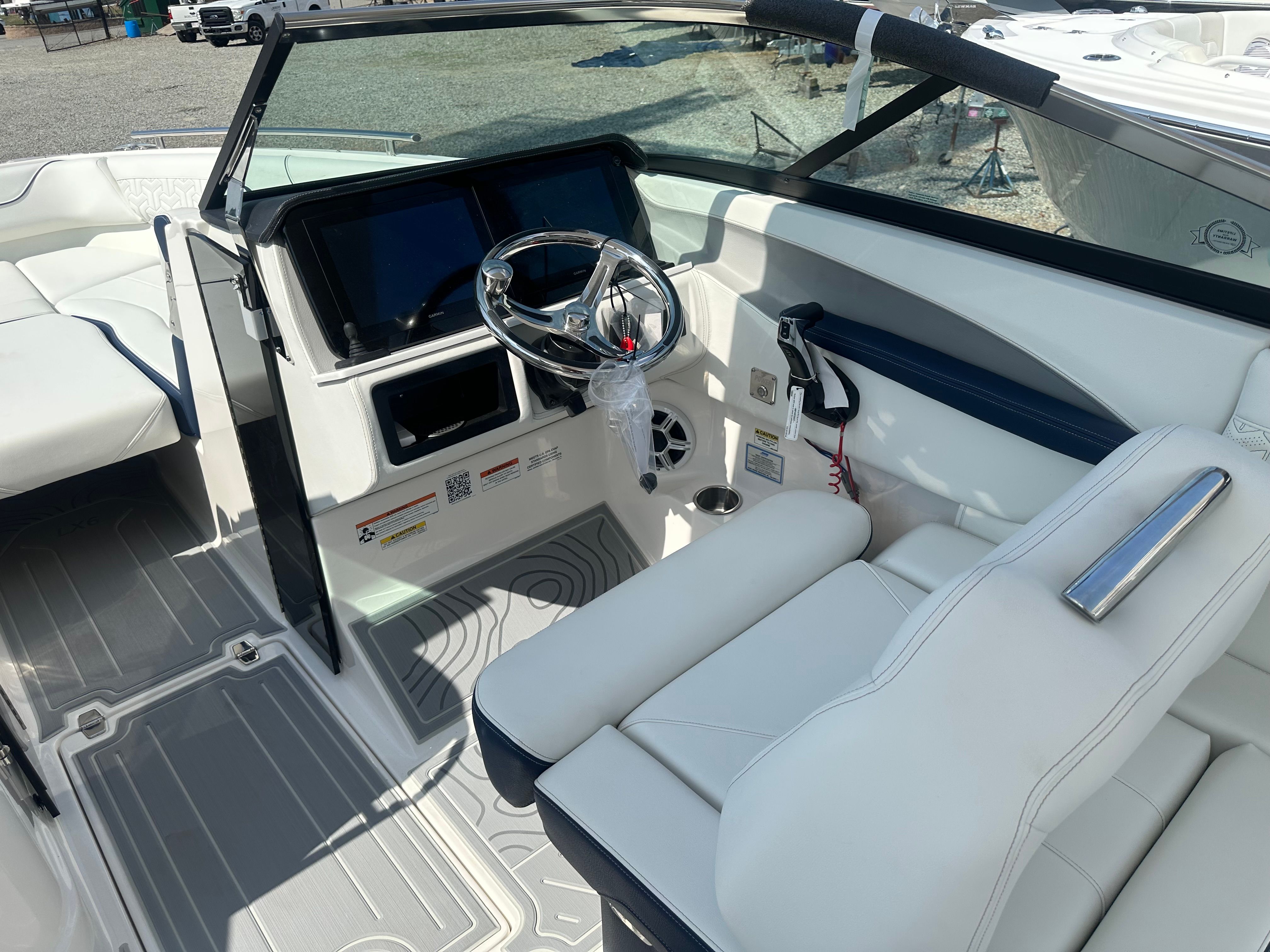 The Regal LX6 Bowrider is as practical as it is fun. Intelligent Battery Management and a reliable battery charger mean you’ll spend less time worrying about maintenance and more time enjoying the water. The bow thruster simplifies docking, making it easy to maneuver in marinas and tight spaces. The trim tabs provide stability and control, ensuring a smooth ride even when conditions change.Storage solutions throughout the boat keep your gear organized and accessible, while the transom shower and pressure water package make cleanup a breeze after a day of swimming or water sports. The electric toilet with pump out fittings adds convenience for longer trips, so you can stay out on the water as long as you like. Every detail of the LX6 is designed to make ownership enjoyable and hassle-free.