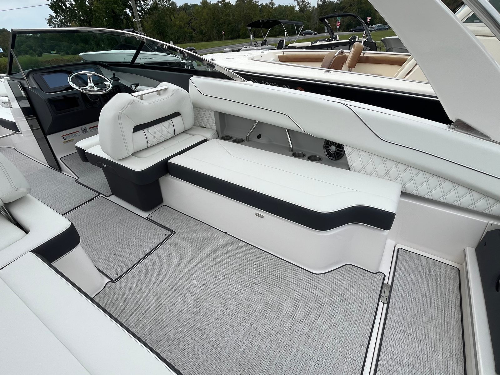 New 2026 Regal LX6 – Powered by a Yamaha F300 HP DEC, the LX6 is the ultimate expression of luxury, performance, and versatility in a 27’ bowrider. With Regal’s patented FasTrac Hull Design, this model delivers exhilarating performance, faster speeds, and improved fuel efficiency compared to the competition. The wide beam and premium layout create an expansive cockpit and bow area perfect for entertaining, watersports, or simply enjoying a sunset cruise in comfort. Combining sleek styling with advanced technology, the LX6 offers a true premium boating experience.