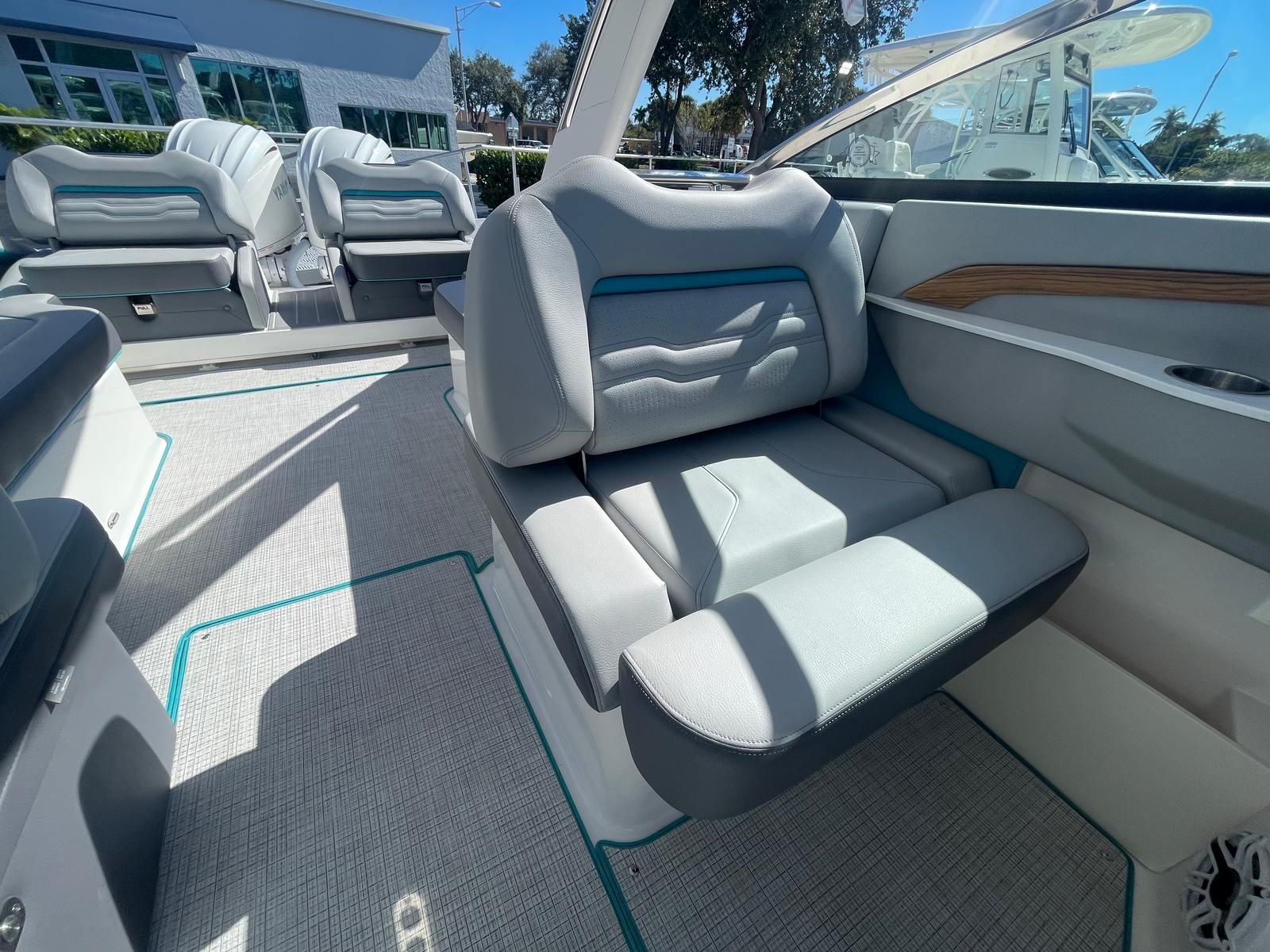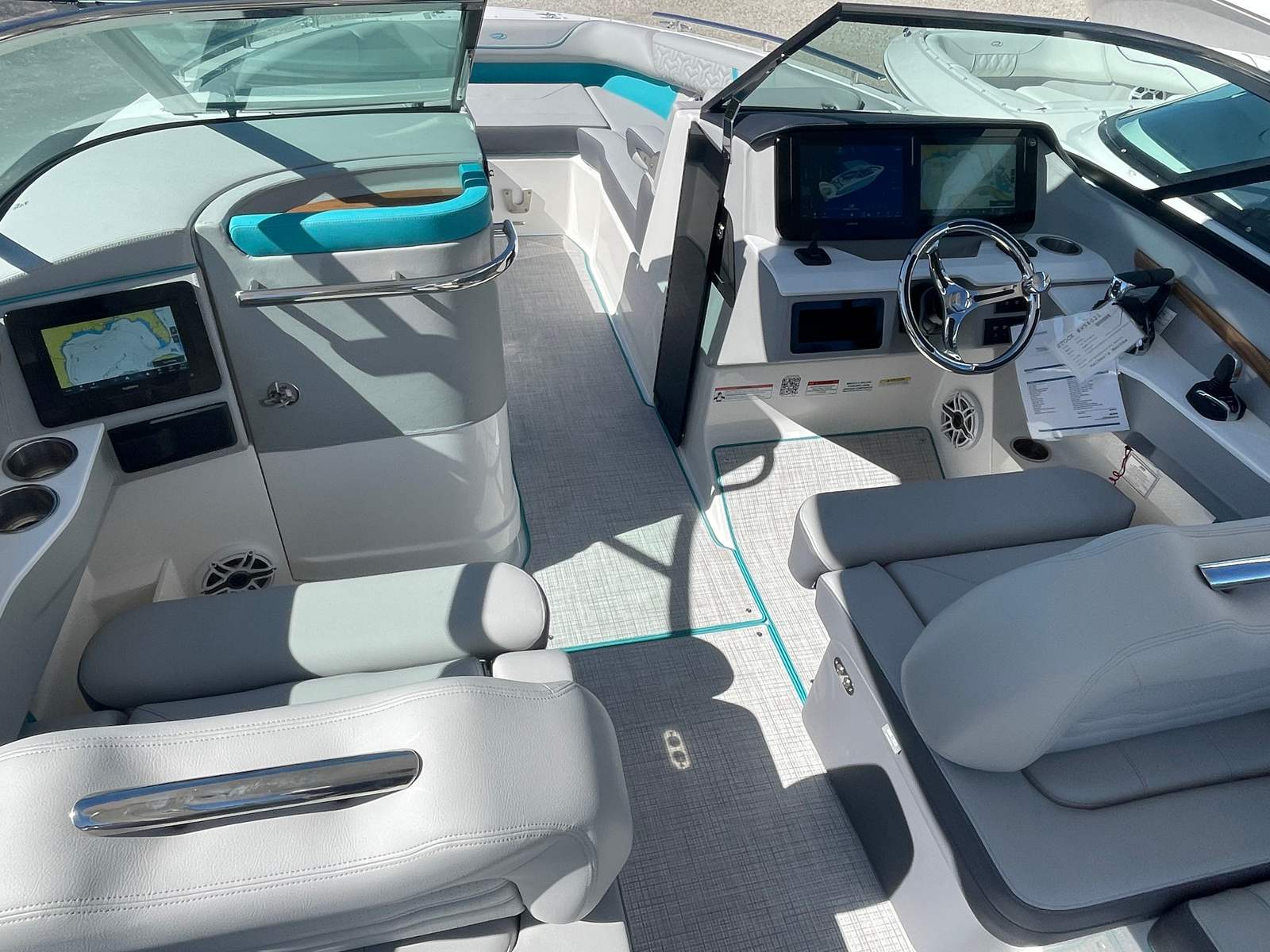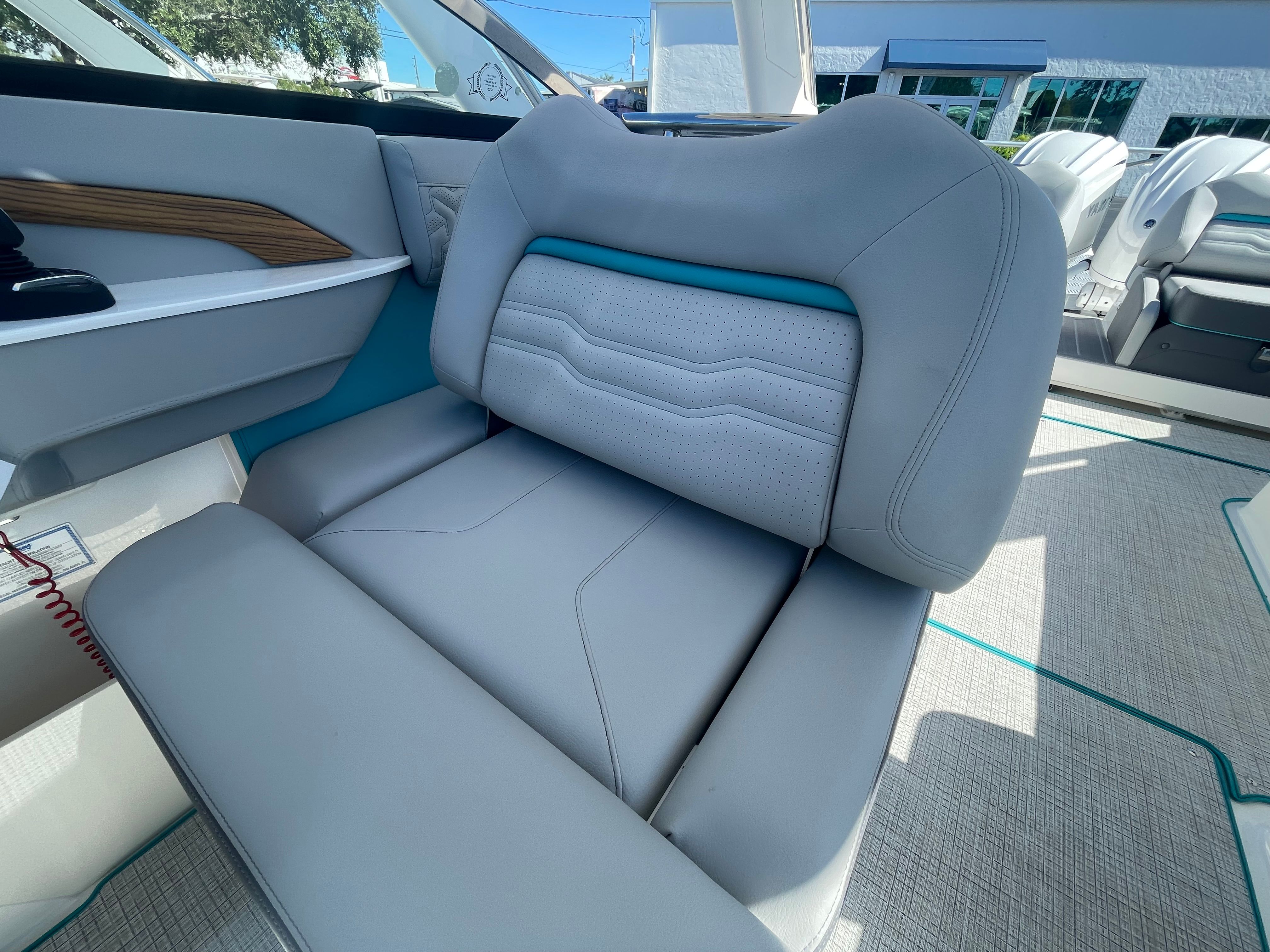 Step aboard the Regal LX9 Ultimate and discover a suite of premium features designed to elevate your boating experience. The interior showcases the striking Color Zone 5 - Bimini Blue - Simtex upholstery, creating a vibrant and inviting atmosphere. Docking lights illuminate your way during evening arrivals, while the anchor windlass with rope and chain ensures secure anchoring with minimal effort. Fender clips provide quick and easy protection when mooring, and the stainless steel flag pole with a U.S. flag adds a touch of patriotic flair.For added convenience, the LX9 Ultimate includes a battery charger to keep your systems powered, and indicators for trim tabs to optimize your ride’s balance and efficiency. The black canvas offers stylish shade and protection from the elements, while the overboard discharge toilet provides comfort for longer outings. Every detail is thoughtfully designed to enhance both functionality and aesthetics, reflecting Regal’s commitment to quality and innovation.
