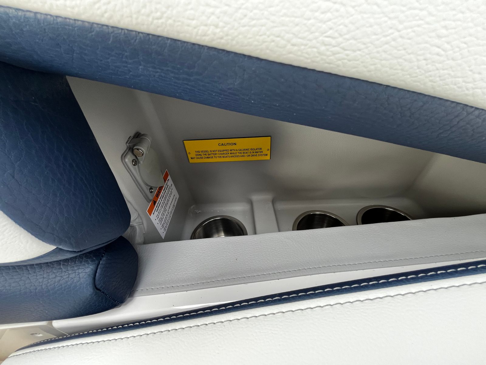 Hull Color – Tahiti Beach White with Mediterranean Blue Boot Stripe: A stunning, timeless color combination that radiates coastal sophistication.