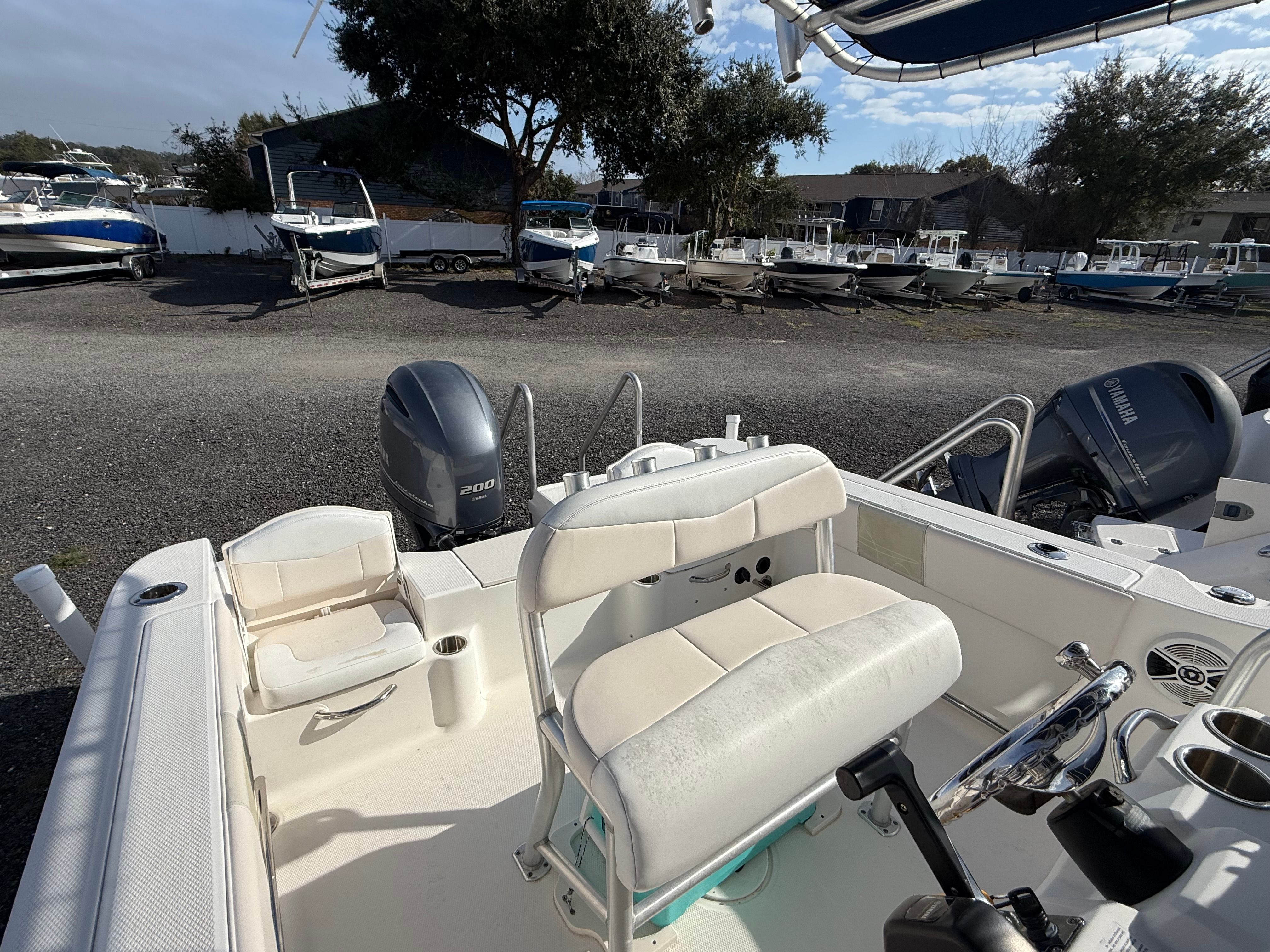 The 2016 Robalo 200 CC is packed with features that enhance both functionality and enjoyment on the water. The center console layout provides 360-degree access around the boat, making it ideal for fishing, entertaining, or simply relaxing in the sun. The spacious deck allows for easy movement, while the ergonomic helm ensures comfortable control and excellent visibility. The boat’s sturdy construction and thoughtful design elements reflect Robalo’s commitment to safety and user-friendly operation.Special features of this Robalo boat for sale include a well-designed center console that maximizes deck space and storage, allowing you to bring along all your gear and essentials for a full day on the water. The console also provides protection from the elements and houses intuitive controls for effortless navigation. With its clean lines and modern aesthetic, the Robalo 200 CC is as visually appealing as it is practical.