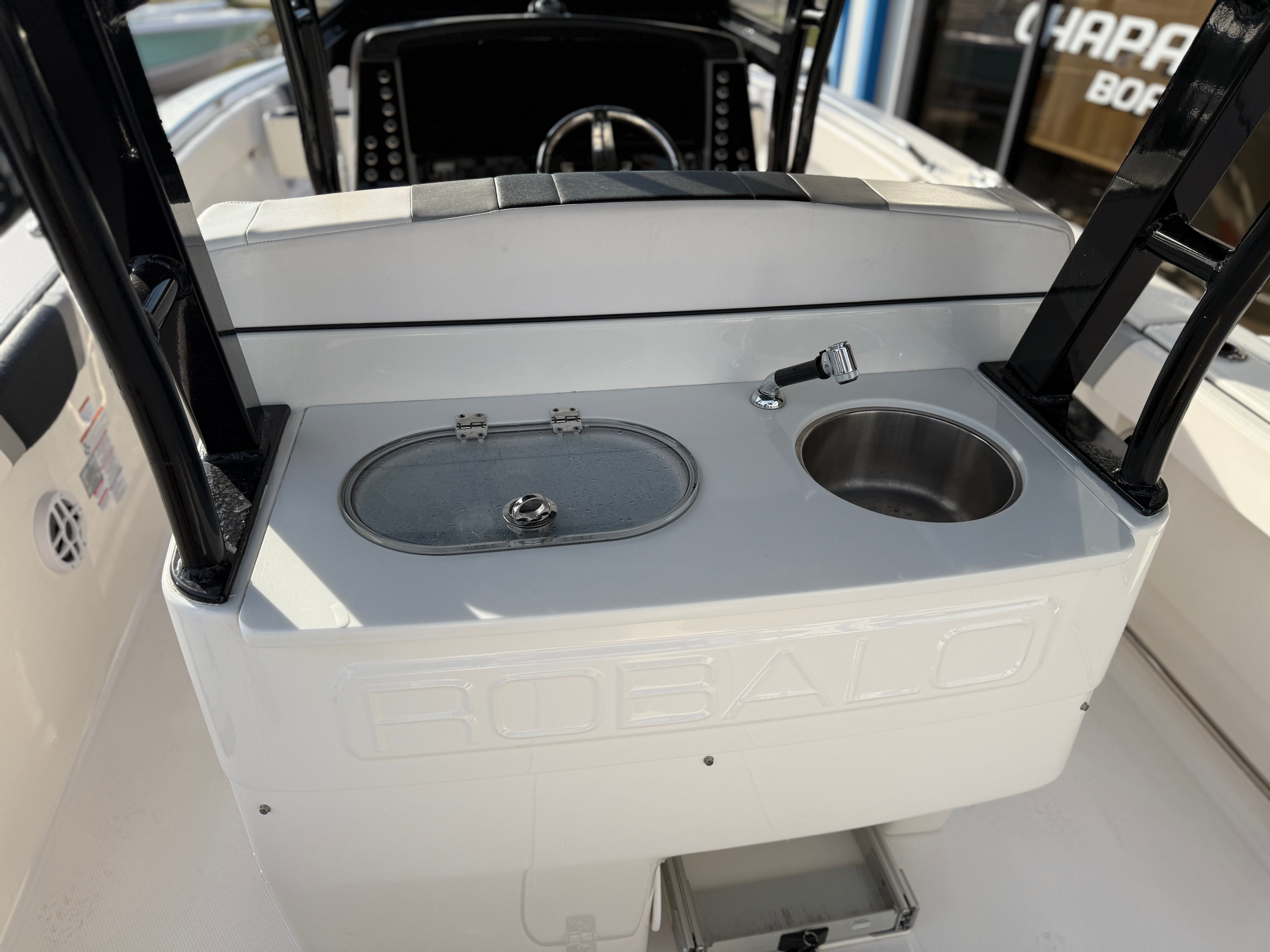 Powering the Robalo R272 are twin engines, delivering a combined 400 horsepower. This dynamic setup ensures that the R272 is more than capable of handling offshore conditions with confidence and agility. The dual-engine configuration not only enhances speed and acceleration but also provides added reliability and peace of mind when venturing far from shore. Whether you’re navigating choppy waters or cruising along the coastline, the R272’s engines offer smooth, responsive handling and impressive fuel efficiency, making every journey enjoyable and efficient.