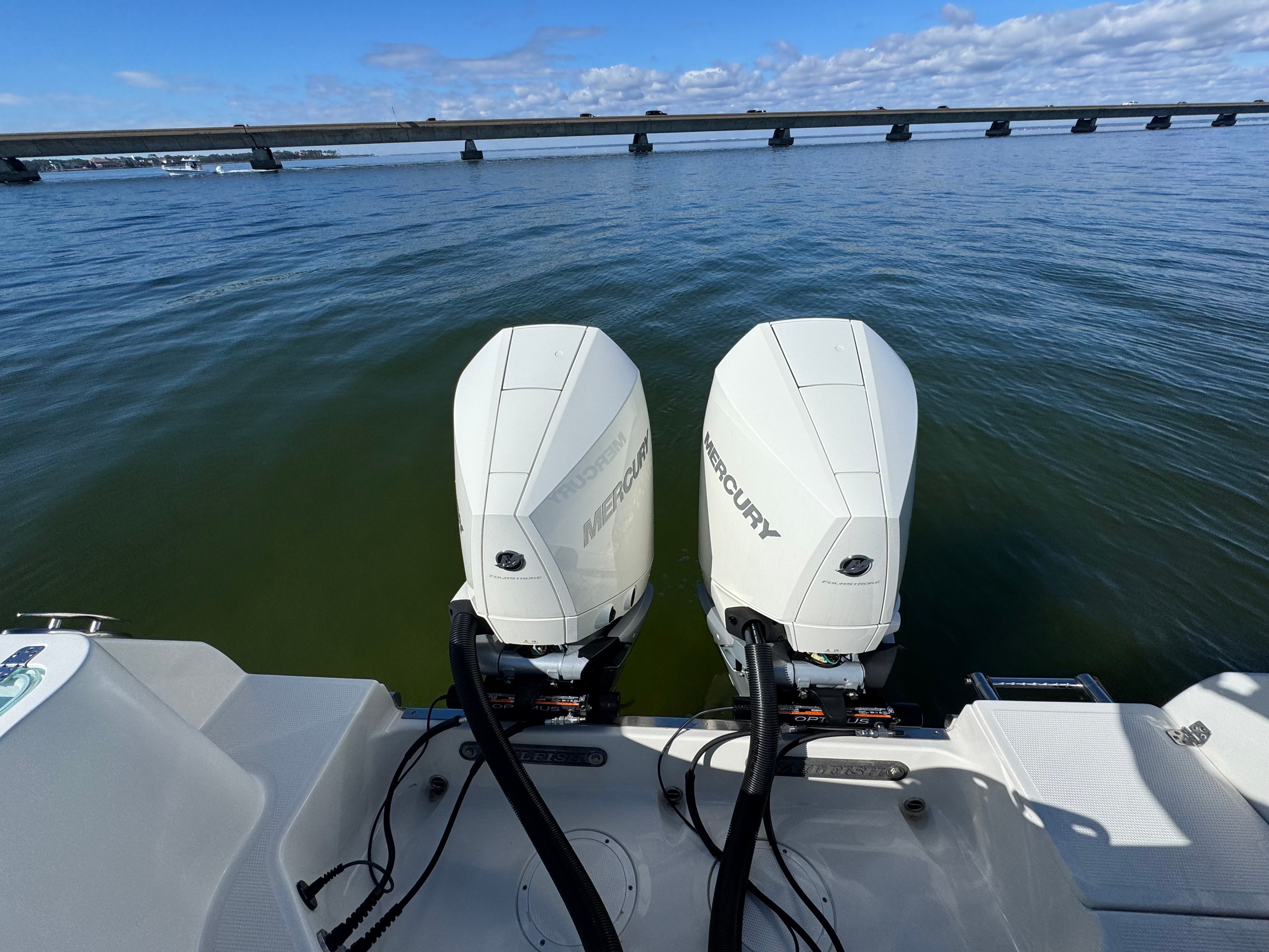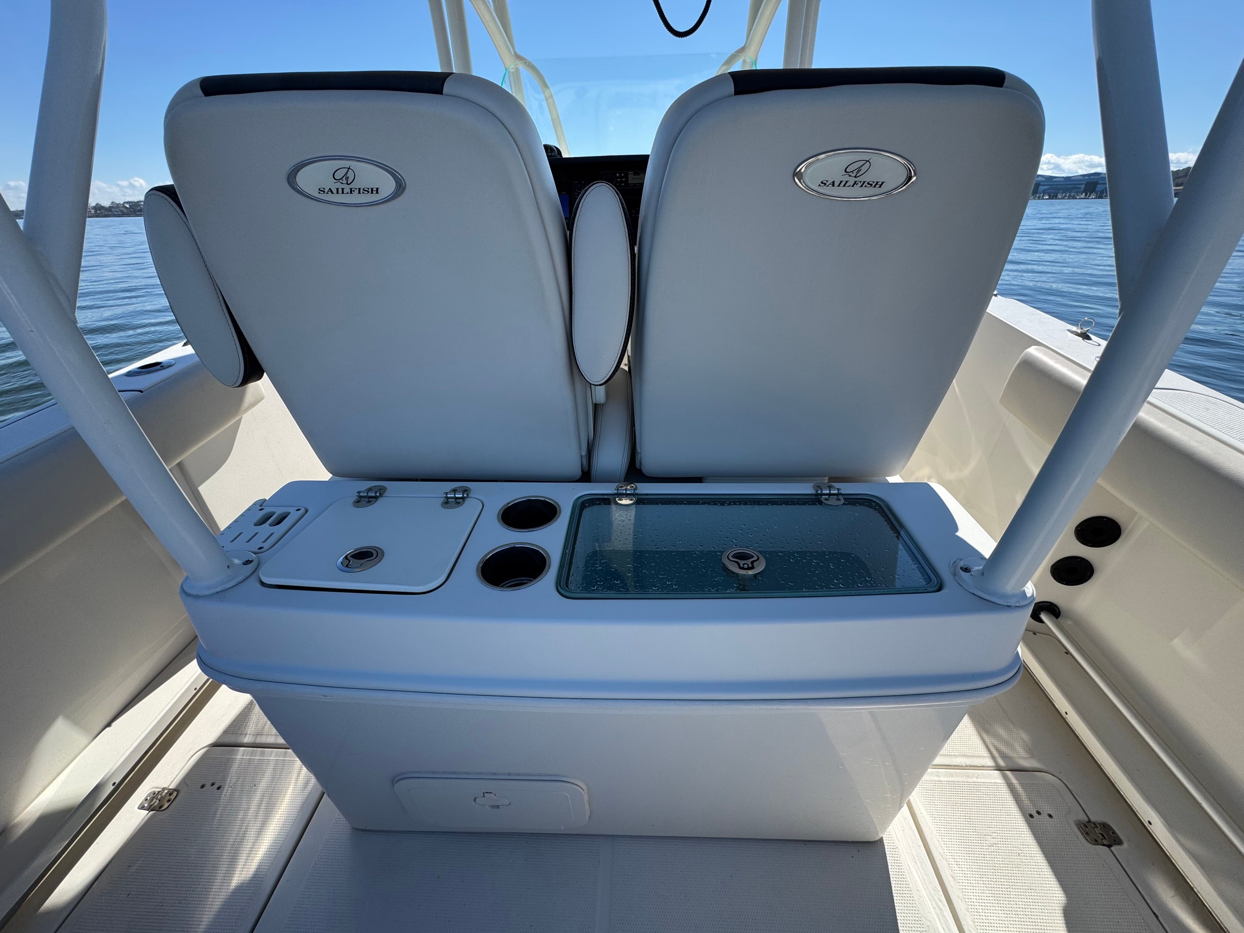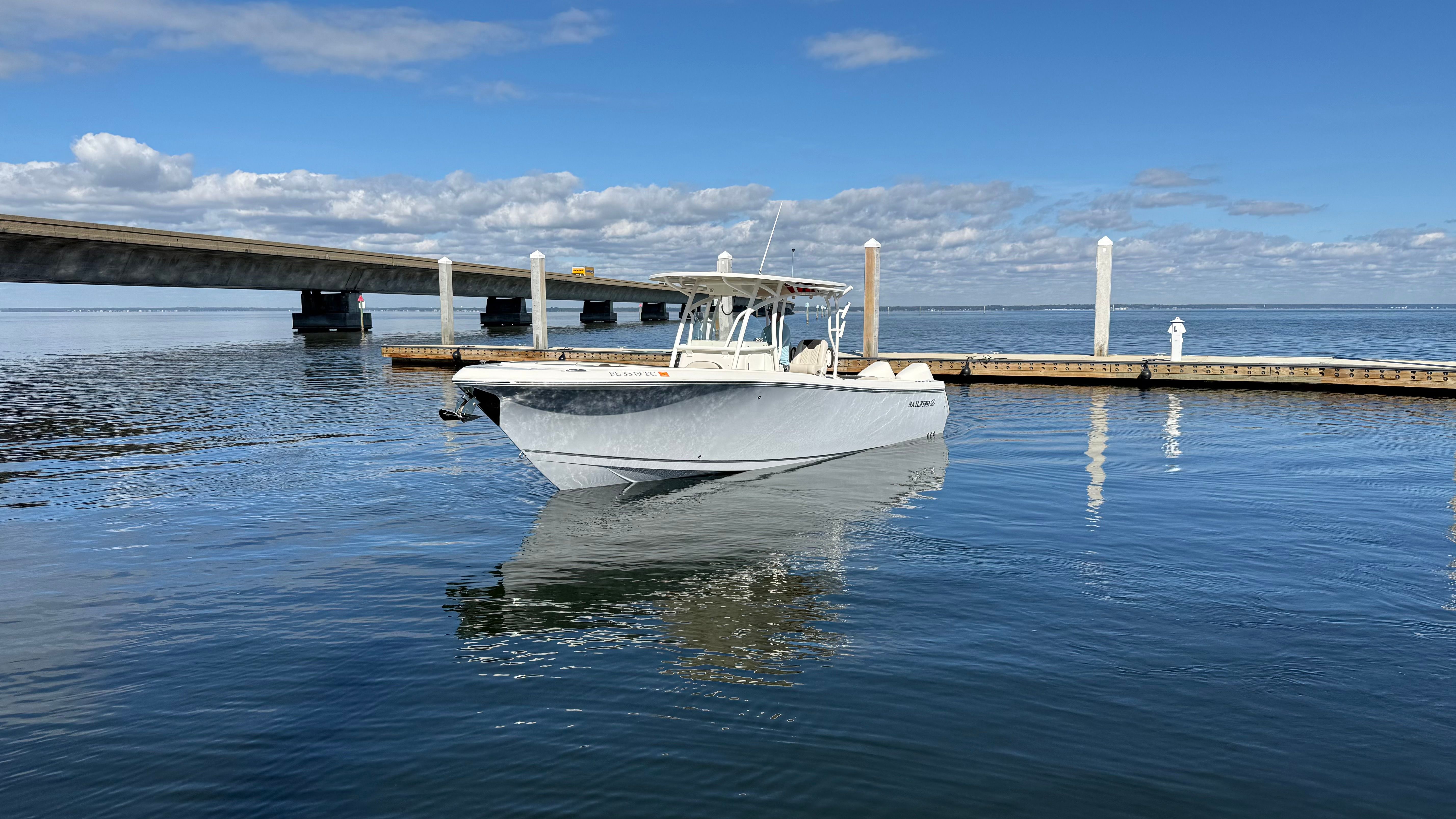 One owner beautiful Sailfish 290CC with only 105 hrs on her Twin white Mercury Verado 300's! Engines have 5 yr extended warranty, 100hr service just performed, this one is truly turnkey and ready to go.