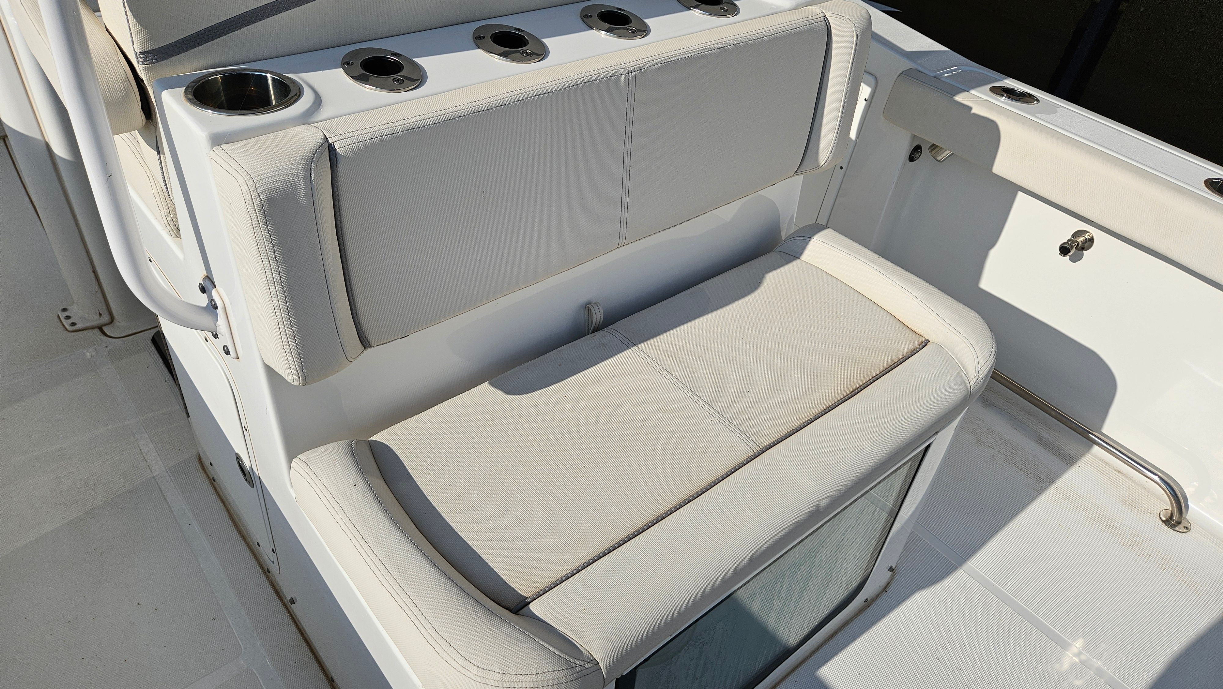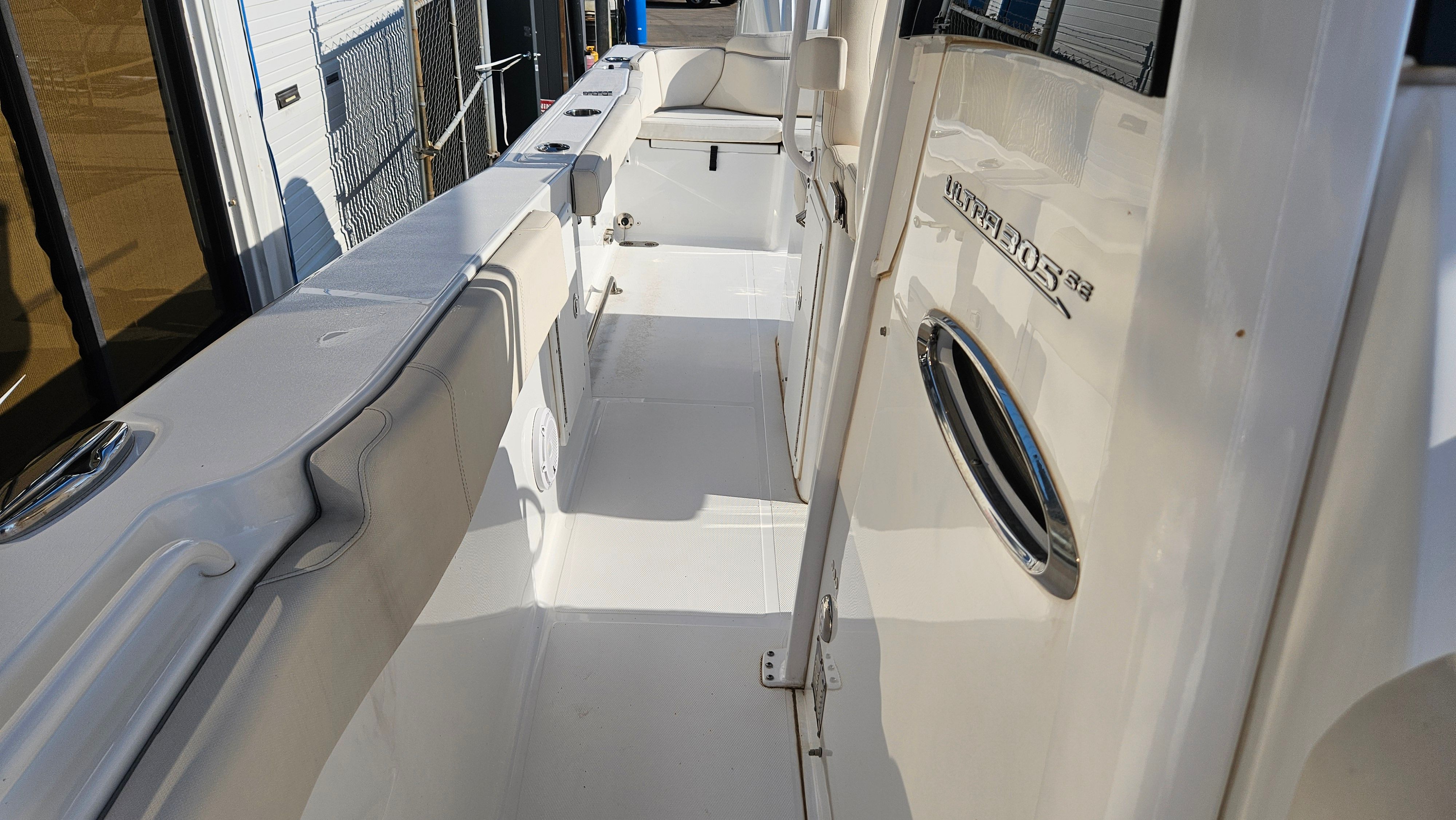 At the heart of this offshore fishing boat are twin 4-stroke Yamaha 300hp engines, delivering a combined 600 horsepower. These engines are celebrated for their reliability, fuel efficiency, and quiet operation, ensuring you have the power and confidence to venture far offshore or cruise comfortably along the coast. With only 36 engine hours, these Yamaha engines are barely broken in, offering years of dependable service ahead. The advanced propulsion system, paired with the Optimus 360 Joystick and Auto Pilot, provides effortless maneuverability and precise control, making docking and navigating tight spaces a breeze. Whether you are chasing big game fish or enjoying a leisurely cruise, the Sea Hunt 305 Ultra SE delivers exhilarating performance and peace of mind.