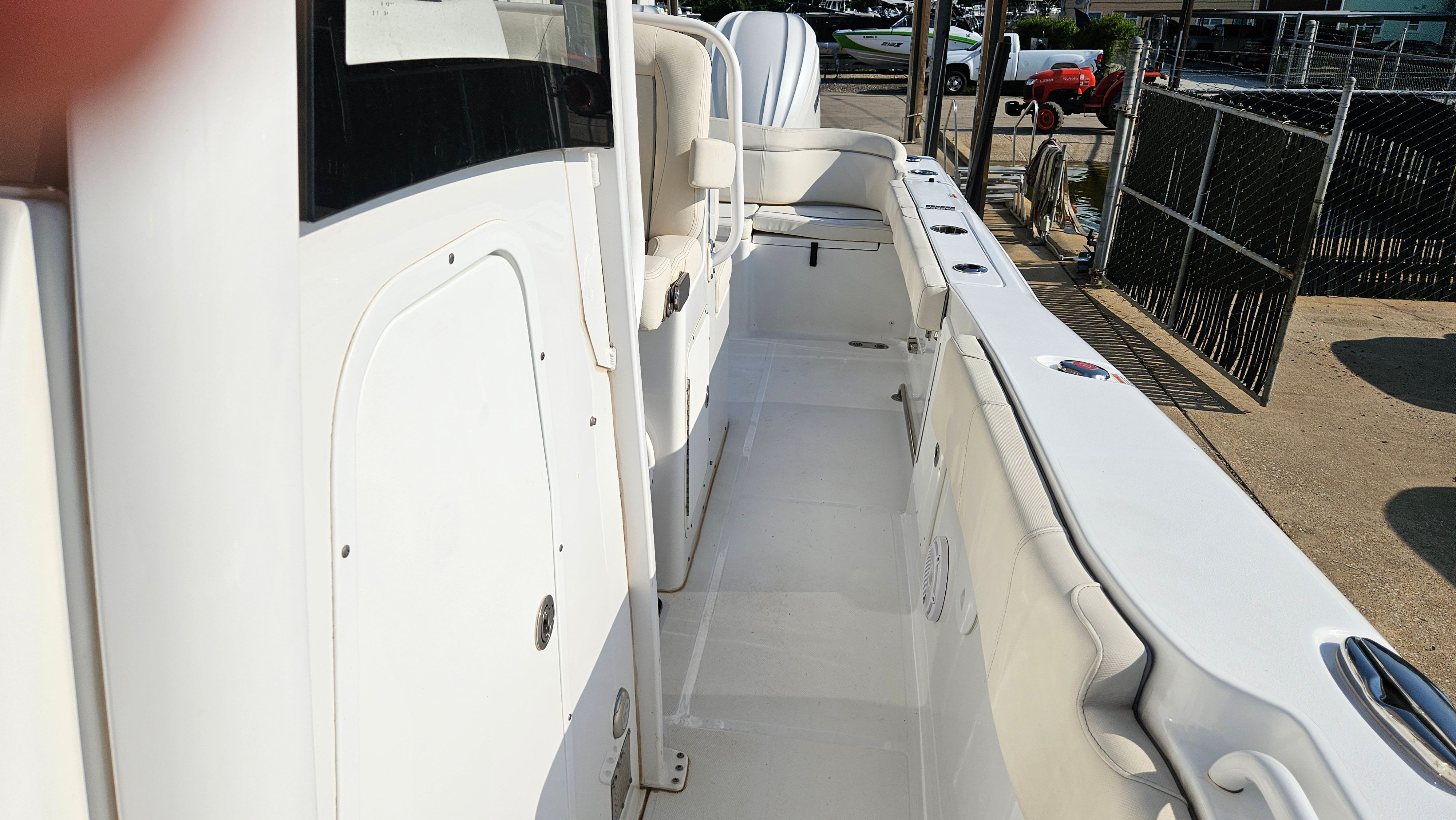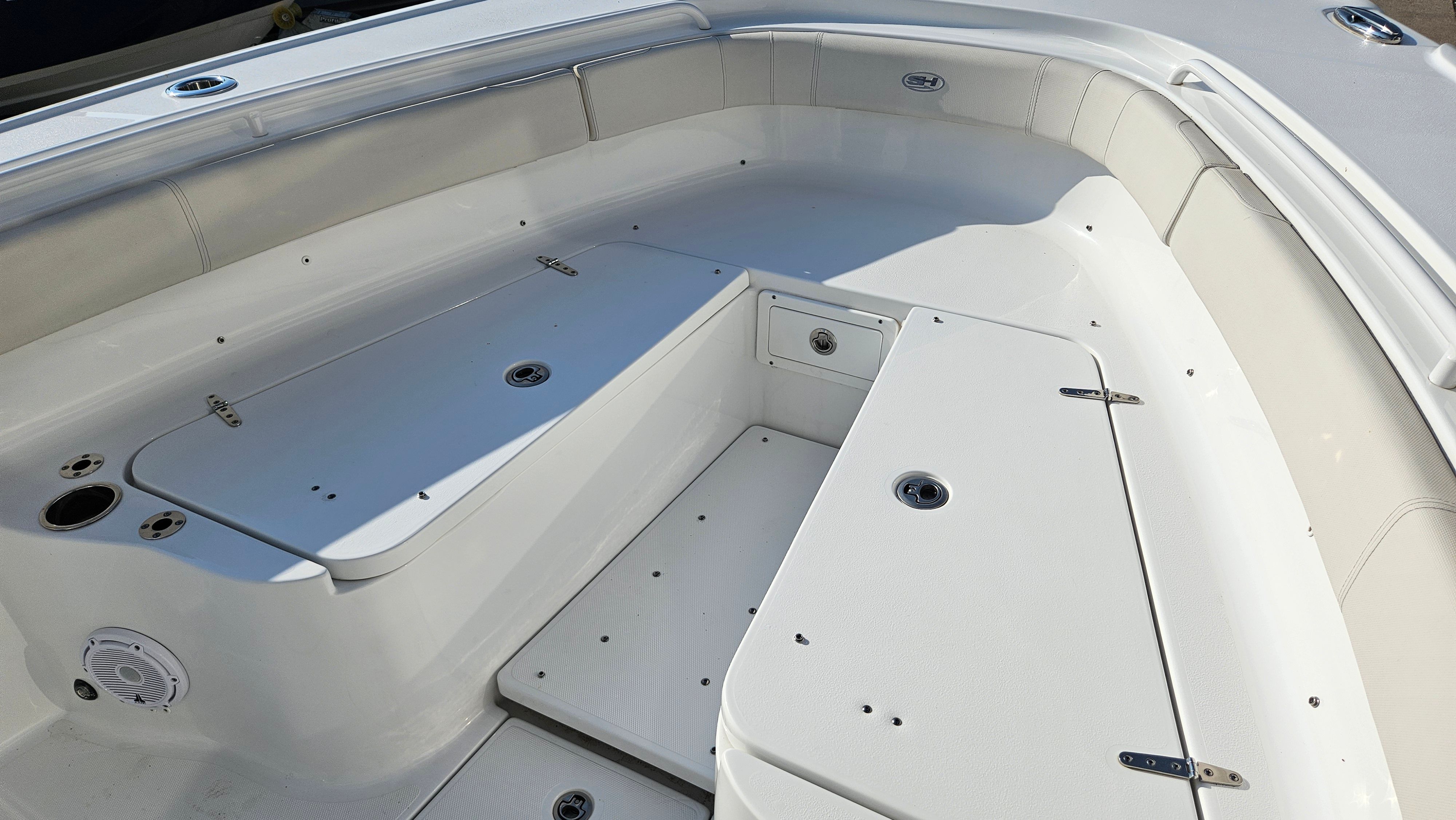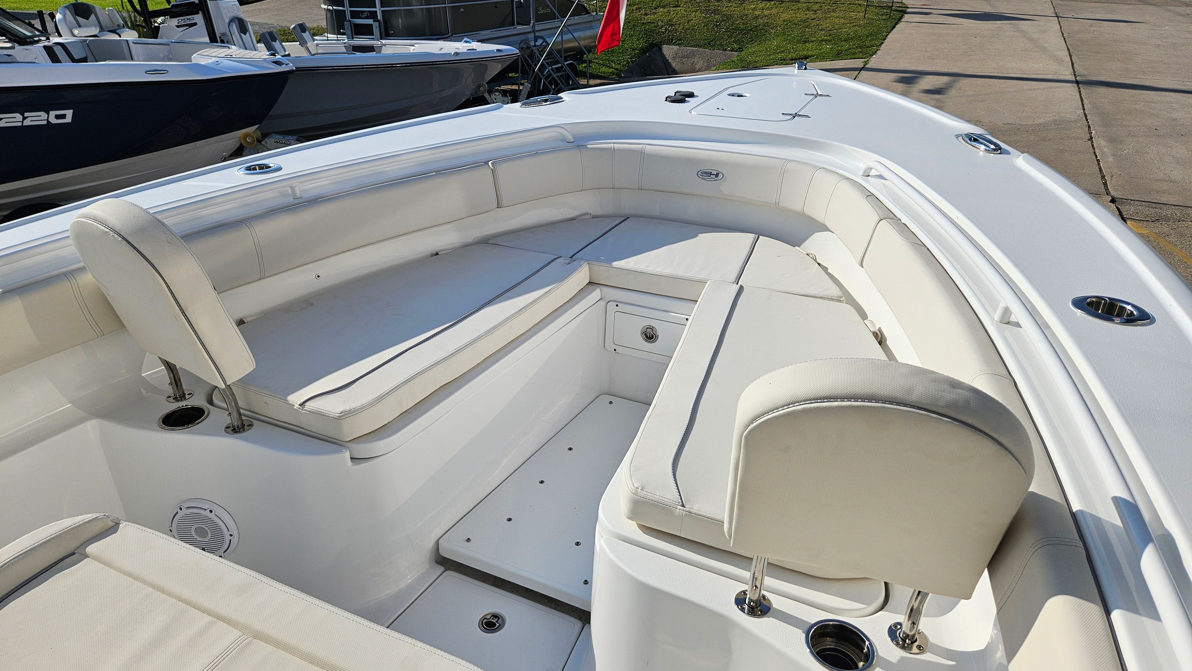 This Sea Hunt boat for sale is as practical as it is fun. The aluminum triple axle trailer makes transporting the boat simple and secure, giving you the freedom to explore new waters and fishing grounds. The Optimus 360 Joystick and Auto Pilot systems take the stress out of docking and maneuvering, allowing even novice boaters to handle the vessel with confidence. The fuel-efficient Yamaha engines help keep operating costs down, while the head provides convenience for longer trips offshore.Storage is thoughtfully integrated throughout the boat, making it easy to stow gear, tackle, and personal items. The robust construction and quality materials ensure durability and low maintenance, so you can spend more time enjoying the water and less time worrying about upkeep.