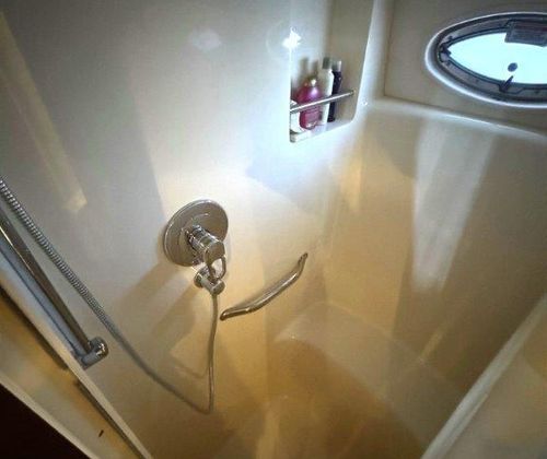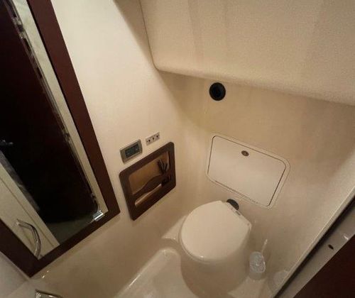 Inside, enjoy a spacious full-beam Master Suite with a walk-around queen bed, split head and shower, and generous storage. The Guest Stateroom offers twin beds and its own separate shower and head — ideal for family or guests.
