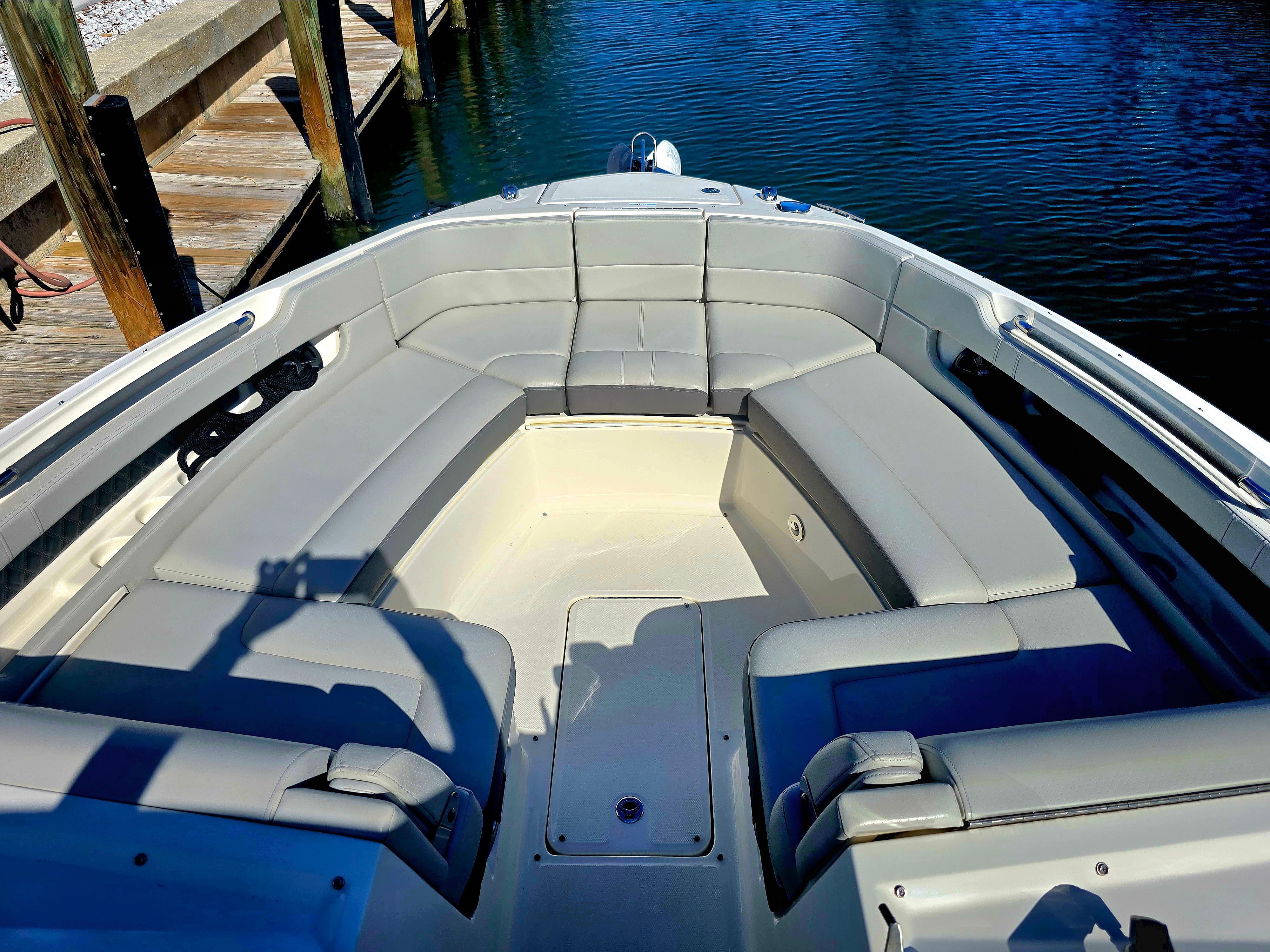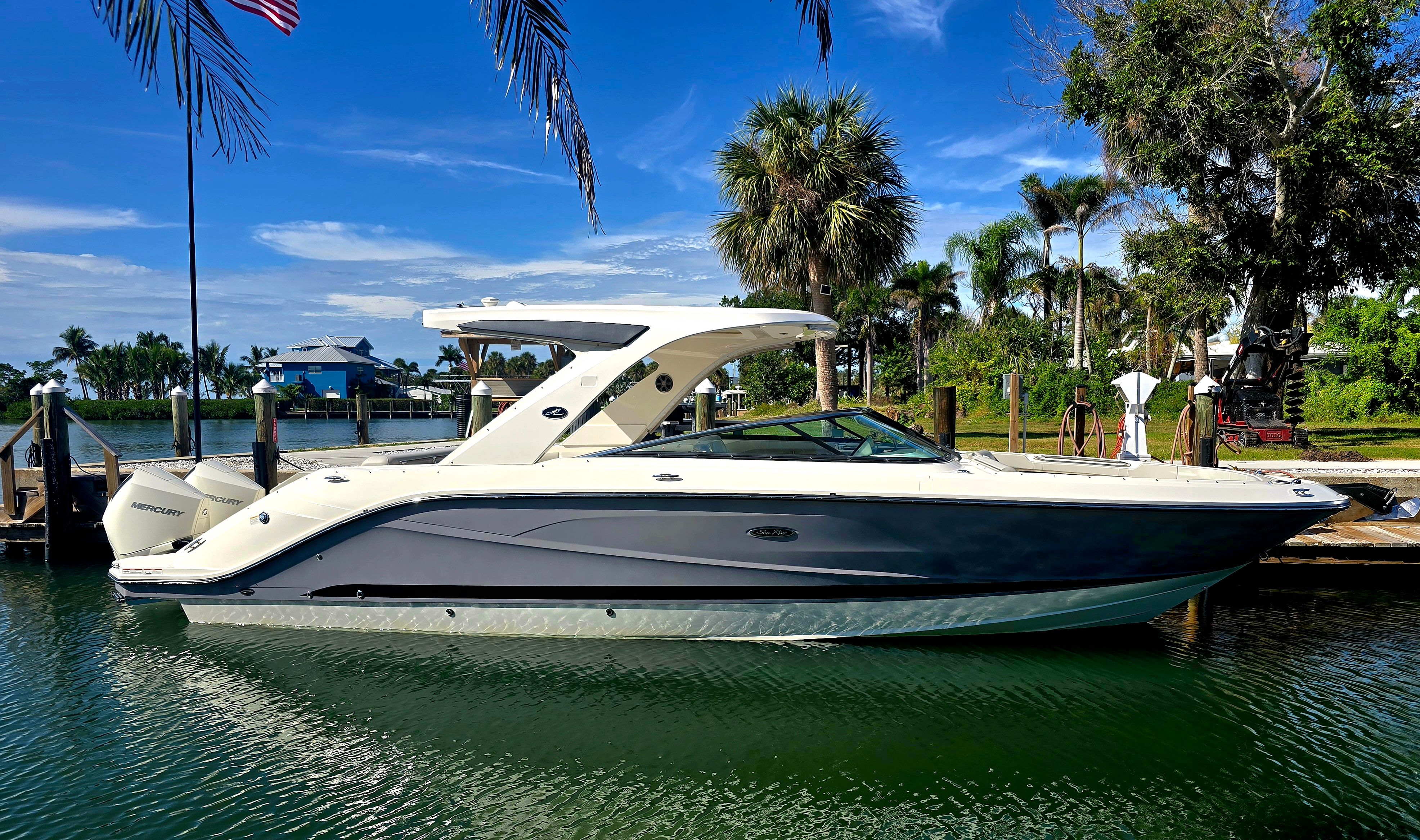 The 2021 Sea Ray SLX 310 stands out as a 31-foot bowrider that delivers both style and substance. Its sleek profile, modern lines, and spacious layout make it a head-turner at any marina or dock. With a length of 31 feet, this bowrider provides ample space for family, friends, and guests, ensuring everyone enjoys the ride in comfort and style. The used condition of this Sea Ray boat for sale means you can enjoy all the benefits of a high-end vessel at a more accessible price point, without compromising on quality or performance.