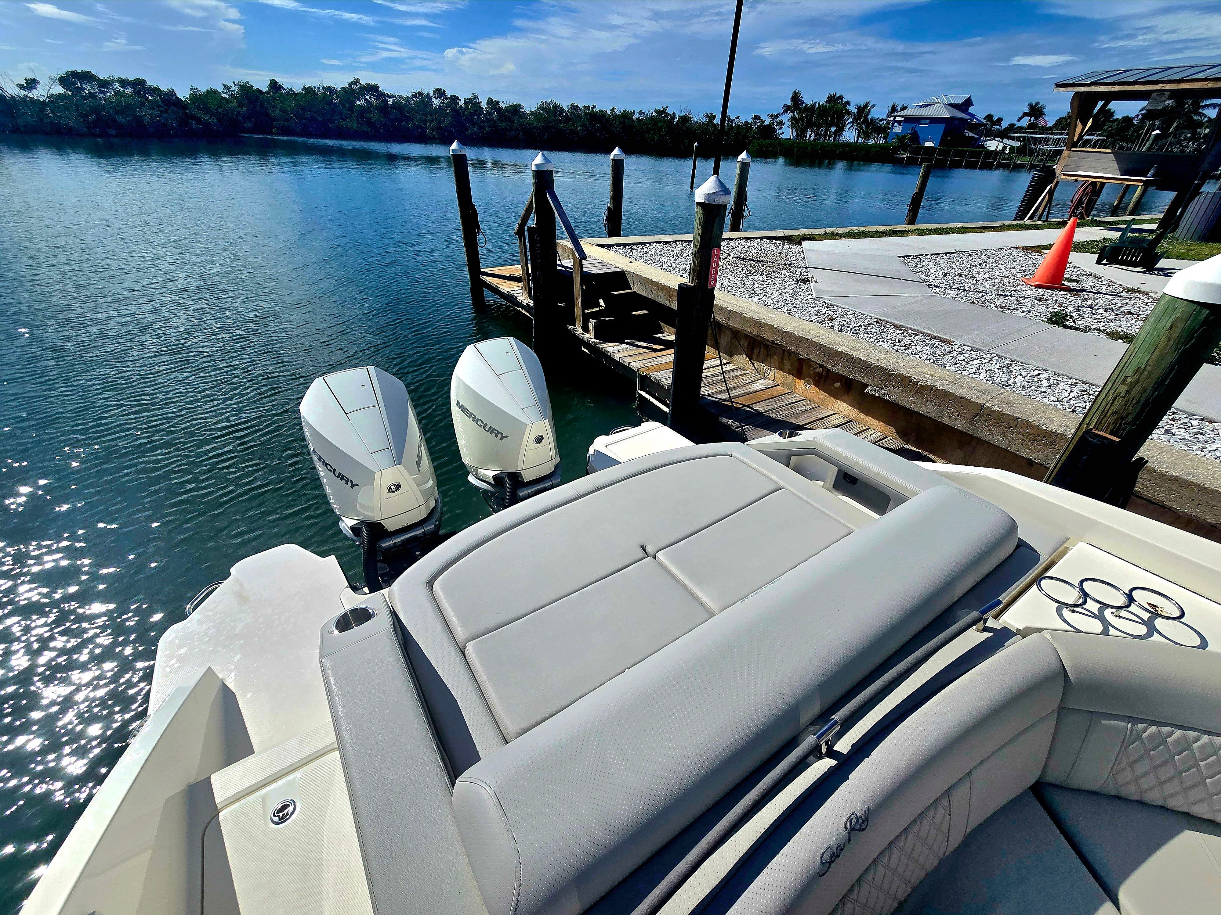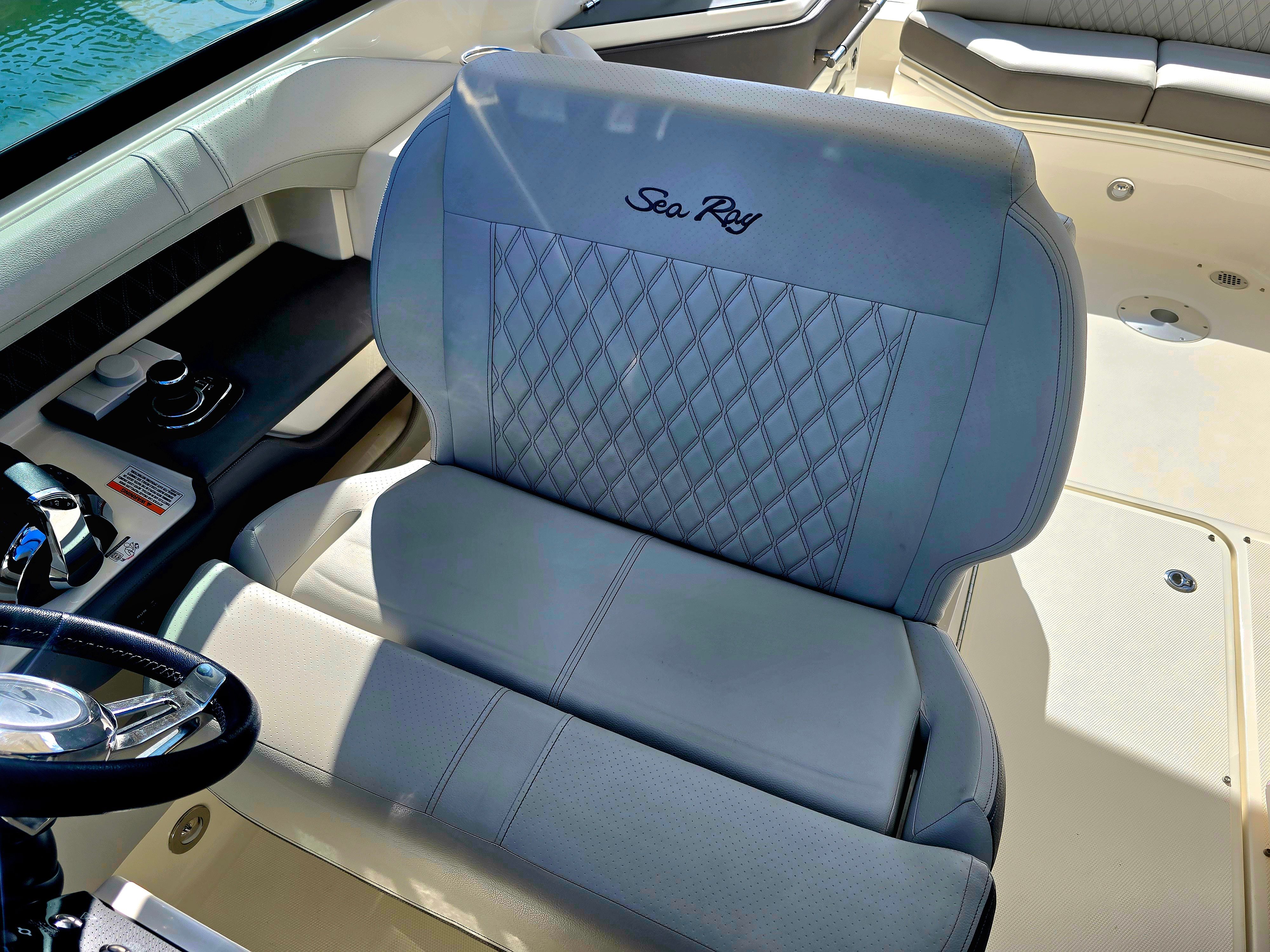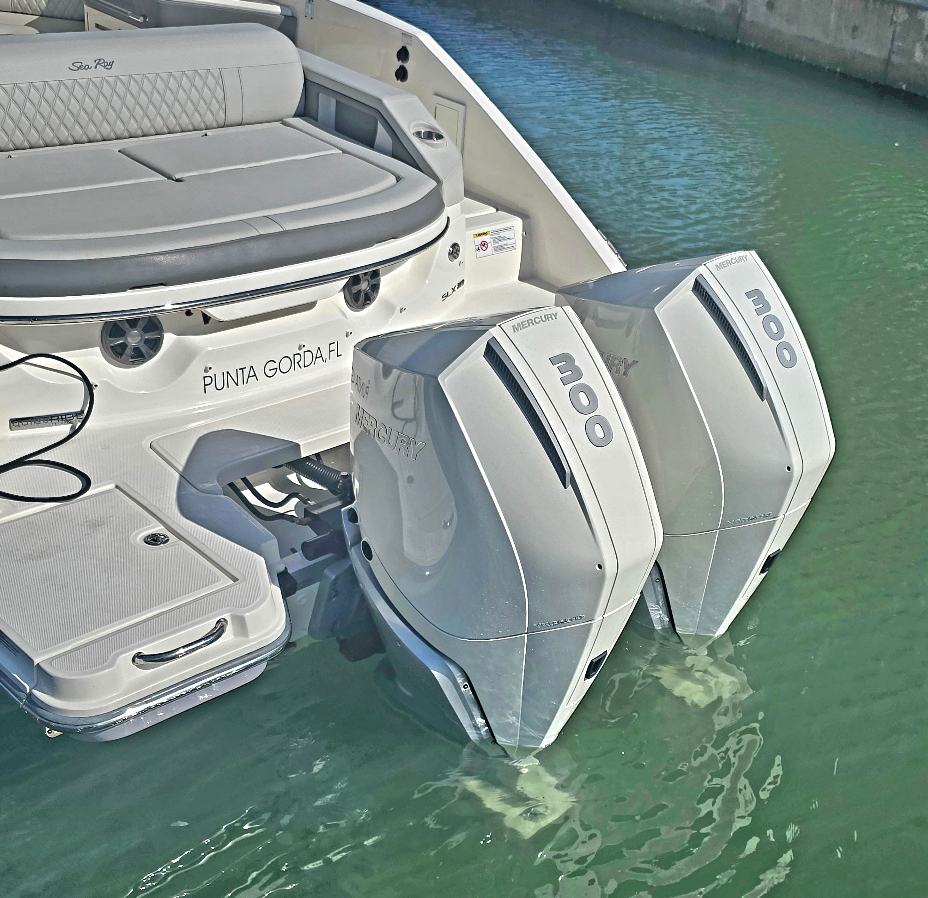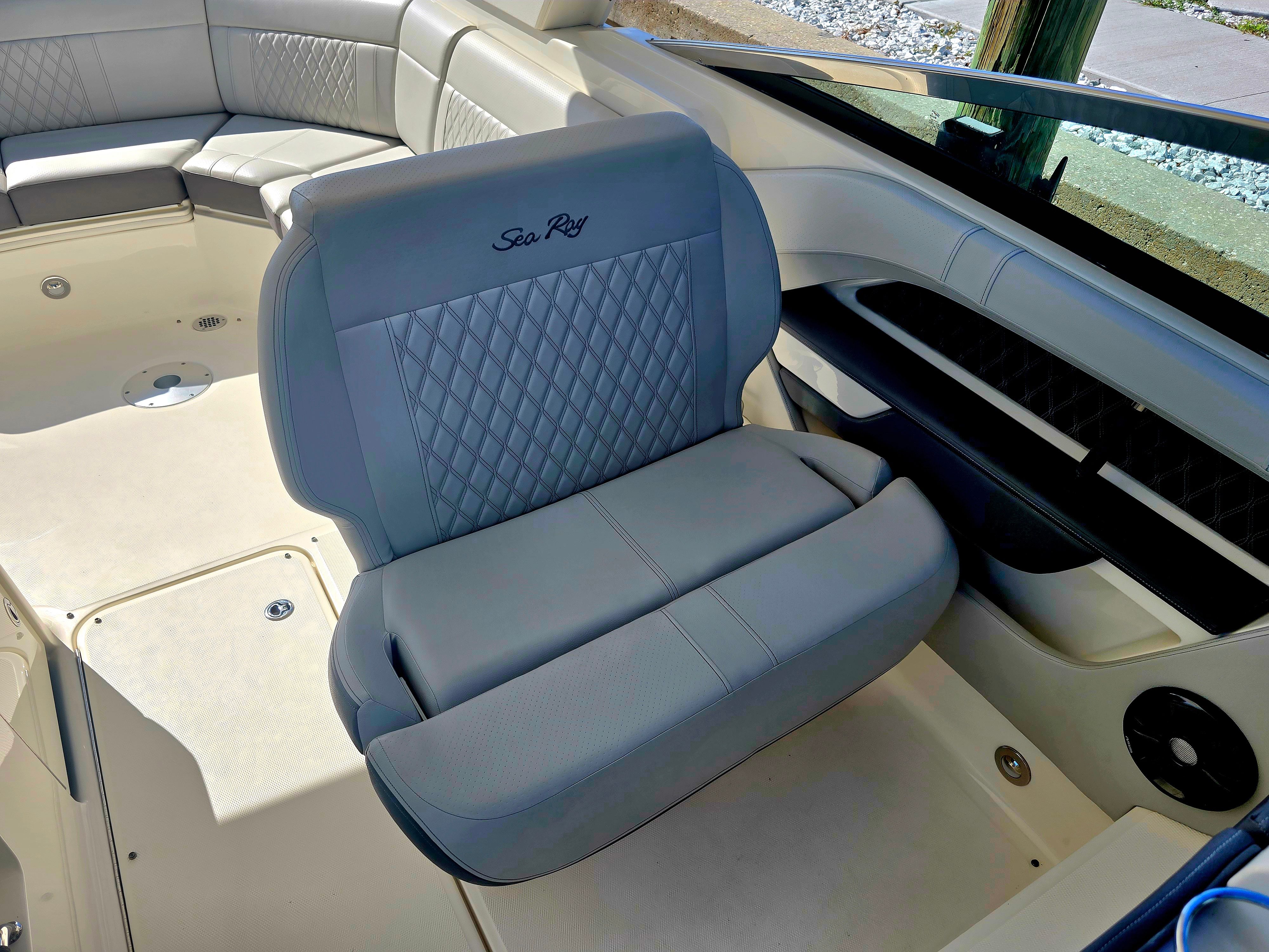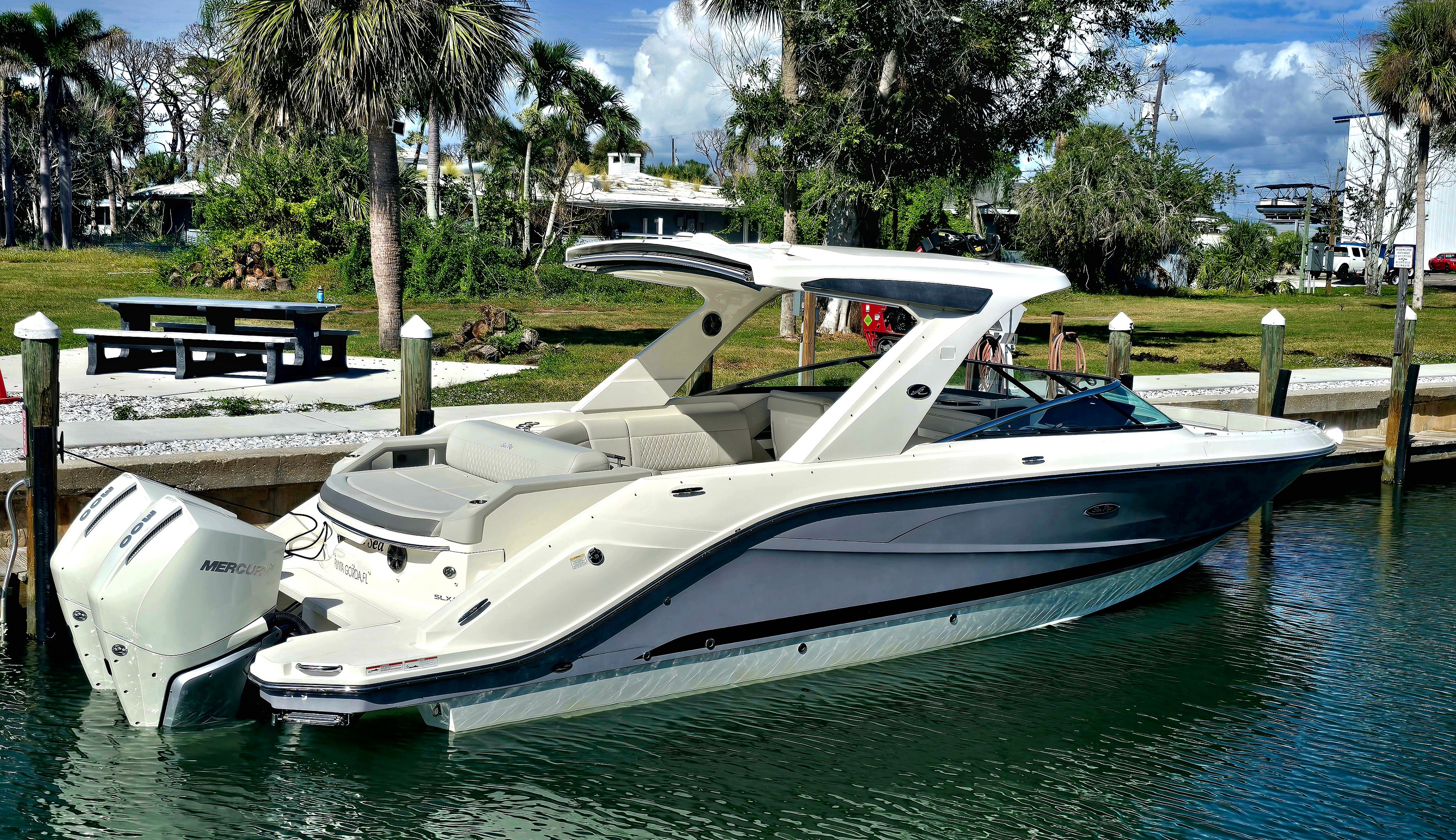 The Sea Ray SLX 310 is designed with practicality in mind, making ownership both enjoyable and convenient. The ample storage space allows you to bring along all your gear, from water toys to picnic supplies, without feeling cramped or cluttered. The boat’s manageable size and responsive handling make docking and maneuvering a breeze, even in tight spaces.Fuel efficiency is another key benefit, thanks to the advanced engineering of the twin engines. You can spend more time on the water and less time at the fuel dock, maximizing your boating adventures. The thoughtful layout and easy access to all areas of the boat make it simple to clean, maintain, and prepare for your next outing.