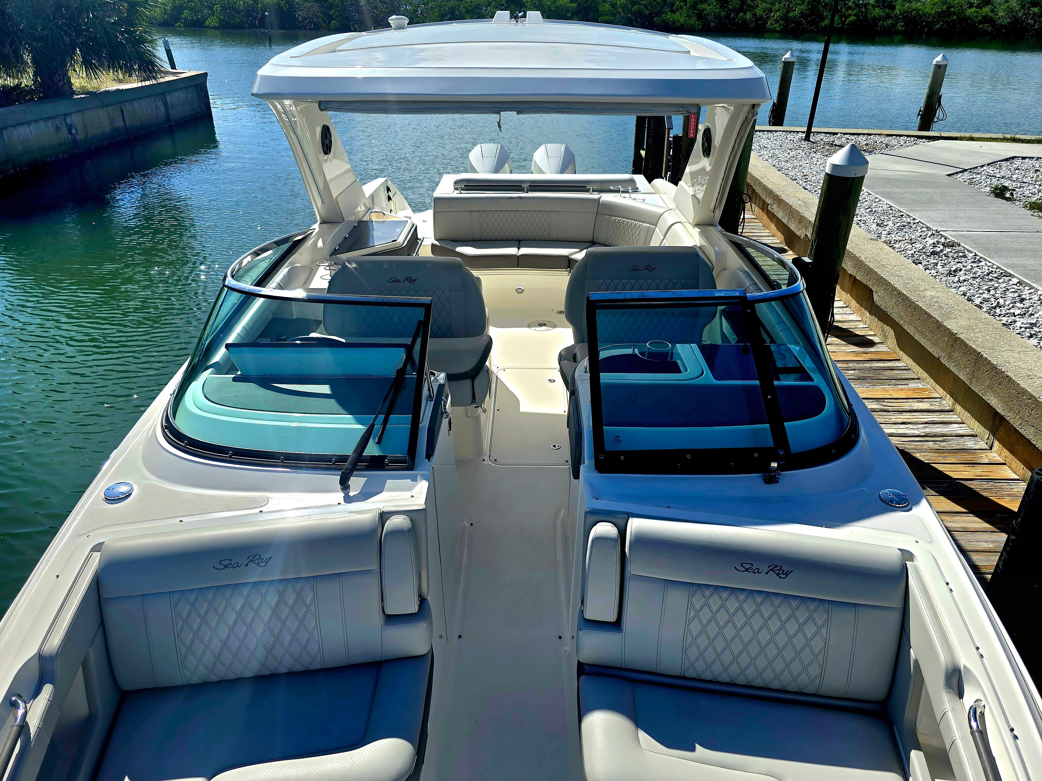 In summary, the 2021 Sea Ray SLX 310 is a standout bowrider boat for sale that combines luxury, performance, and versatility in one impressive package. With its powerful twin engines, spacious 31-foot layout, and premium construction, this used Sea Ray boat for sale offers an unbeatable value for those seeking fun and adventure on the water. Whether you are looking to entertain, explore, or simply relax, the SLX 310 delivers an exceptional boating experience.Do not miss your chance to own this remarkable Sea Ray SLX 310. Contact the dealer today to learn more about this incredible bowrider and start making memories on the water.