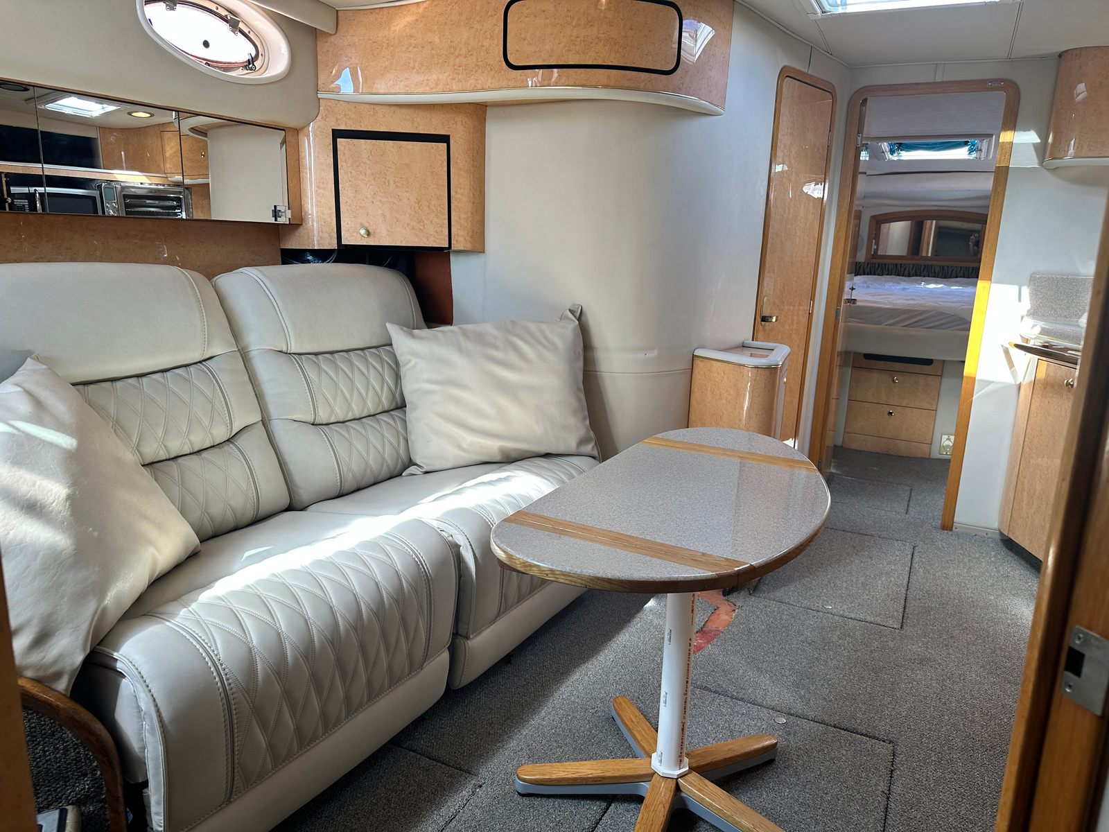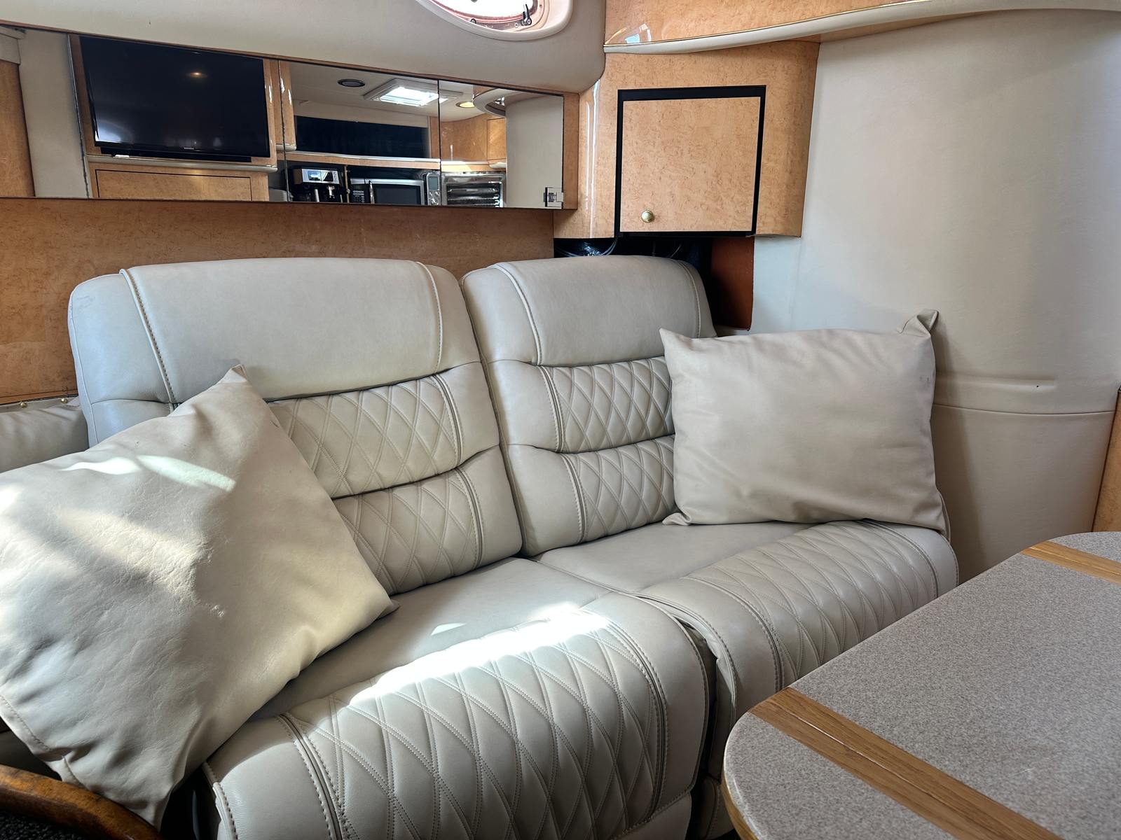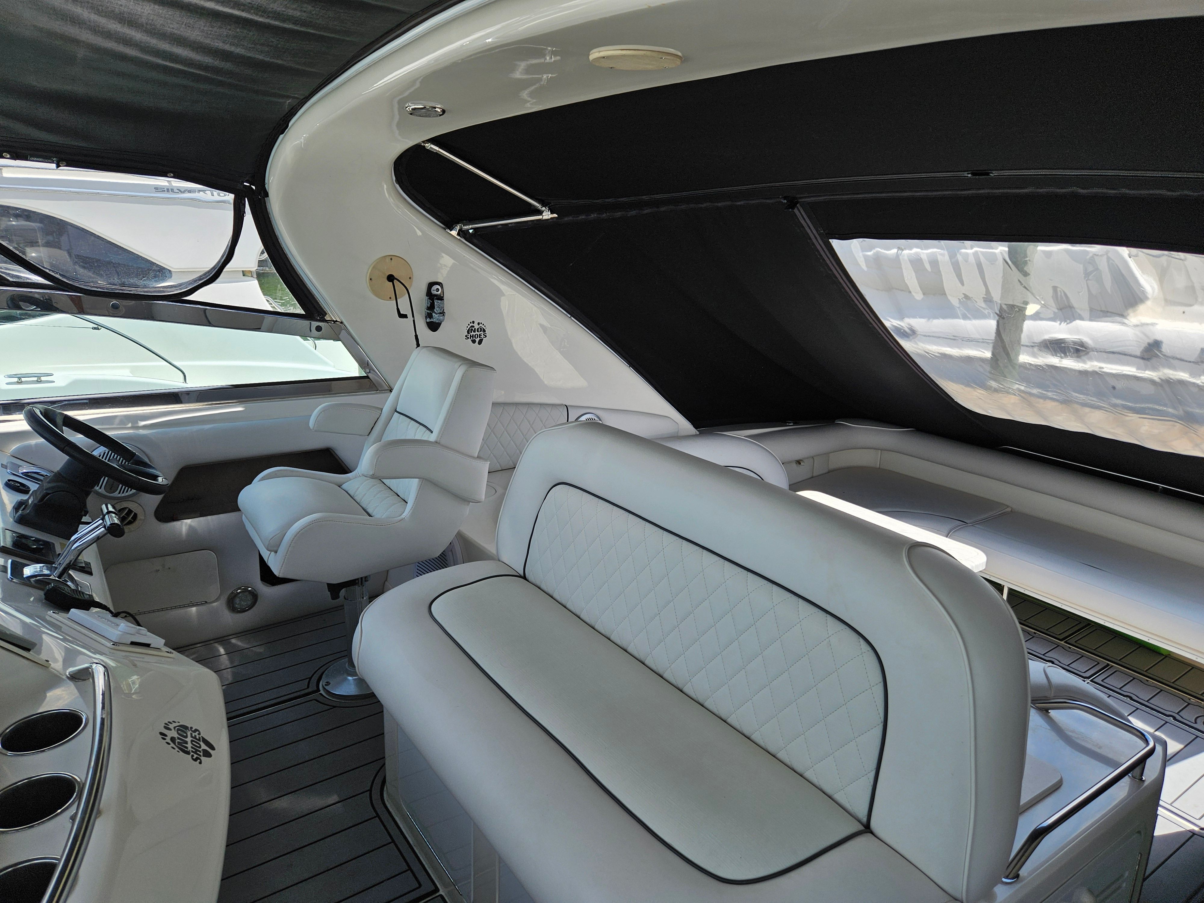 This cruiser boat for sale is designed with practicality in mind. Its generous length provides plenty of storage options for gear, supplies, and personal items, making it easy to stay organized during longer trips. The twin-engine configuration not only enhances performance but also simplifies docking and maneuvering, giving you confidence in any marina or harbor. Fuel efficiency is another key advantage, allowing you to enjoy extended outings without frequent stops for refueling. The Sundancer 450’s thoughtful layout and reliable systems make ownership hassle-free, so you can focus on enjoying your time on the water.