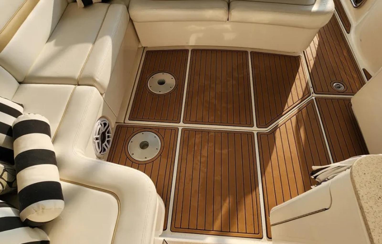 Powered by twin Cummins QSB 480 diesel engines with pod drives, this Sundancer delivers confident performance and remarkable joystick maneuverability, especially in tight spaces or while docking. Both pods have been recently serviced. The engines have approximately 800 hours, and the 15kW Onan generator has around 600 hours, with recent service completed. The boat has also been buffed and waxed on all fiberglass surfaces.