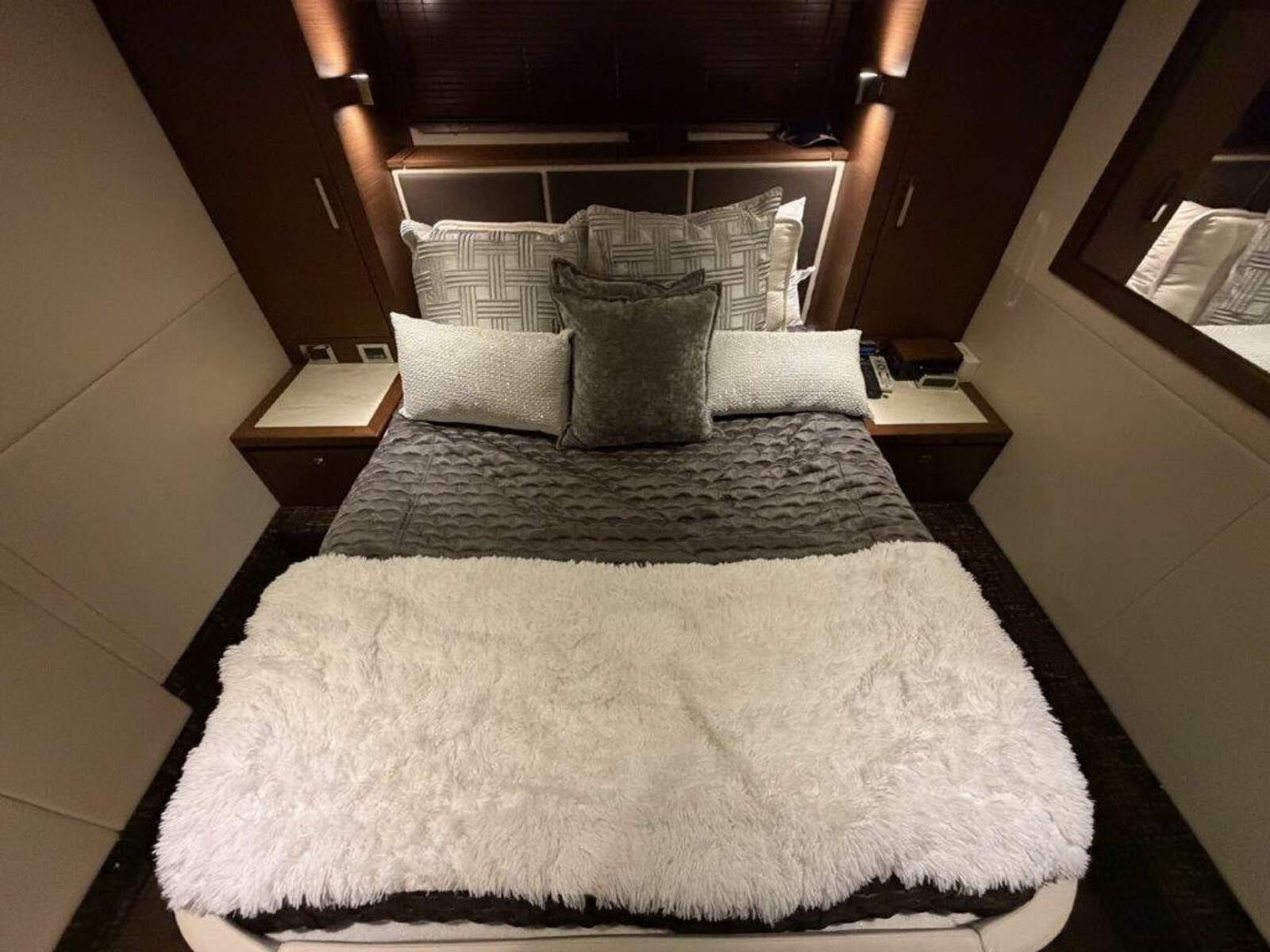 “Livin Da Lyfe” is powered by upgraded Cummins QSC 8.3 HO inboard engines (600HP each) with just 270 hours, fully serviced and showing exceptionally well. The 11.5kW Onan generator has only 507 hours and operates flawlessly. Every system aboard has been maintained with precision, ensuring she is turn-key and ready for the most discerning owner.