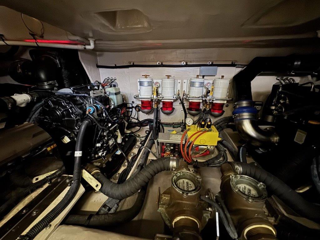 Powered by upgraded Cummins QSM11 Zeus Drives with 940 hours, delivering 715HP, this Sundancer makes cruising smooth and stress-free with joystick control and Skyhook positioning. The 21.5kW Onan generator (1,480 hours) runs quietly and reliably, keeping everything powered while underway or at anchor. All service records are available to qualified buyers.