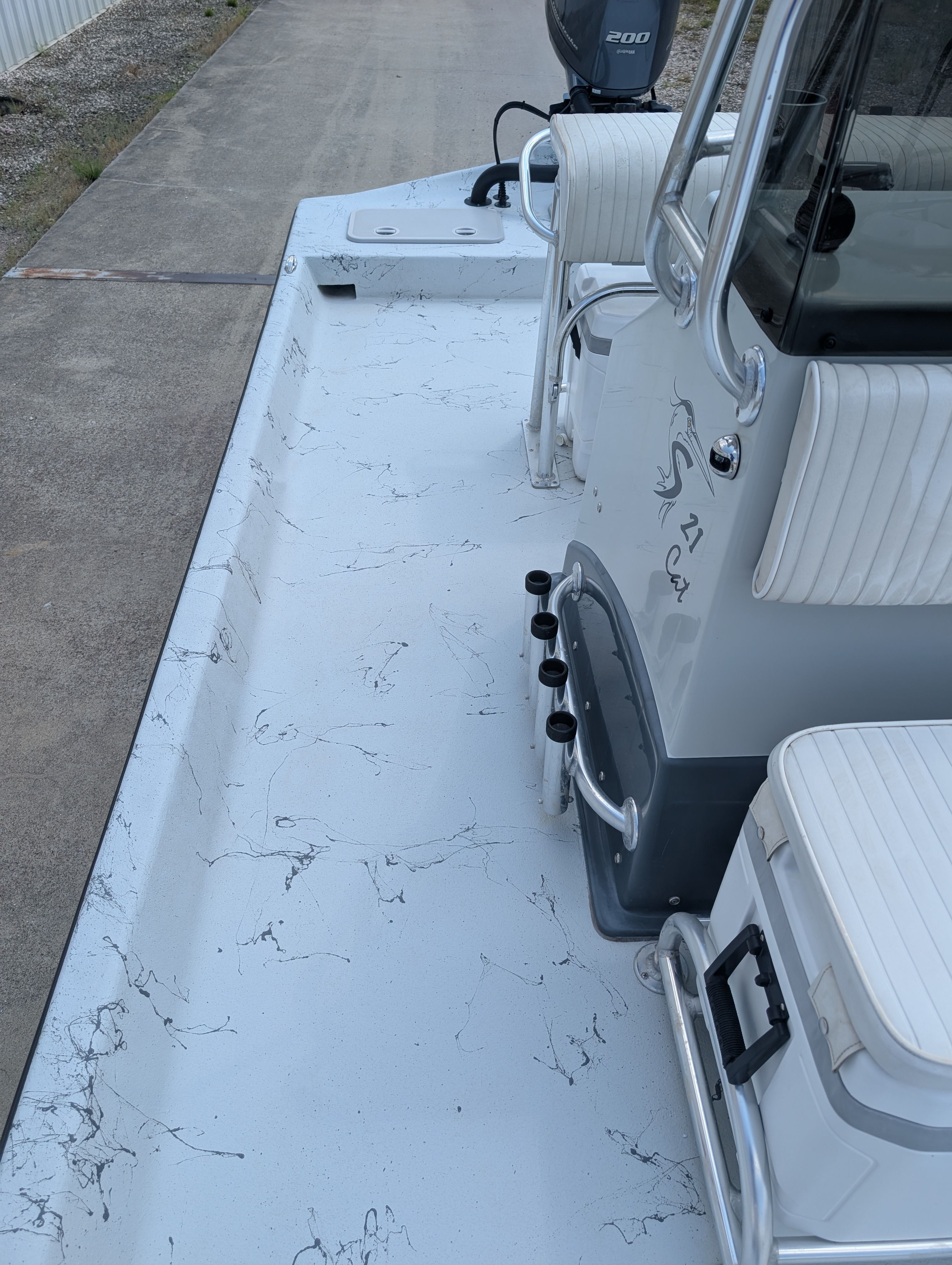 The Shoalwater 21 Cat is packed with features that cater to both serious anglers and recreational boaters. Its spacious deck layout provides ample room for casting, relaxing, or socializing, while the catamaran hull ensures a smooth and dry ride even in choppy conditions. The boat’s 21-foot length strikes a perfect balance between maneuverability and comfort, making it easy to navigate tight spots without sacrificing space for gear or guests. With a robust 200-horsepower engine, you’ll have the power to get where you want to go quickly and efficiently.