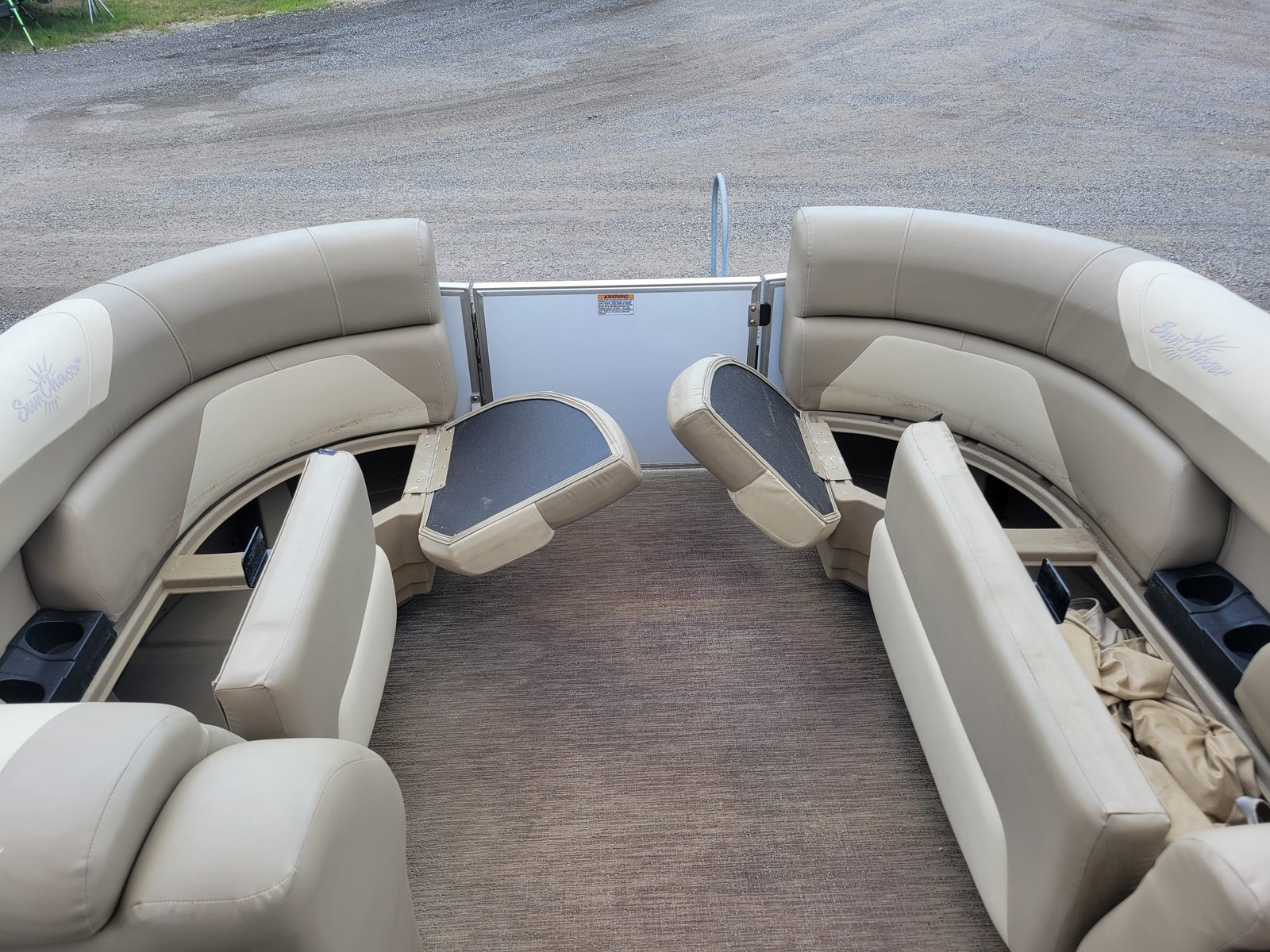 The Smoker Craft 22 Geneva comes equipped with a range of features designed to enhance your time on the water. Its spacious deck layout provides plenty of room for guests to move around comfortably, making it ideal for social gatherings and family outings. The pontoon’s thoughtful design includes ample seating, sturdy railings, and a user-friendly helm, ensuring both safety and convenience. The 22-foot length offers a stable and smooth ride, while the durable construction reflects Smoker Craft’s commitment to quality and reliability.As a used pontoon boat, this model has been cared for and maintained, allowing you to enjoy all the benefits of a premium vessel without the premium price tag. The 2022 build year means you’ll benefit from modern styling, updated materials, and the latest advancements in pontoon technology. Whether you’re a seasoned boater or new to the water, the Smoker Craft 22 Geneva provides an accessible and enjoyable boating experience.