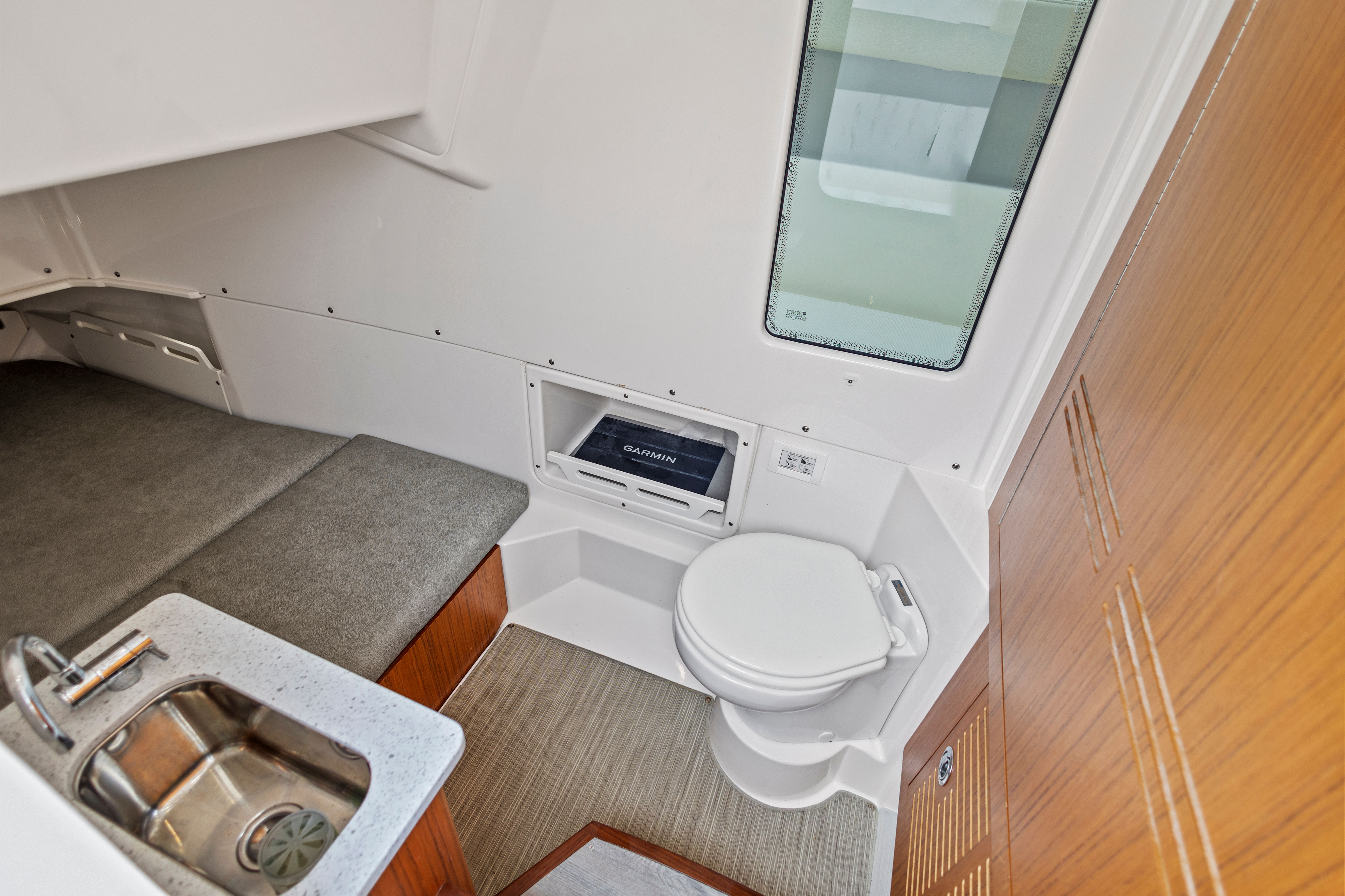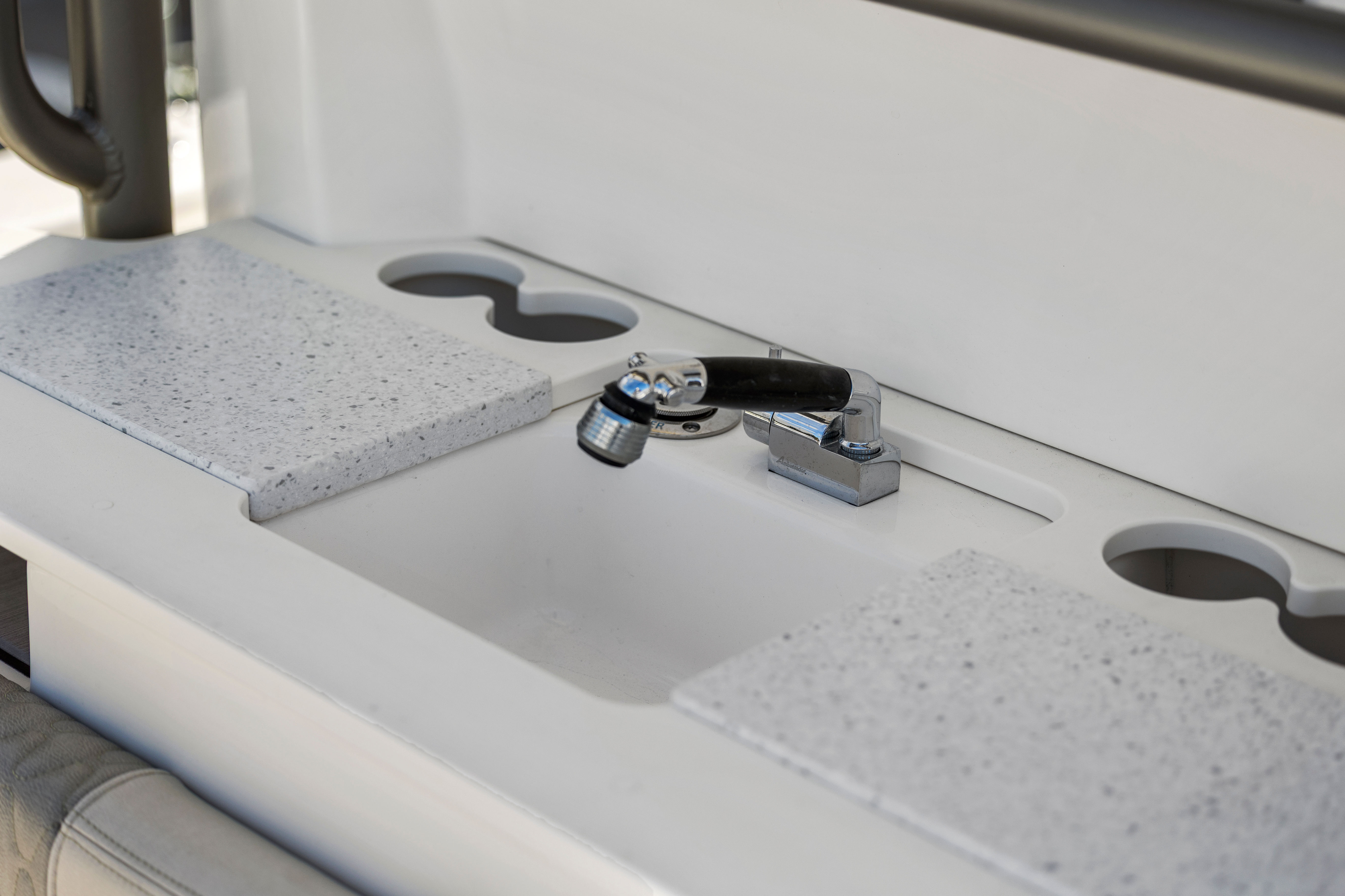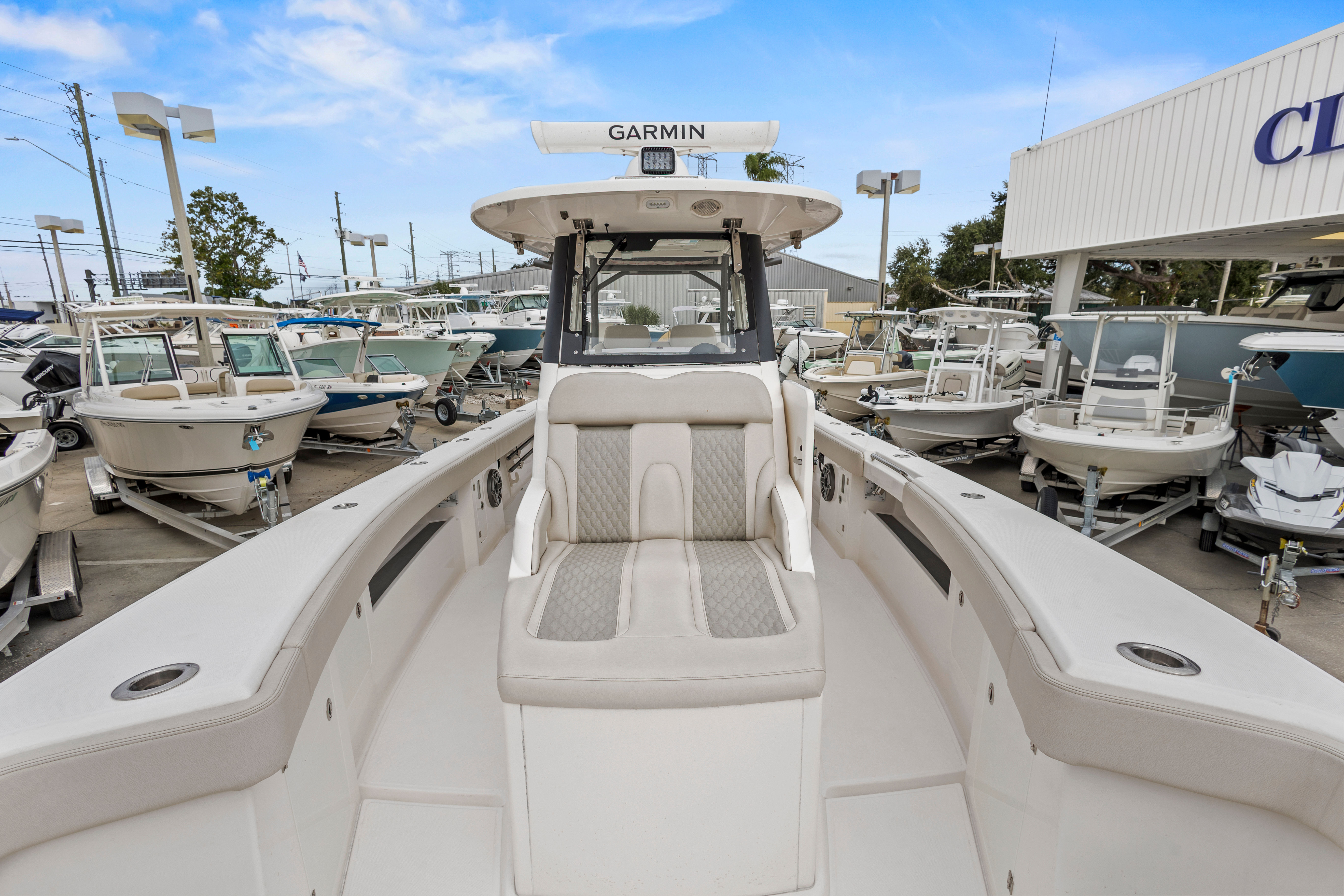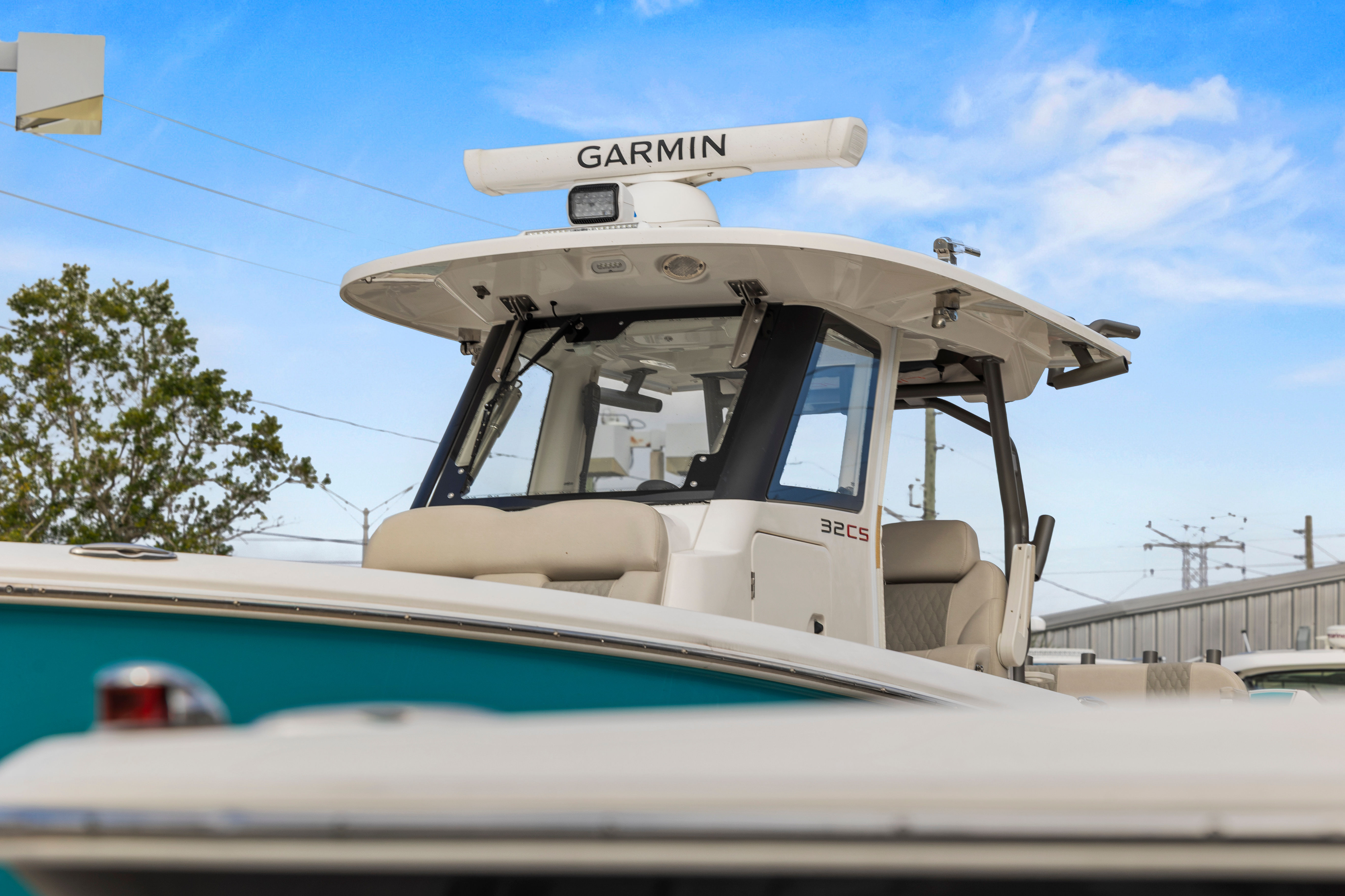 Powering the Solace 32 CS are twin engines, delivering a combined 600 horsepower. This robust setup ensures exhilarating acceleration, smooth cruising, and reliable performance in a variety of conditions. Whether you’re navigating coastal waters or heading offshore for a day of fishing, the 32 CS responds with agility and confidence. The low engine hours mean you’ll enjoy the benefits of near-new mechanical reliability, making this Center Console boat for sale a smart investment for years of worry-free boating.