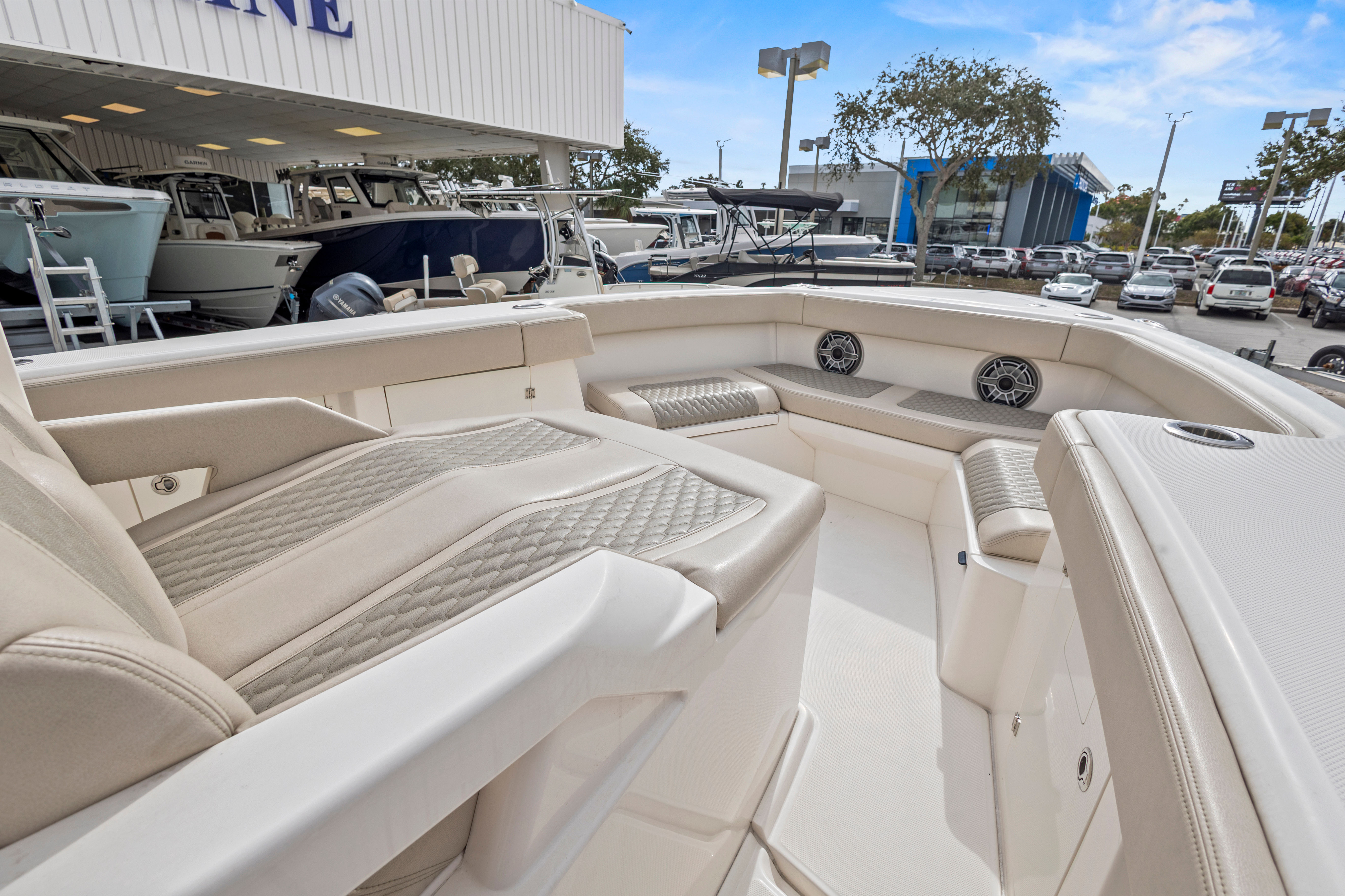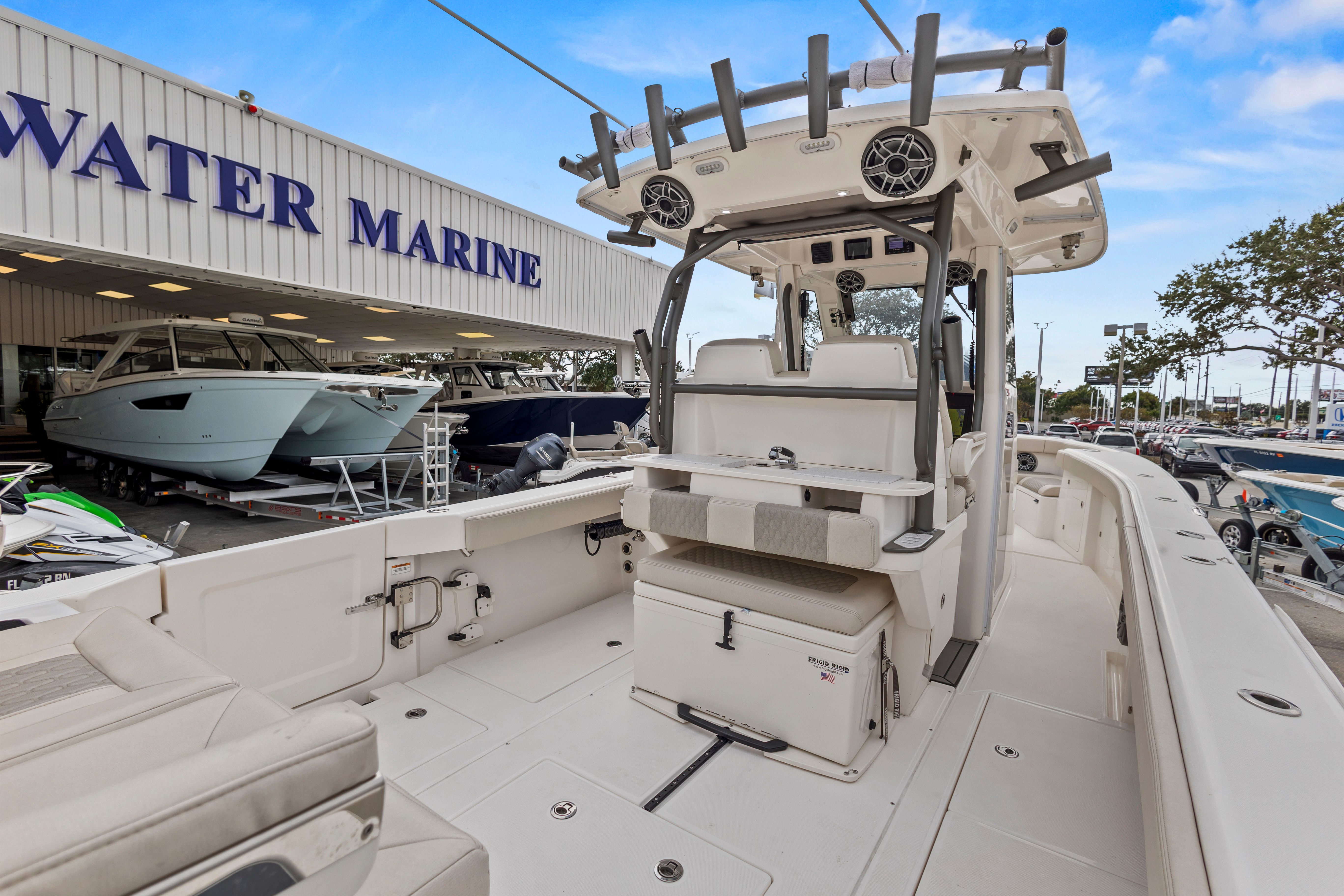 The Solace 32 CS is as practical as it is enjoyable. Its manageable length makes docking and storage straightforward, while the efficient twin-engine setup helps optimize fuel consumption for longer journeys. The Center Console configuration provides easy access to all areas of the boat, simplifying cleaning and maintenance. Whether you’re storing fishing gear, water toys, or picnic supplies, the spacious layout accommodates your needs with ease. This Center Console boat for sale is designed to make ownership hassle-free, so you can spend more time enjoying the water and less time worrying about logistics.