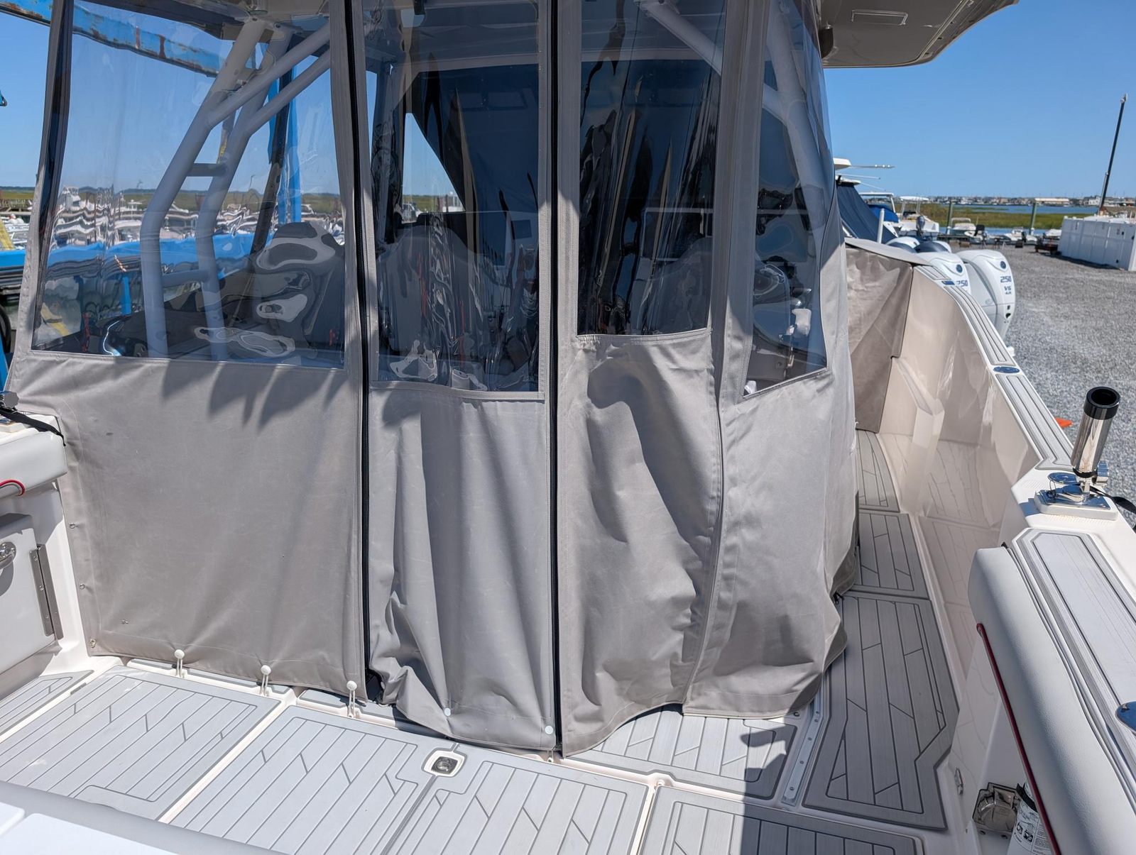 Powering the Solara S-310 CW are two high-performance engines, delivering a combined 500 horsepower. With only 275 engine hours, these motors offer plenty of life and reliability for future adventures. The twin-engine setup ensures smooth acceleration, responsive handling, and impressive speed, making it easy to navigate open waters or cruise along the coastline. Whether you’re chasing the horizon or heading to your favorite fishing spot, the Solara S-310 CW’s powerful engines provide the confidence and capability you need.