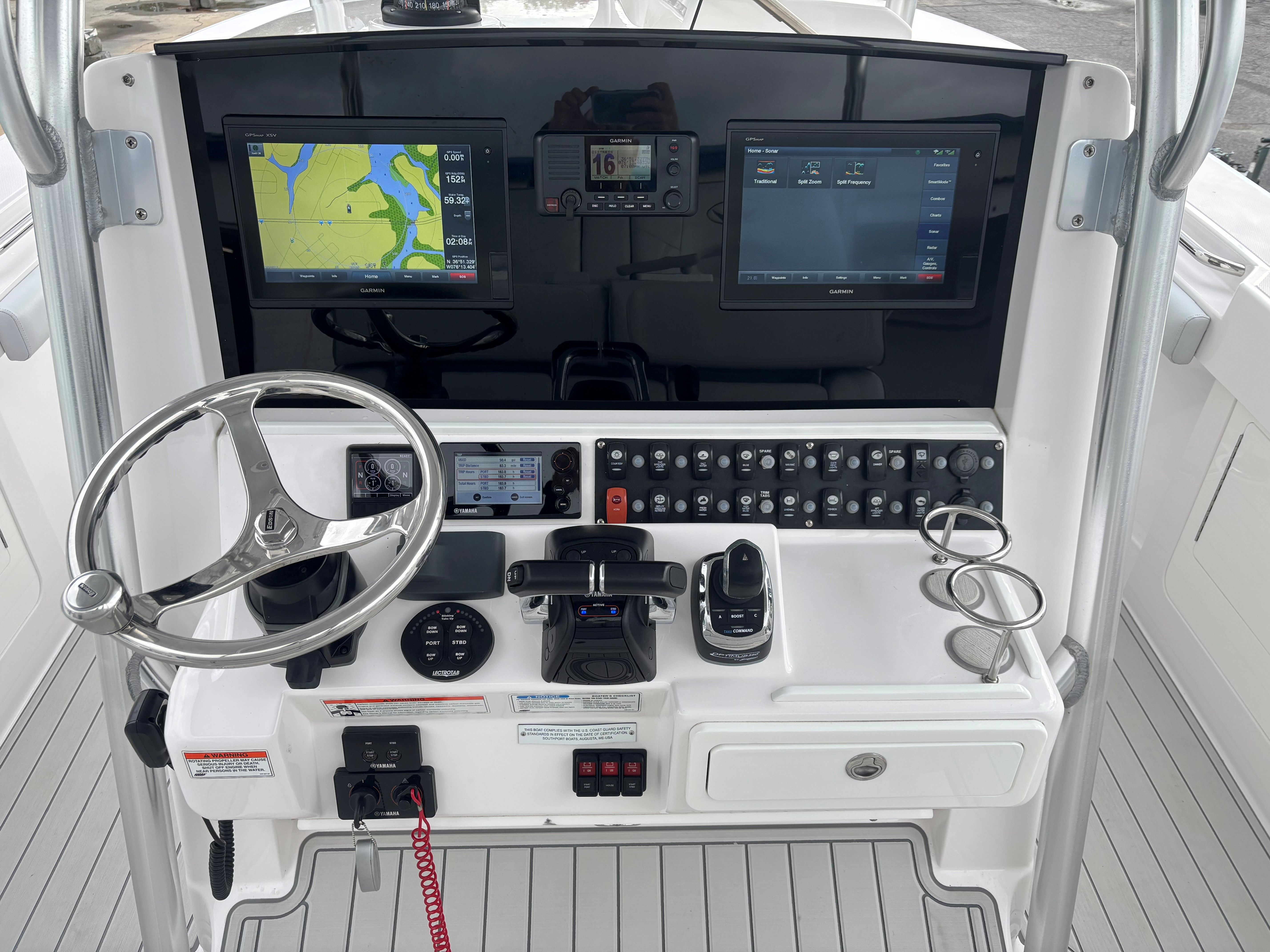 The 2018 Southport 29 FE is a 29-foot Center Console boat that exemplifies the renowned craftsmanship and innovation of Southport. With its sleek lines and robust build, this used Southport boat for sale offers both style and substance. The spacious deck layout is thoughtfully designed to maximize comfort and utility, making it ideal for a variety of activities, from fishing expeditions to leisurely cruises. Its impressive length provides ample space for guests, gear, and relaxation, ensuring every outing is enjoyable and memorable.
