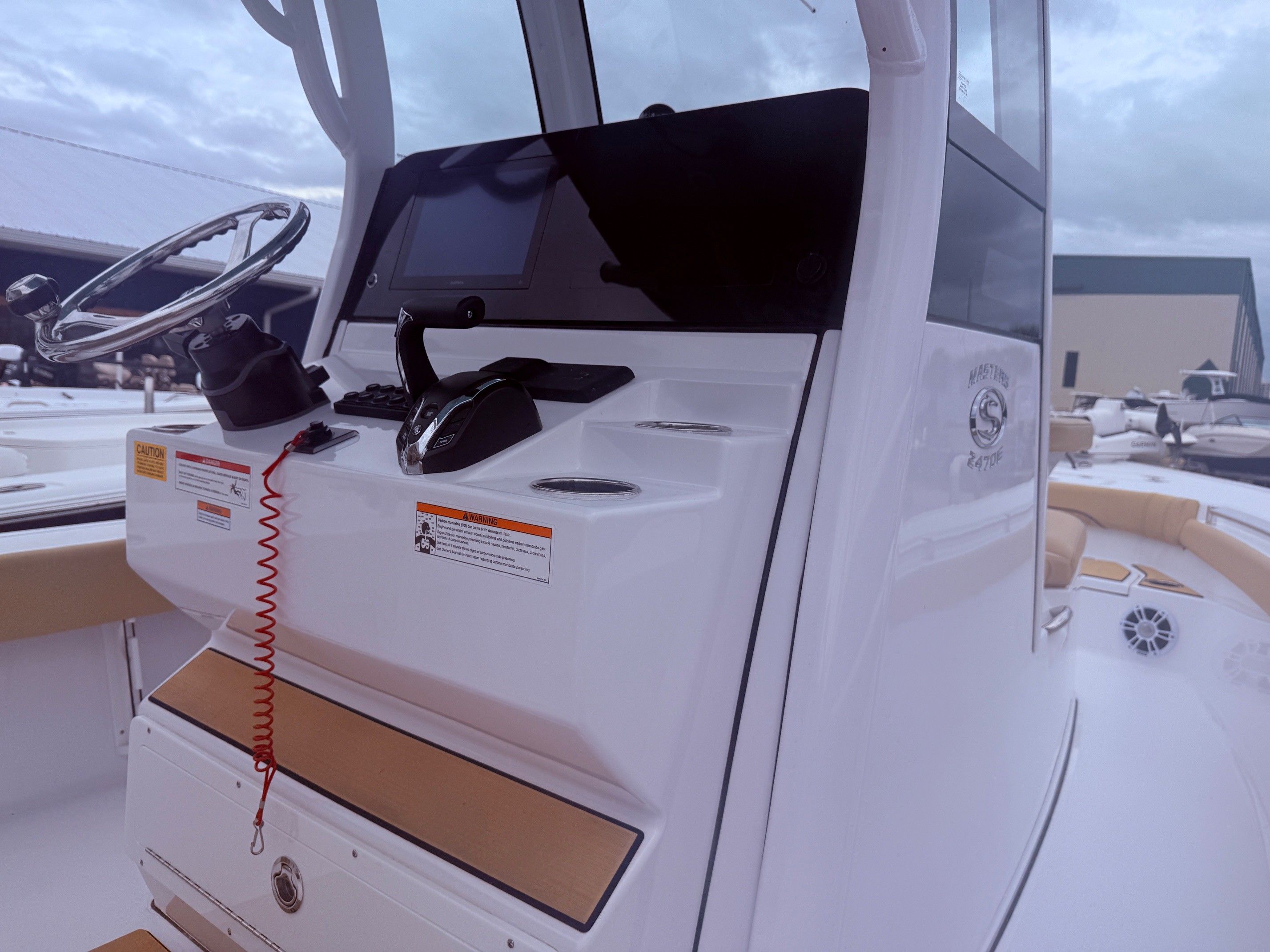 The 2024 Sportsman Masters 247 OE is a 24-foot Center Console boat that embodies the spirit of coastal adventure. With its sleek lines and modern profile, this vessel stands out at the marina and on the water. As a lightly used model with only 30 engine hours, it offers the unique opportunity to own a nearly new boat at a pre-owned price. The Masters 247 OE is renowned for its robust construction, spacious layout, and attention to detail, making it a top choice among Center Console boats for sale.