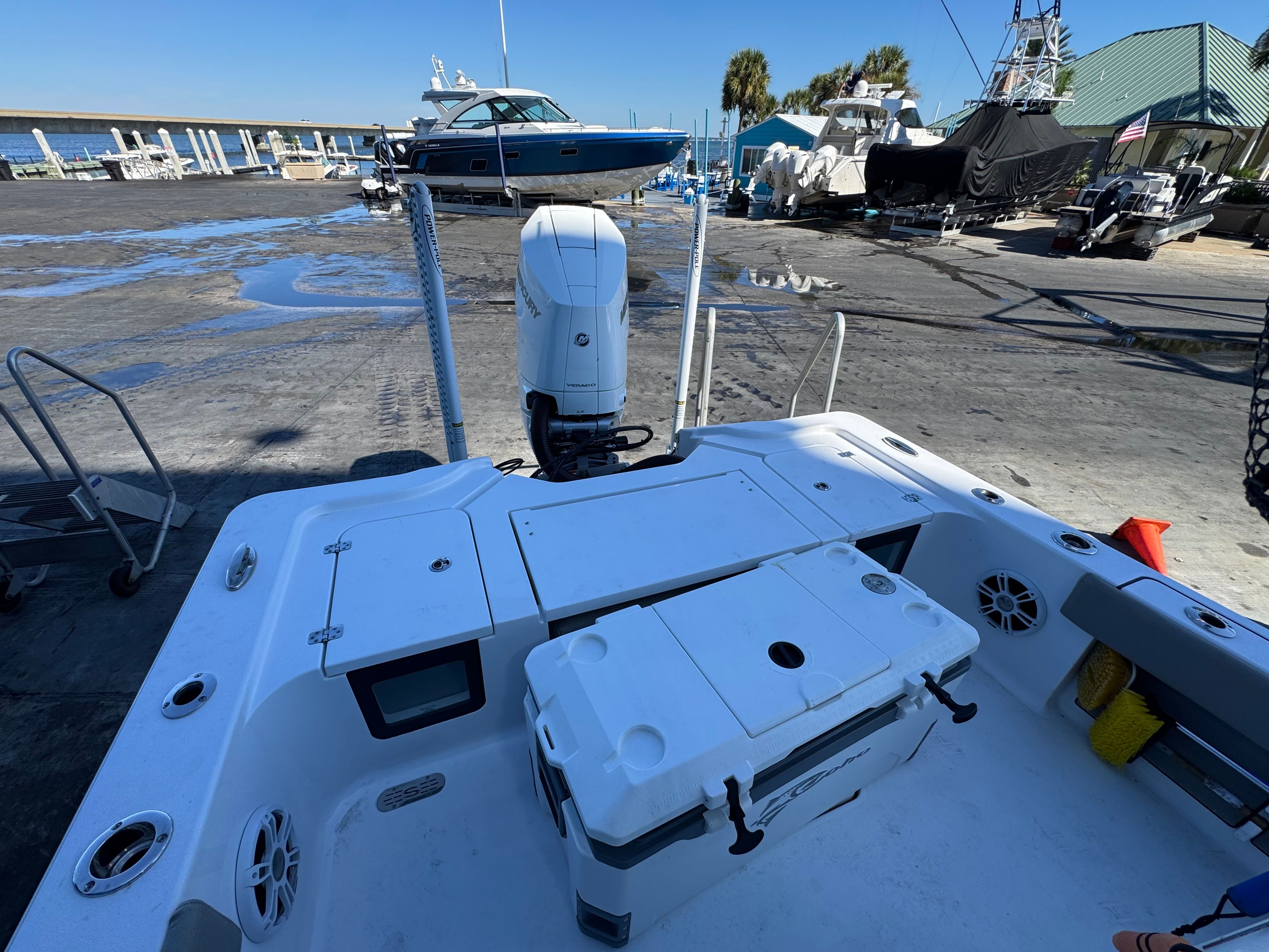 The Sportsman Masters 267 OE is designed with the needs of modern boaters in mind. Its Center Console layout offers unobstructed access around the deck, making it easy to move from bow to stern. The spacious cockpit provides plenty of room for fishing, entertaining, or relaxing with friends and family. The boat’s 26-foot length ensures stability and comfort, even in choppy conditions, while the ergonomic helm station puts all controls within easy reach for the captain.Special features of the Masters 267 OE enhance its appeal, providing added convenience and enjoyment on the water. The thoughtful design includes ample storage options for gear and personal items, ensuring a clutter-free environment. The Center Console configuration is perfect for anglers, offering easy access to all areas of the boat for casting and reeling in your catch. The boat’s layout also makes it ideal for social gatherings, with plenty of seating and open space for guests to relax and enjoy the scenery.