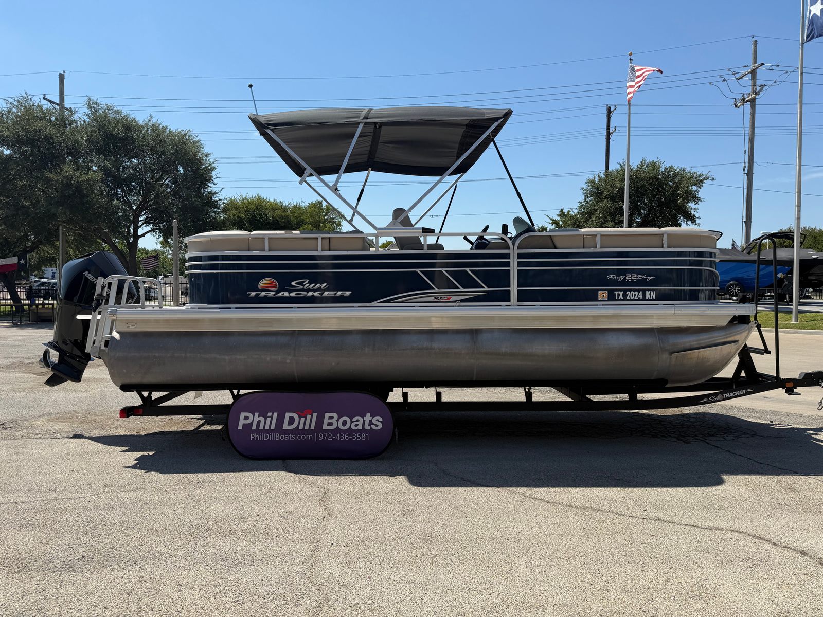 The 2022 Sun Tracker Party Barge 22RF XP3 is a 24.02-foot pontoon that offers ample space and a thoughtfully designed layout, making it ideal for entertaining family and friends. As a used pontoon boat, it has been crafted to provide years of enjoyment, combining the trusted quality of Sun Tracker with the innovative features of the Party Barge series. The generous length ensures plenty of room for passengers, gear, and activities, while the sturdy construction promises a smooth and stable ride every time you set out on the water.