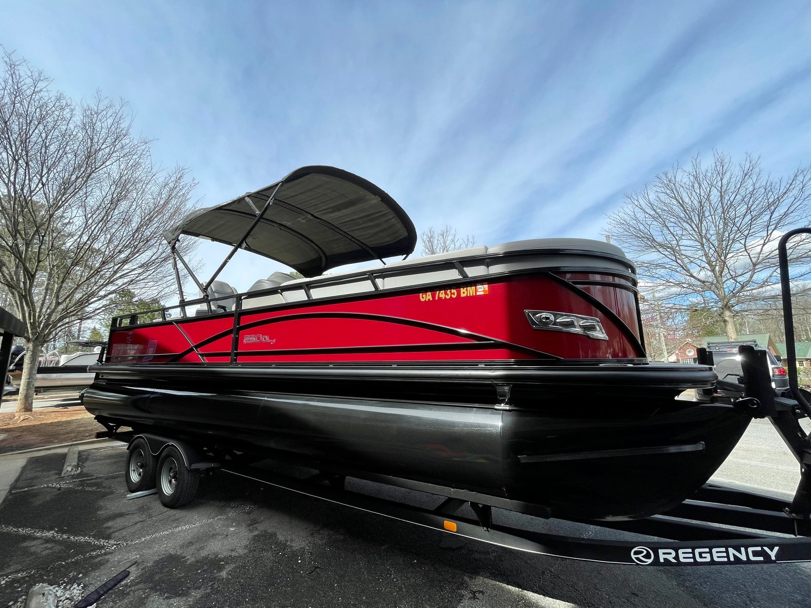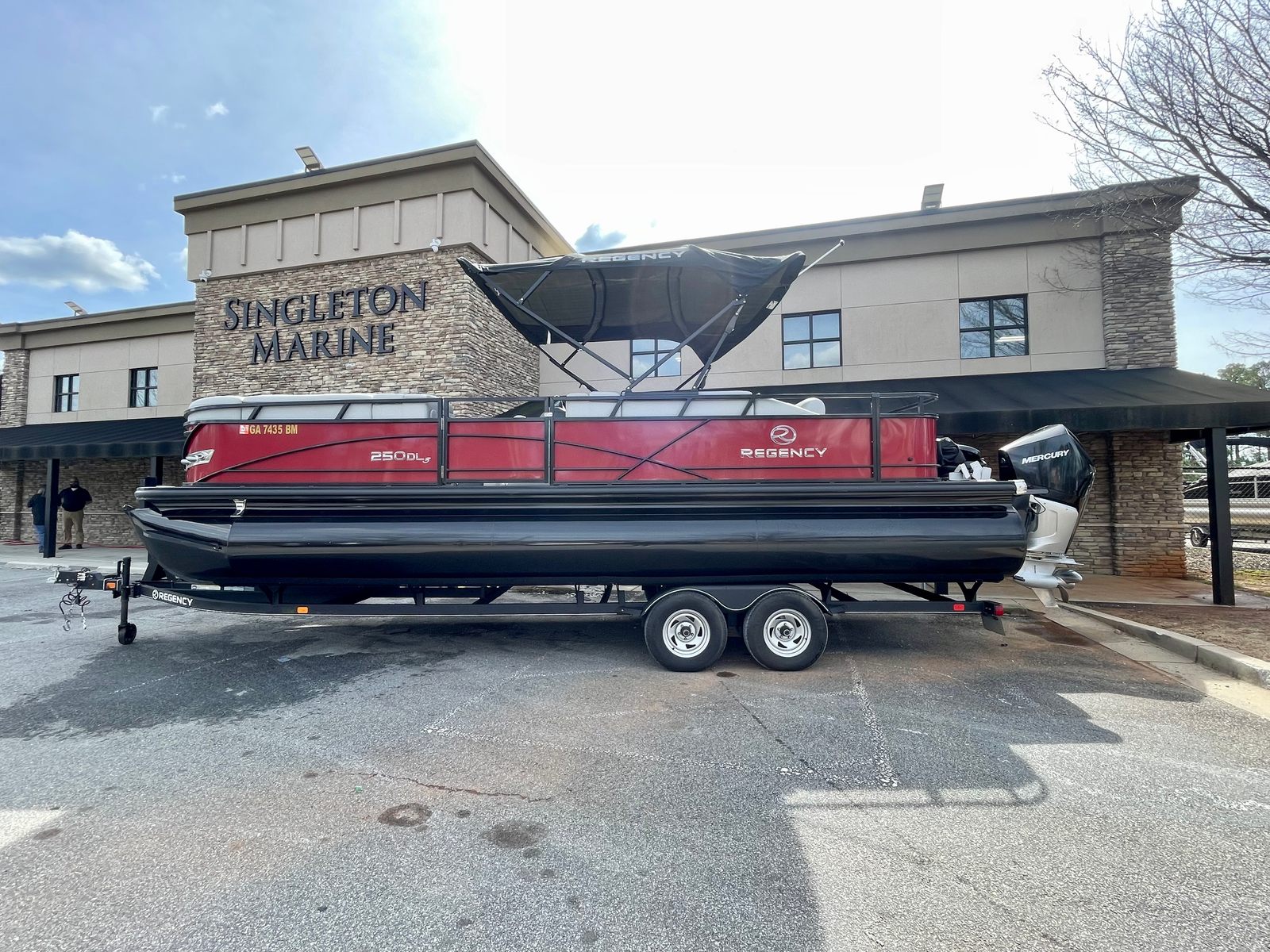 2021 Sun Tracker Regency 250 DL3 with a powerful 300HP Mercury Verado. This 27’4” luxury tri-toon blends high performance with upscale comfort.