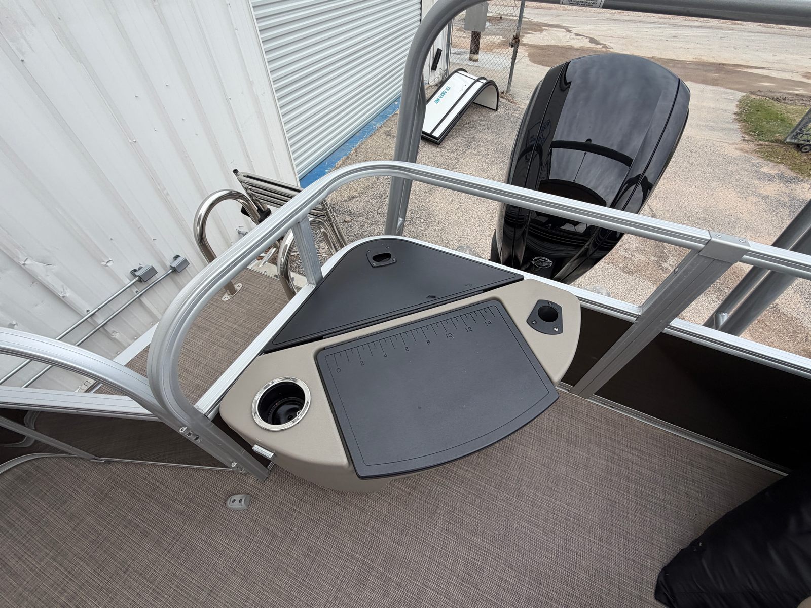 The 2023 Sun Tracker Sport Fish 20 SLX is a 22-foot pontoon boat that offers ample space for friends and family to gather and enjoy the water. As a used boat in excellent condition, with only 25 engine hours, it provides the perfect opportunity to own a nearly new vessel at a great value. The Sun Tracker brand is renowned for its quality craftsmanship and attention to detail, ensuring that every outing is comfortable, safe, and enjoyable. This model’s generous length provides plenty of room for lounging, fishing, and entertaining, making it an ideal choice for a wide range of activities.