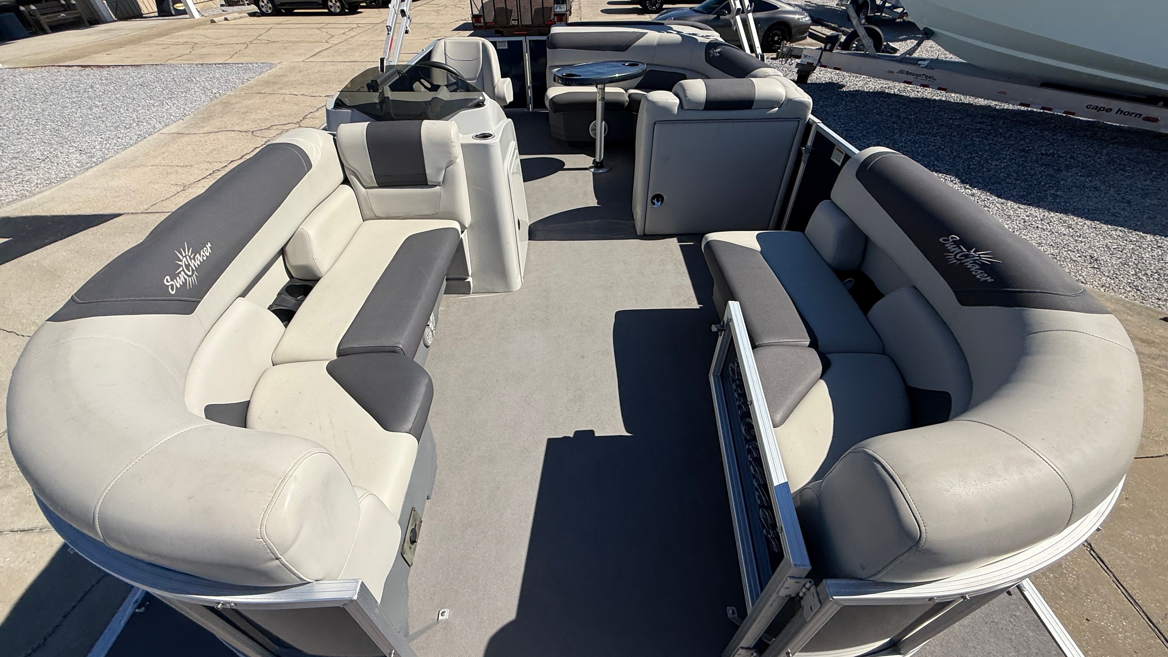 The 2023 Sunchaser 22 Fish is a 22-foot pontoon boat that stands out for its thoughtful design and spacious layout. As a used pontoon, it offers exceptional value without compromising on quality or style. The 22-foot length provides ample room for family, friends, and all your gear, making it an ideal choice for those who want to maximize their time on the water. The Sunchaser brand is renowned for its commitment to durability and comfort, and the 22 Fish model is no exception. Its sleek lines and modern aesthetic ensure you will turn heads at the dock, while its robust construction promises years of reliable enjoyment.