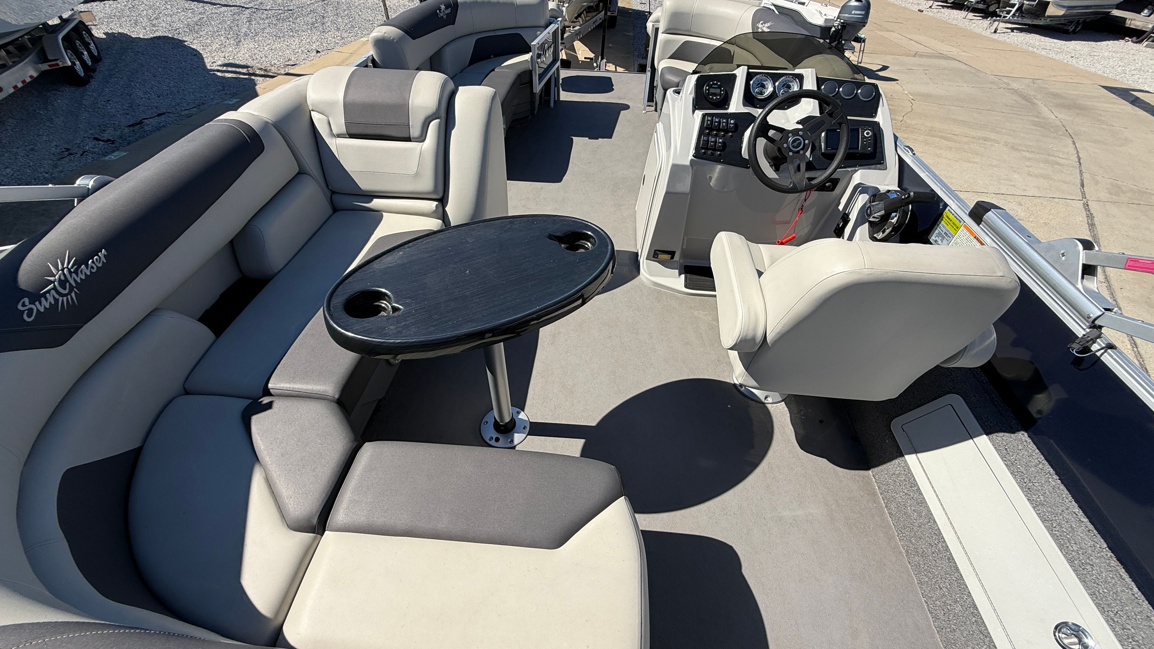 The Sunchaser 22 Fish is designed with the needs of recreational boaters in mind. Its spacious deck layout offers plenty of room for casting lines, lounging in the sun, or gathering around for a picnic on the water. The pontoon’s seating is arranged to maximize comfort and social interaction, with plush, marine-grade upholstery that stands up to the elements. The open floor plan allows for easy movement throughout the boat, making it simple to transition from fishing to relaxing without missing a beat.Special features on this model enhance both convenience and enjoyment. The 22-foot length provides a stable platform for a variety of activities, from fishing to swimming to sunbathing. The pontoon’s sturdy construction ensures a smooth, steady ride even when the water gets a bit choppy. With ample storage compartments, you can keep your gear organized and out of the way, so the deck remains clutter-free and inviting.