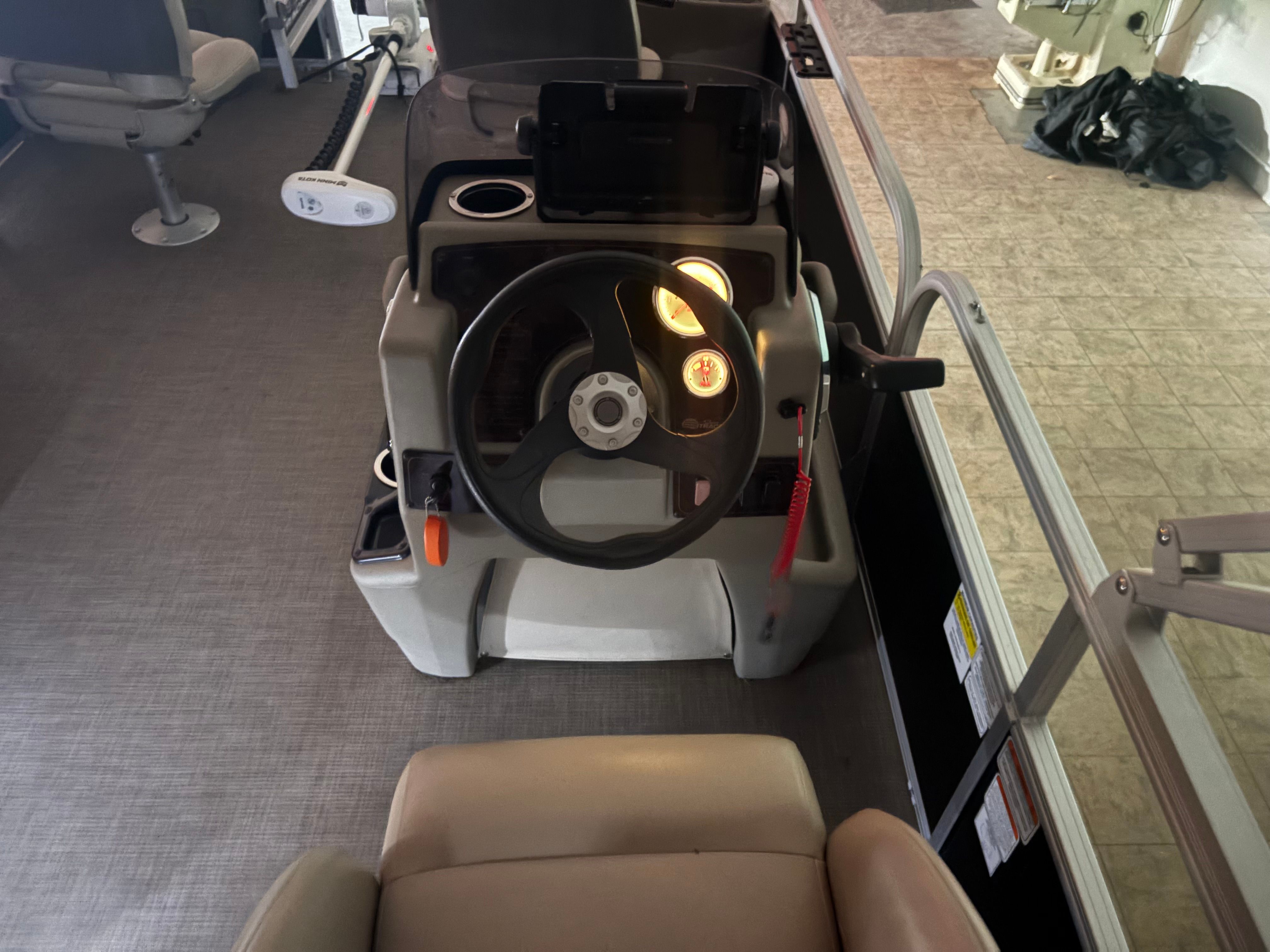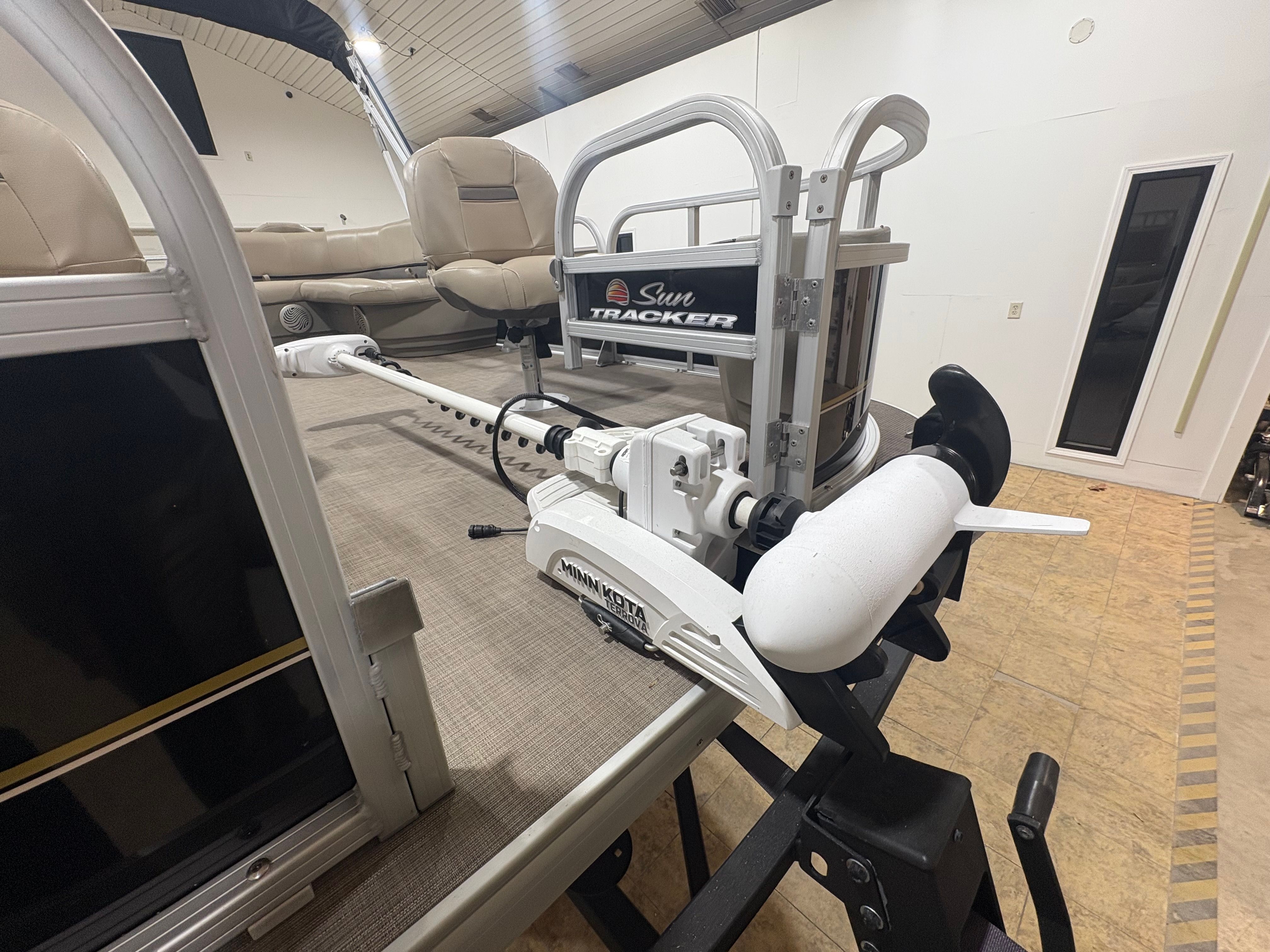 This 2021 Suntracker Bass Buggy 18 DLX pontoon boat comes equipped with a host of special features designed to maximize comfort, convenience, and fishing success. The collapsible Bimini top provides welcome shade on sunny days, allowing you to relax in comfort no matter the weather. Dual bow fishing seats and a rear fishing seat create dedicated spaces for anglers to cast, reel, and enjoy their favorite pastime. The dual rod holder keeps your gear organized and within easy reach, while the live well ensures your catch stays fresh throughout the day.For those who appreciate advanced technology, the Garmin ECHOMAP UHD 93sv offers superior navigation and fish-finding capabilities, helping you locate the best fishing spots with ease. The Minn Kota Riptide I-Pilot trolling motor, with 80 pounds of thrust, provides precise control and quiet operation, making it easier than ever to position your boat exactly where you want it. Courtesy lights enhance visibility during early morning or evening outings, while the Jensen PRV18 Bluetooth stereo lets you set the perfect soundtrack for your day on the water. The transom folding swim ladder adds convenience for swimmers and makes reboarding a breeze after a refreshing dip.