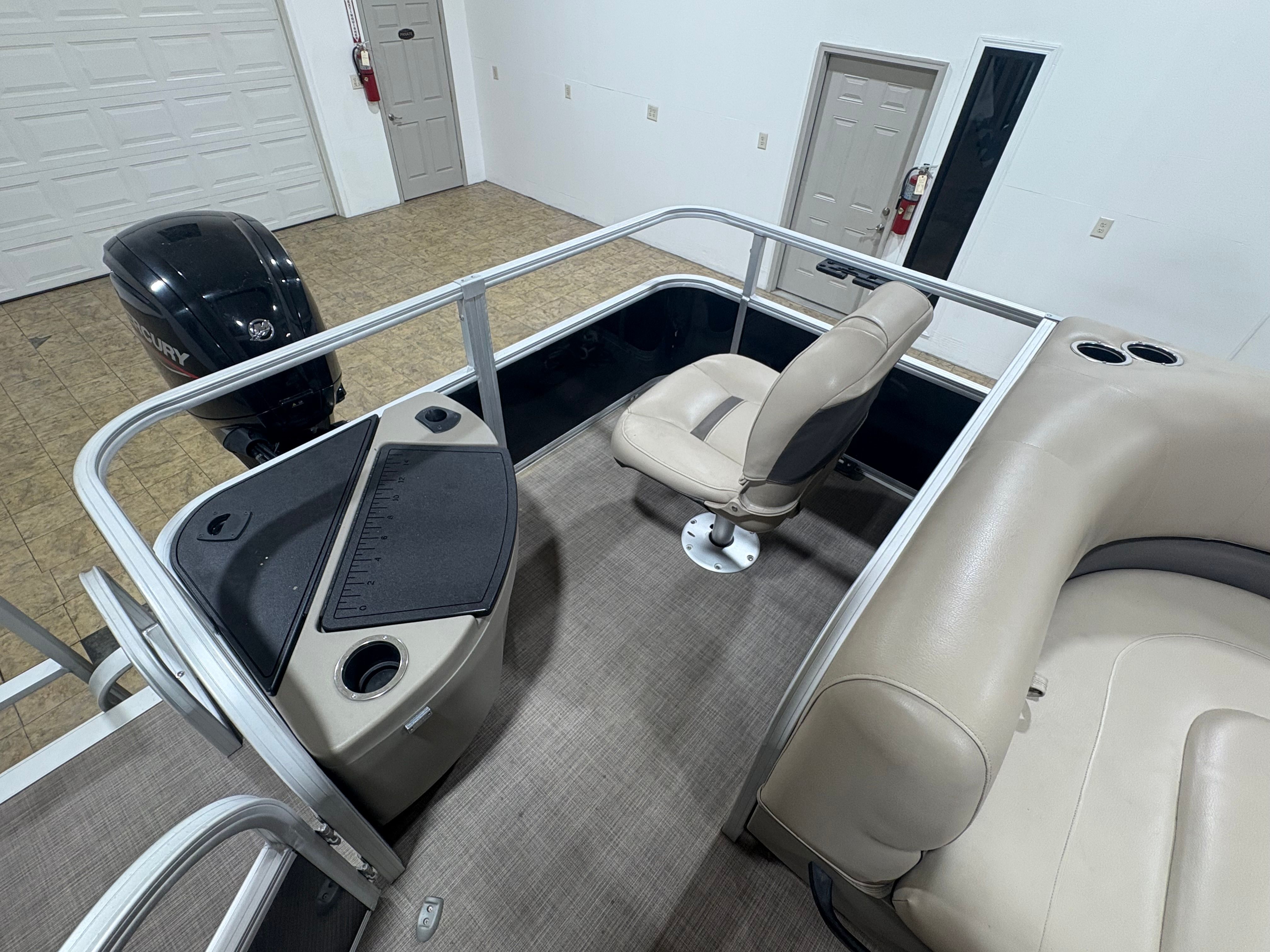 The 2021 Suntracker Bass Buggy 18 DLX is designed with practicality in mind. Its manageable 18-foot length makes it easy to tow, launch, and store, even for those new to boating. Docking is a stress-free experience thanks to its responsive handling and compact size. The efficient 75 HP engine helps keep fuel costs in check, allowing you to spend more time on the water and less time at the pump.Ample storage space ensures that all your gear, snacks, and personal items are kept organized and out of the way, so you can focus on enjoying your day. The collapsible Bimini top and courtesy lights extend your boating season, providing comfort and safety from sunrise to sunset. Whether you are planning a quick fishing trip or a full day of fun, this pontoon is equipped to handle it all.