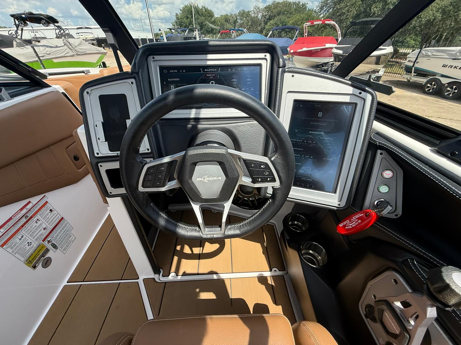 The Supra SE 550 is packed with features that elevate your boating experience. Its spacious 24.42-foot layout offers ample room for friends and family, ensuring everyone can join in the fun. The boat’s innovative design maximizes comfort and utility, with plush seating and a thoughtfully arranged cockpit that keeps everyone connected and engaged. The advanced wake and surf systems allow you to customize the size and shape of your waves, catering to riders of all skill levels. With only 148 engine hours, this used Supra boat for sale is in excellent condition, promising reliability and longevity.