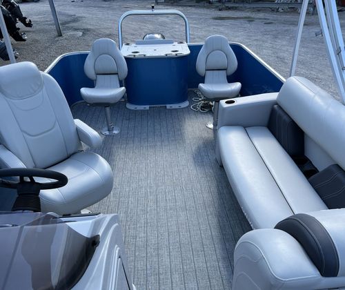 The 2022 Sylvan 822 Party Fish is a standout in the world of recreational boating. Measuring just over 22 feet in length, this pontoon offers ample space for entertaining, fishing, and cruising. As a used Sylvan boat for sale, it has been gently enjoyed with only 36 engine hours, ensuring you get a nearly new experience at a fraction of the cost. The Party Fish model is renowned for its clever design, combining the best elements of a party platform with the functionality needed for serious fishing adventures.