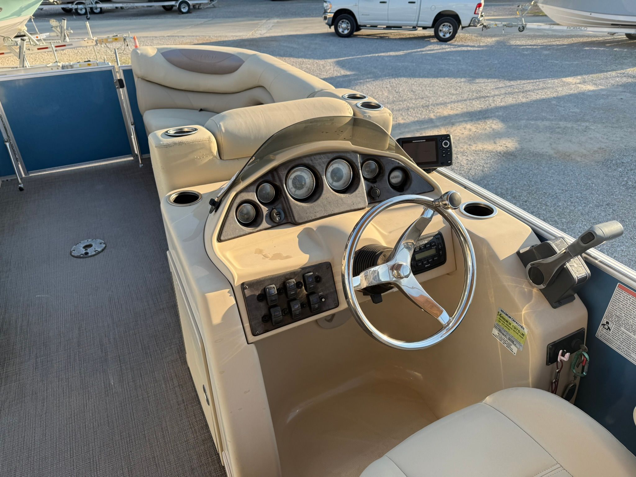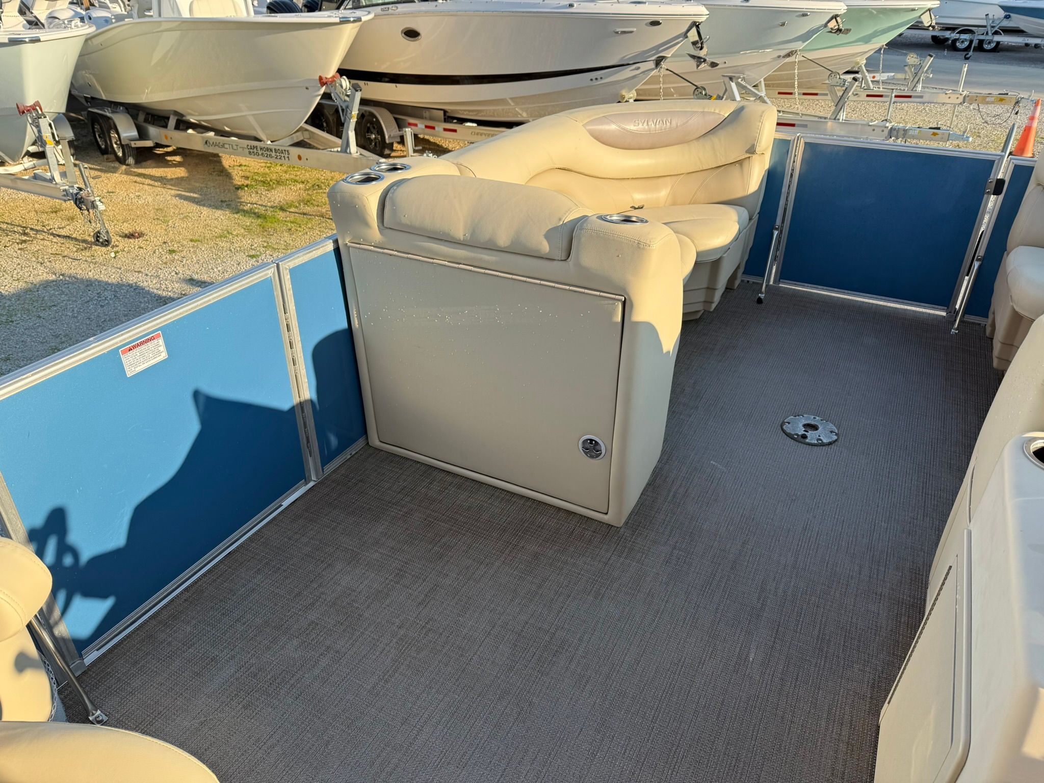 In addition to its recreational benefits, the 2017 Sylvan 8524 Pontoon is designed with practicality in mind. The spacious layout offers plenty of room for storing gear, coolers, and water toys, ensuring that you have everything you need for a day on the water. The pontoon’s design makes docking and maneuvering a breeze, even for those new to boating. Its efficient engine helps you make the most of your time on the water, allowing you to cover more ground without worrying about excessive fuel consumption.The durable construction and quality materials mean that this used Sylvan boat for sale is built to last, providing years of reliable service and enjoyment. The easy-to-clean surfaces and low-maintenance design make ownership hassle-free, so you can spend more time enjoying your boat and less time on upkeep.