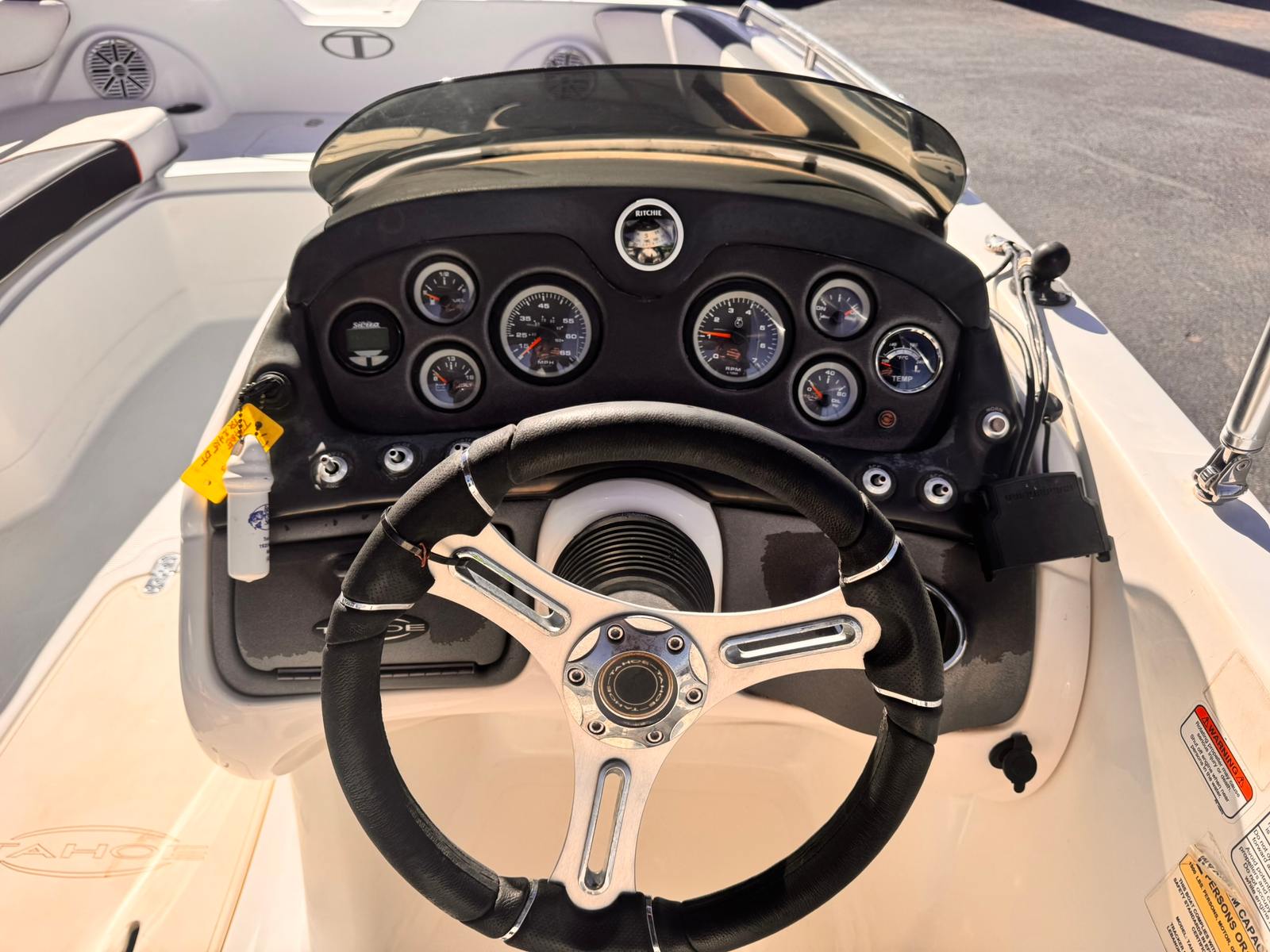 The Tahoe 215 XI Bowrider is thoughtfully equipped to enhance your time on the water. Its spacious 21.5-foot length provides generous seating and room for socializing, sunbathing, or simply relaxing. The open bow design invites guests to stretch out and enjoy panoramic views, while the smart layout ensures easy movement throughout the boat. The helm is ergonomically designed for intuitive control, allowing the captain to navigate with ease and confidence. Ample storage compartments are strategically placed to keep gear organized and out of the way, ensuring a clutter-free environment.This Bowrider boat for sale is built with quality materials and craftsmanship, reflecting Tahoe’s commitment to durability and style. The hull design offers stability and smooth rides, even in choppy waters, while the overall construction ensures longevity and low maintenance. The Tahoe 215 XI is a testament to the brand’s reputation for producing boats that are as reliable as they are enjoyable.